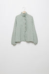 Tejido mezcla de algodón. Diseño estampado. Diseño recto. Cuello redondo. Manga larga. Puño elástico. Cierre de botones. Detalle volante. Talla modelo: S. Altura modelo 1,75 m.
