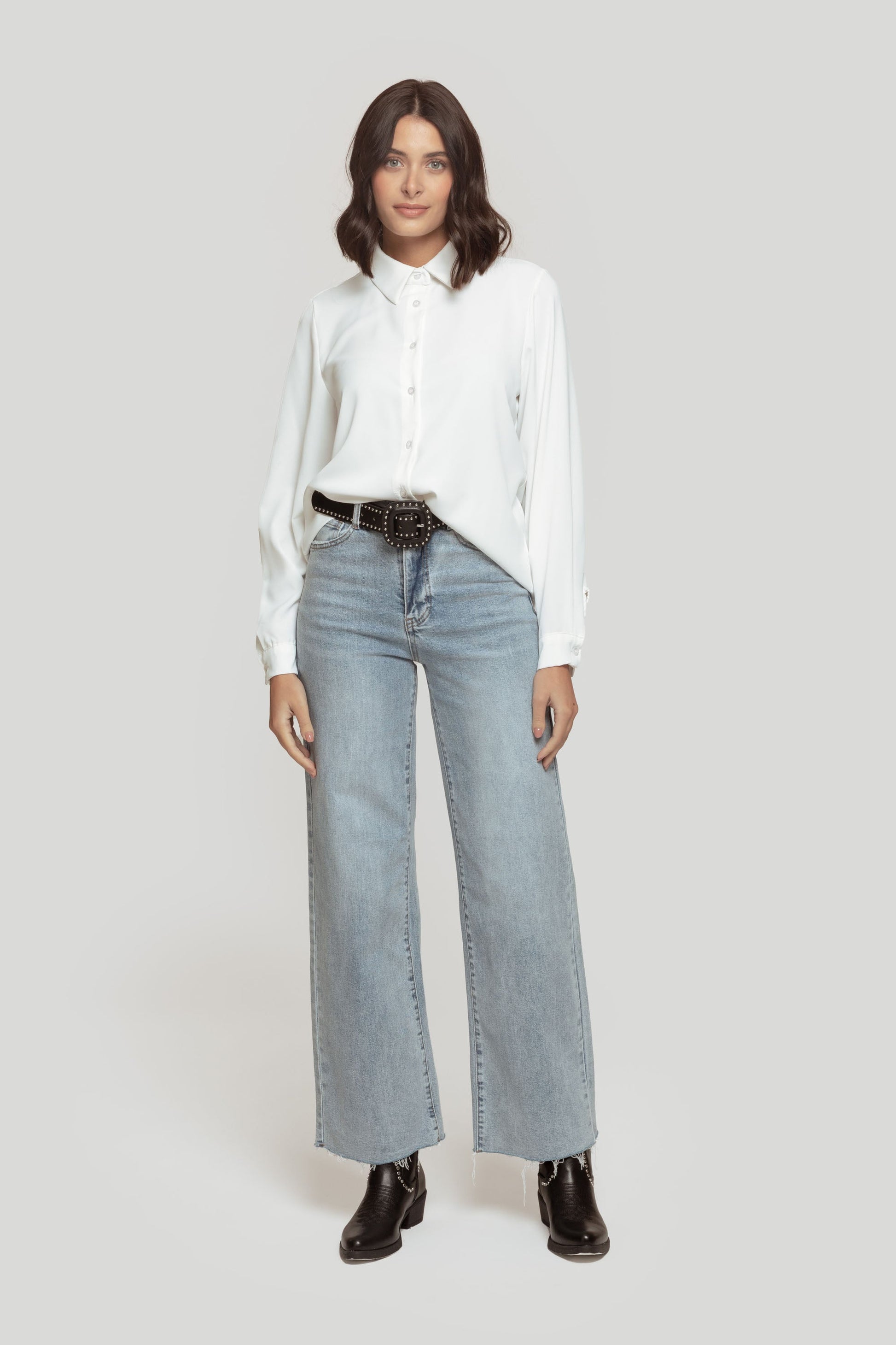 Tejido gasa. Diseño recto. Cuello solapa. Manga larga. Puños abotonados. Cierre de botones. Talla modelo: S. Altura modelo: 1.66 m.