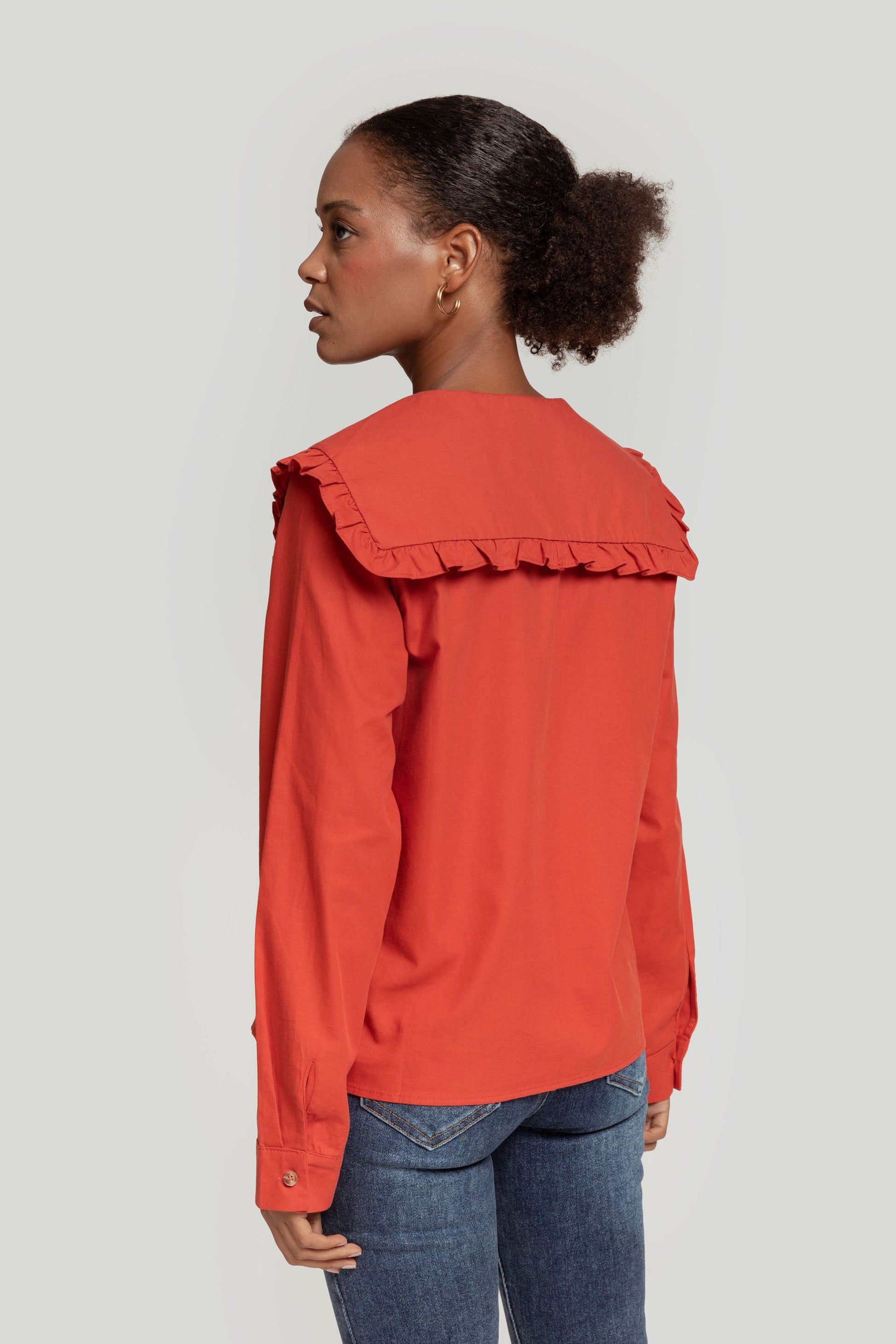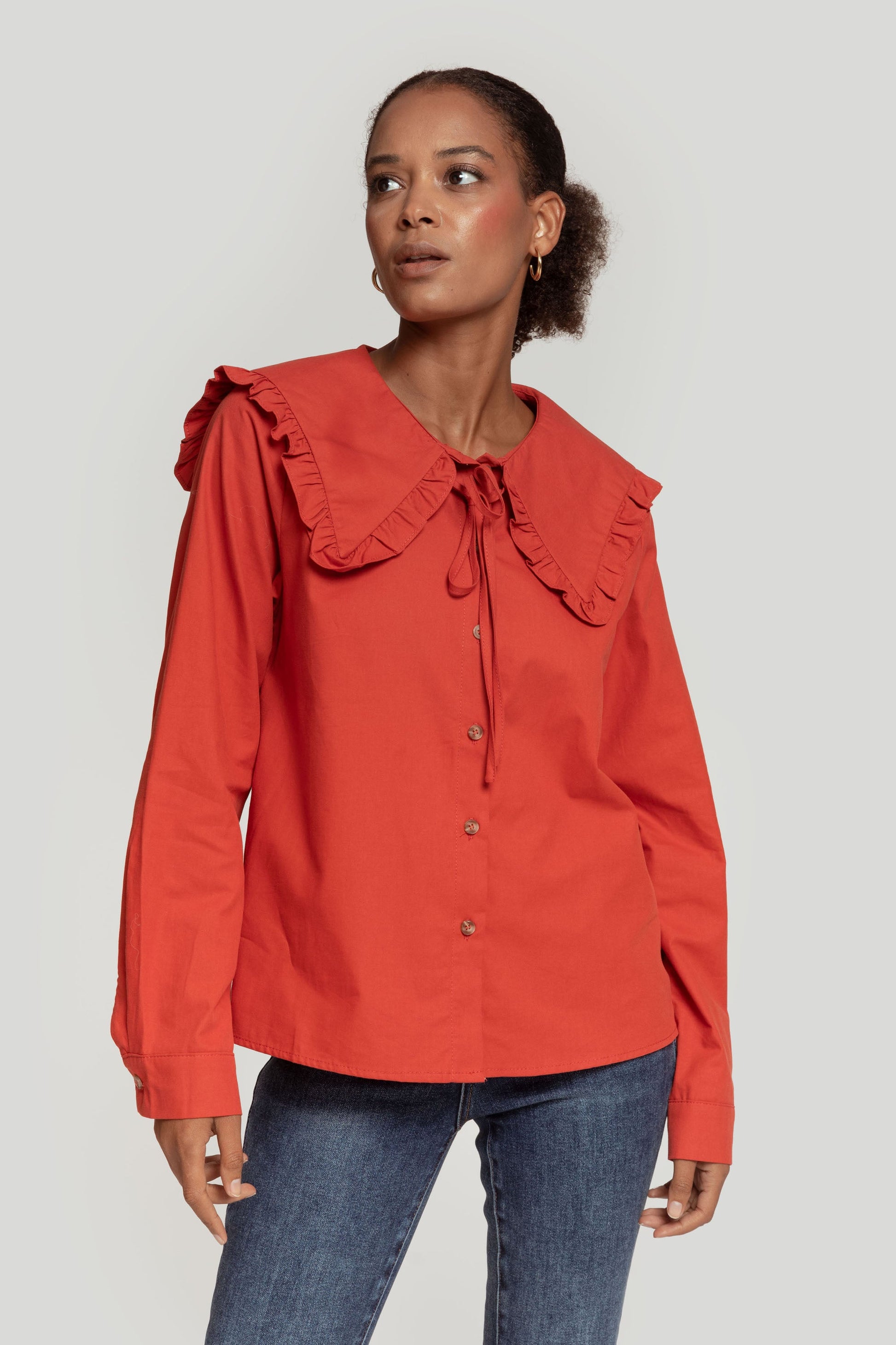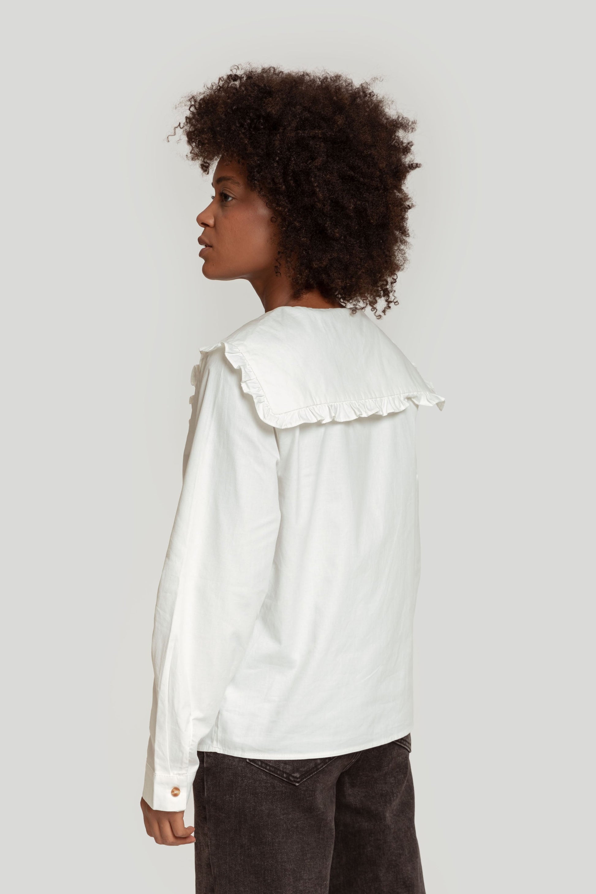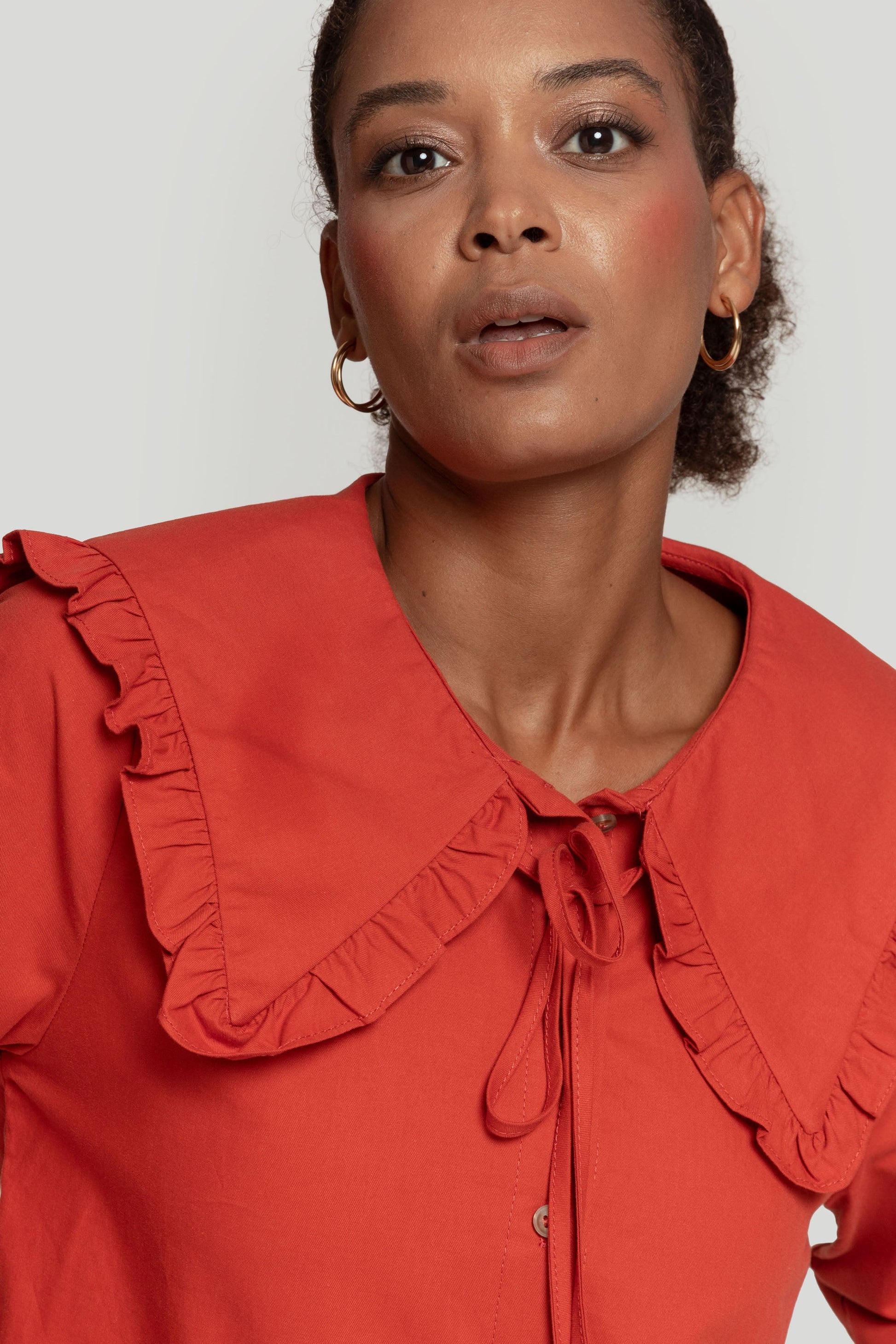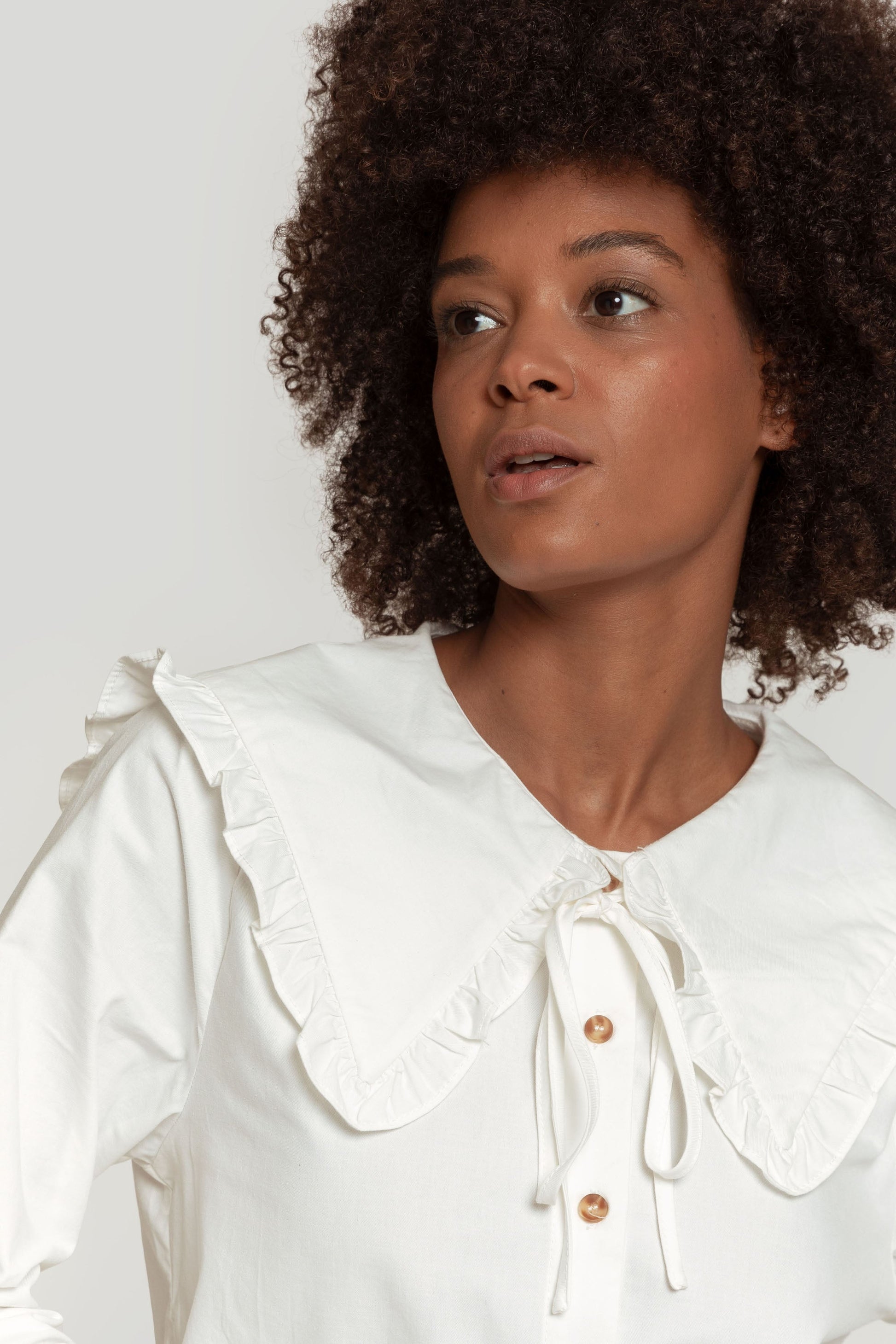 Tejido de algodón. Diseño oversize. Diseño recto. Cuello bobo. Manga larga. Puños abotonados. Cierre de botones. Talla modelo: S. Altura modelo: 1.66 m.