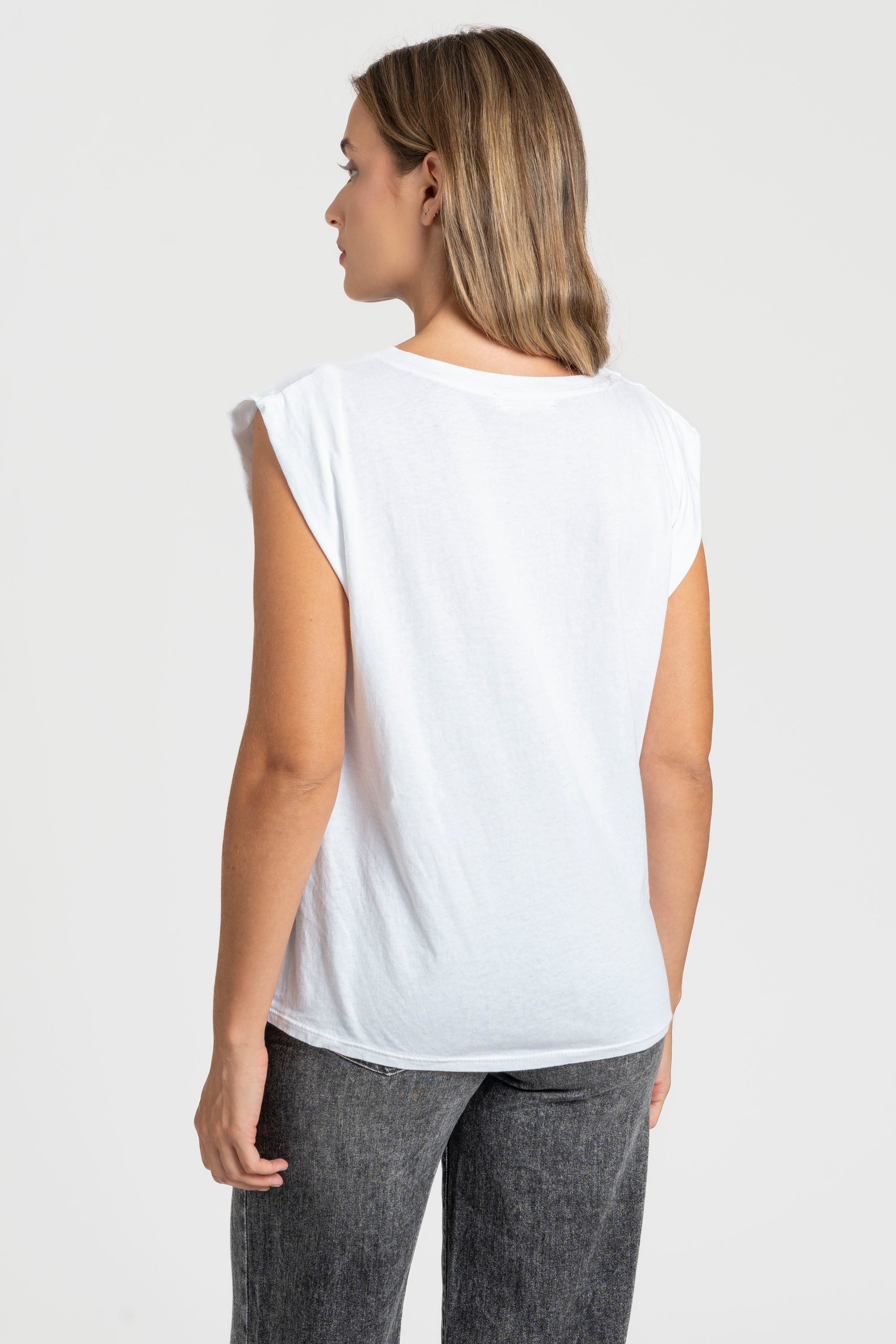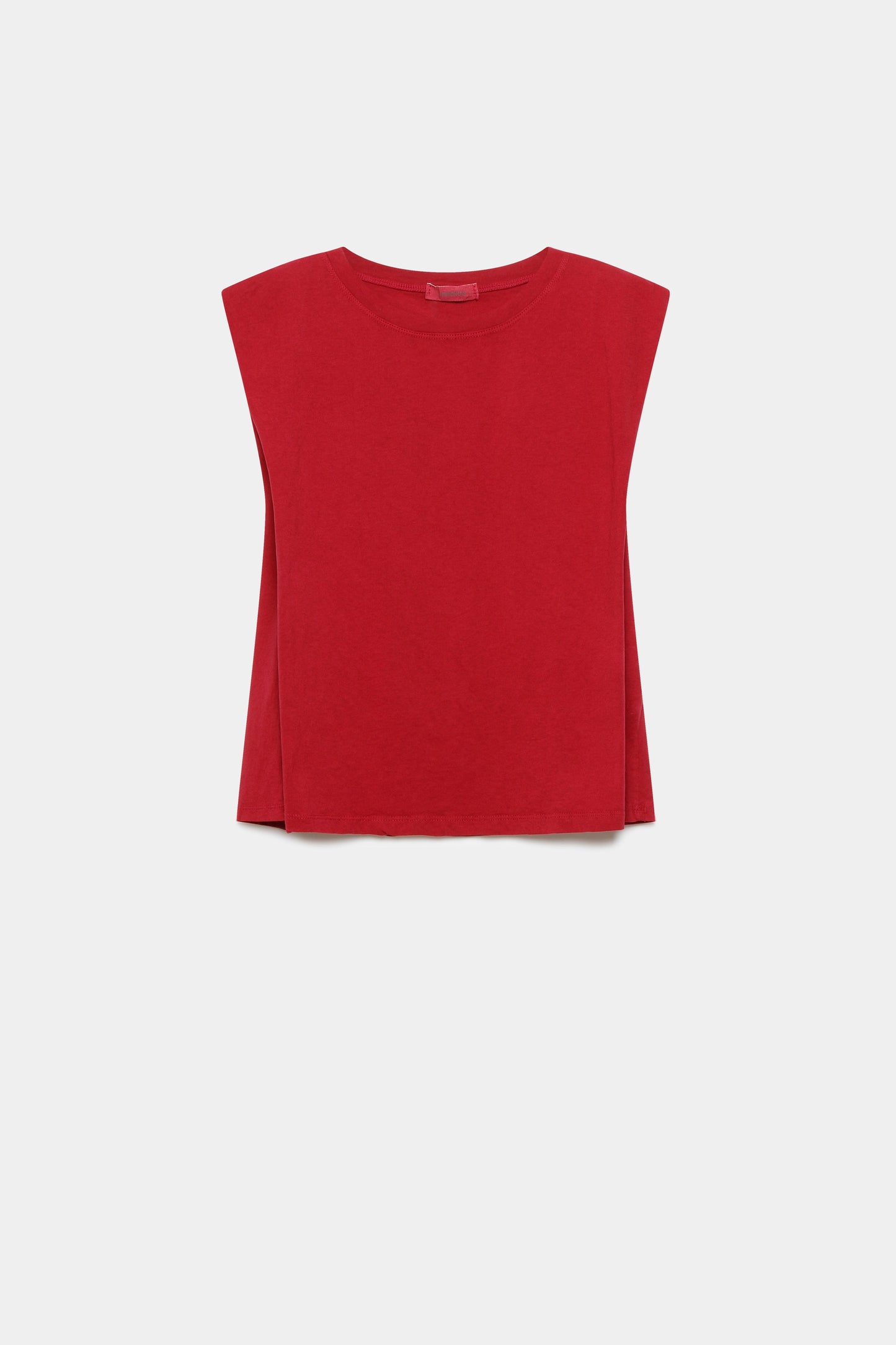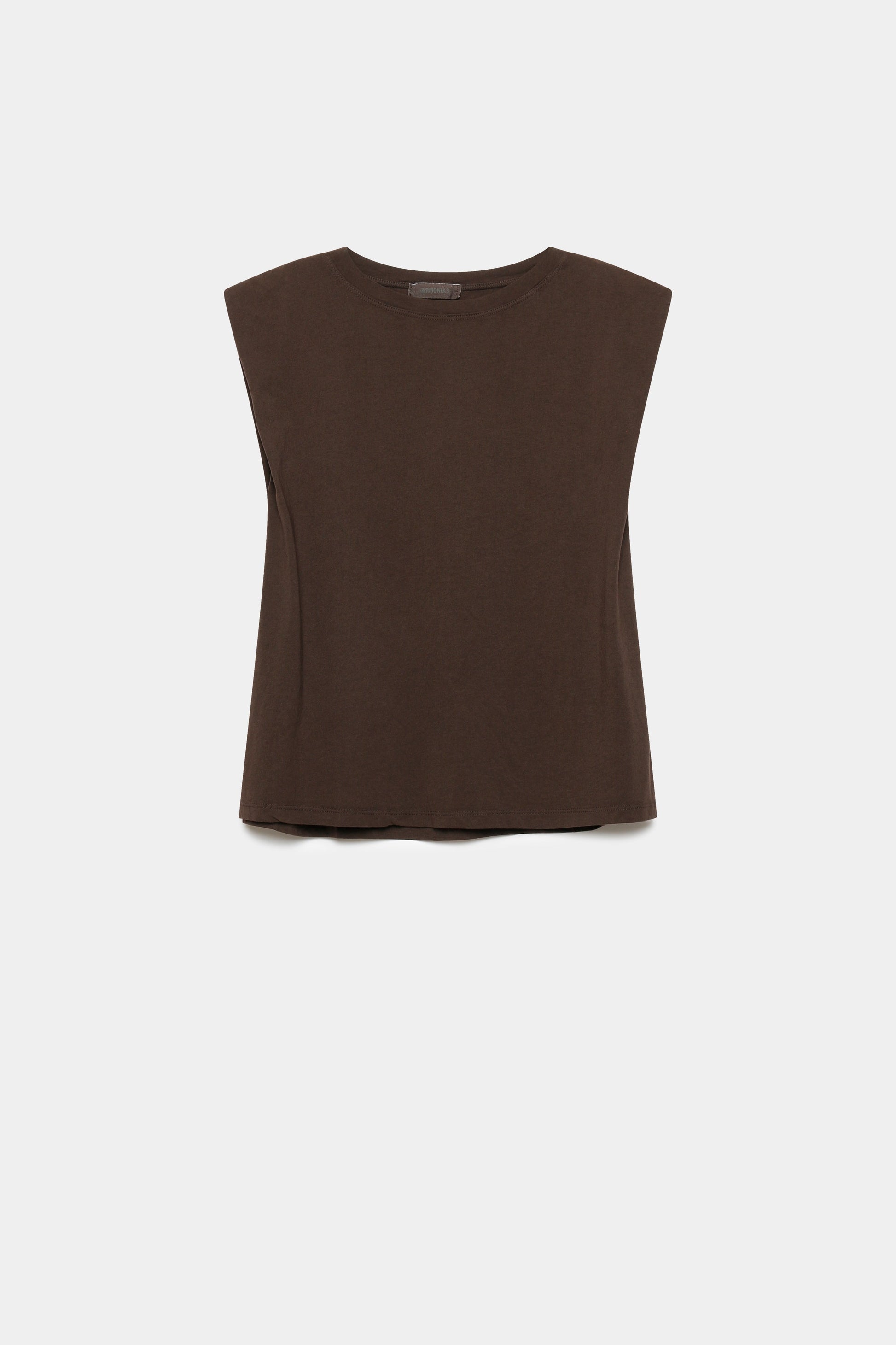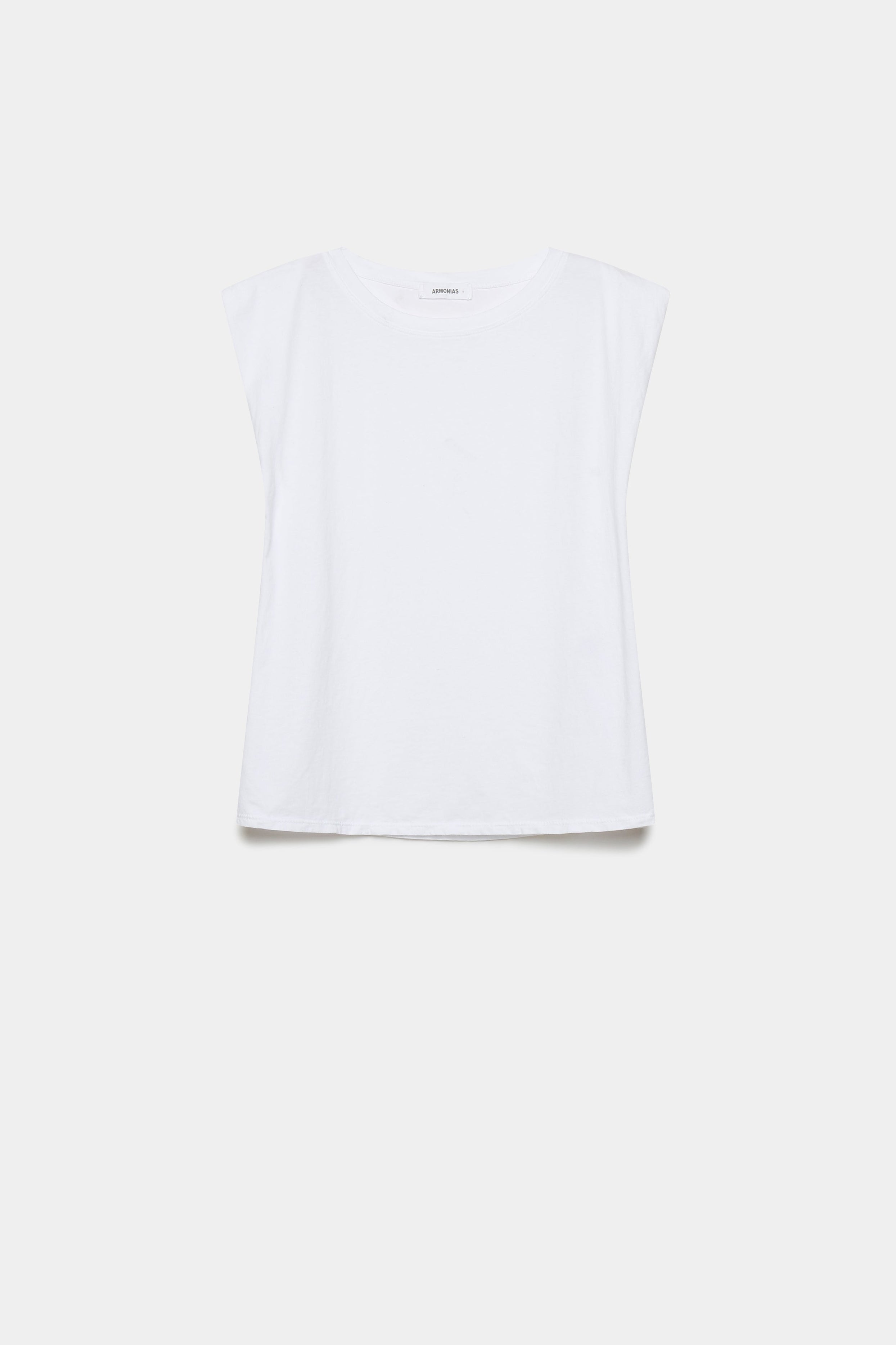 Tejido de algodón. Cuellor redondo. Manga sisa.