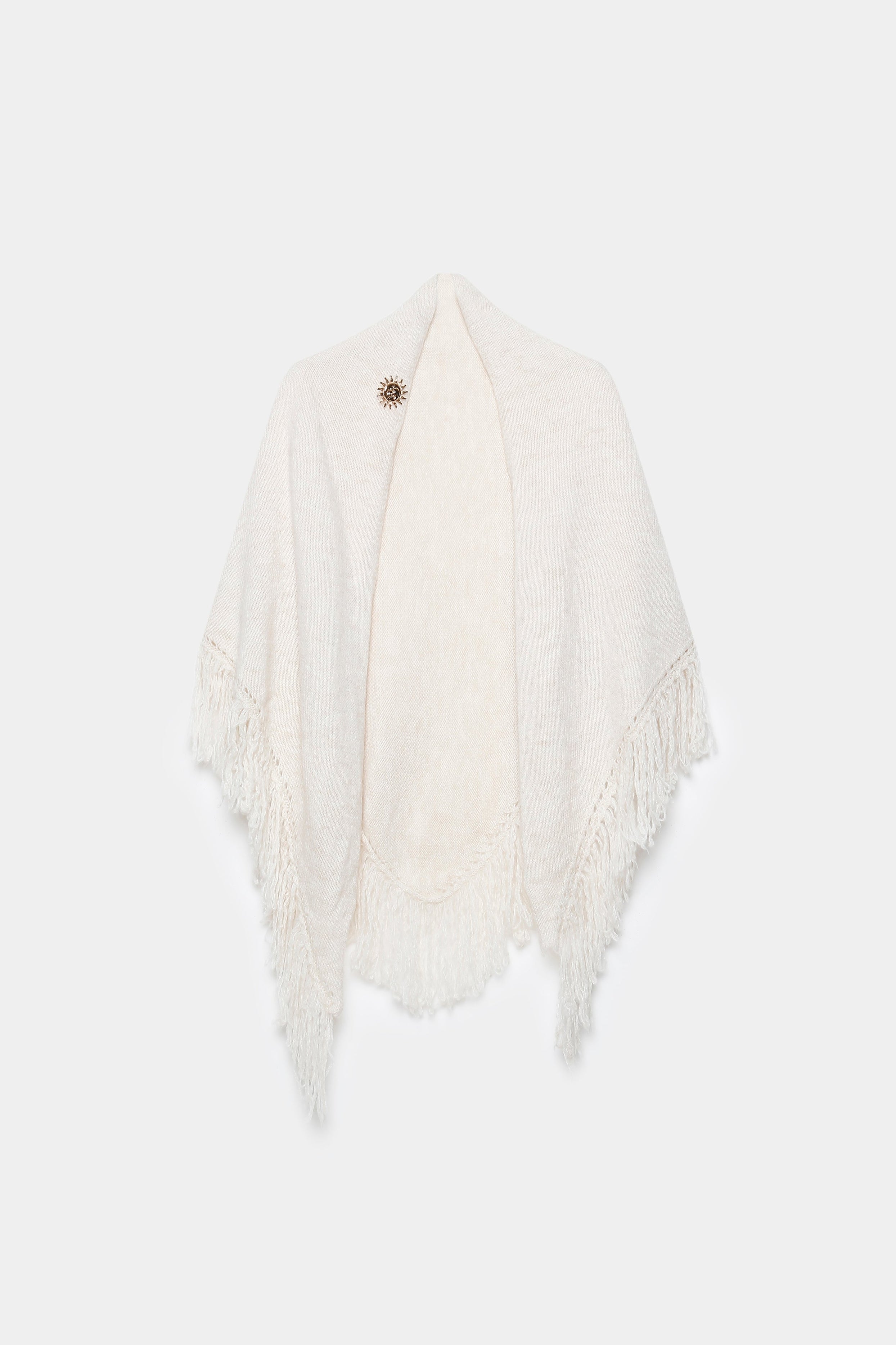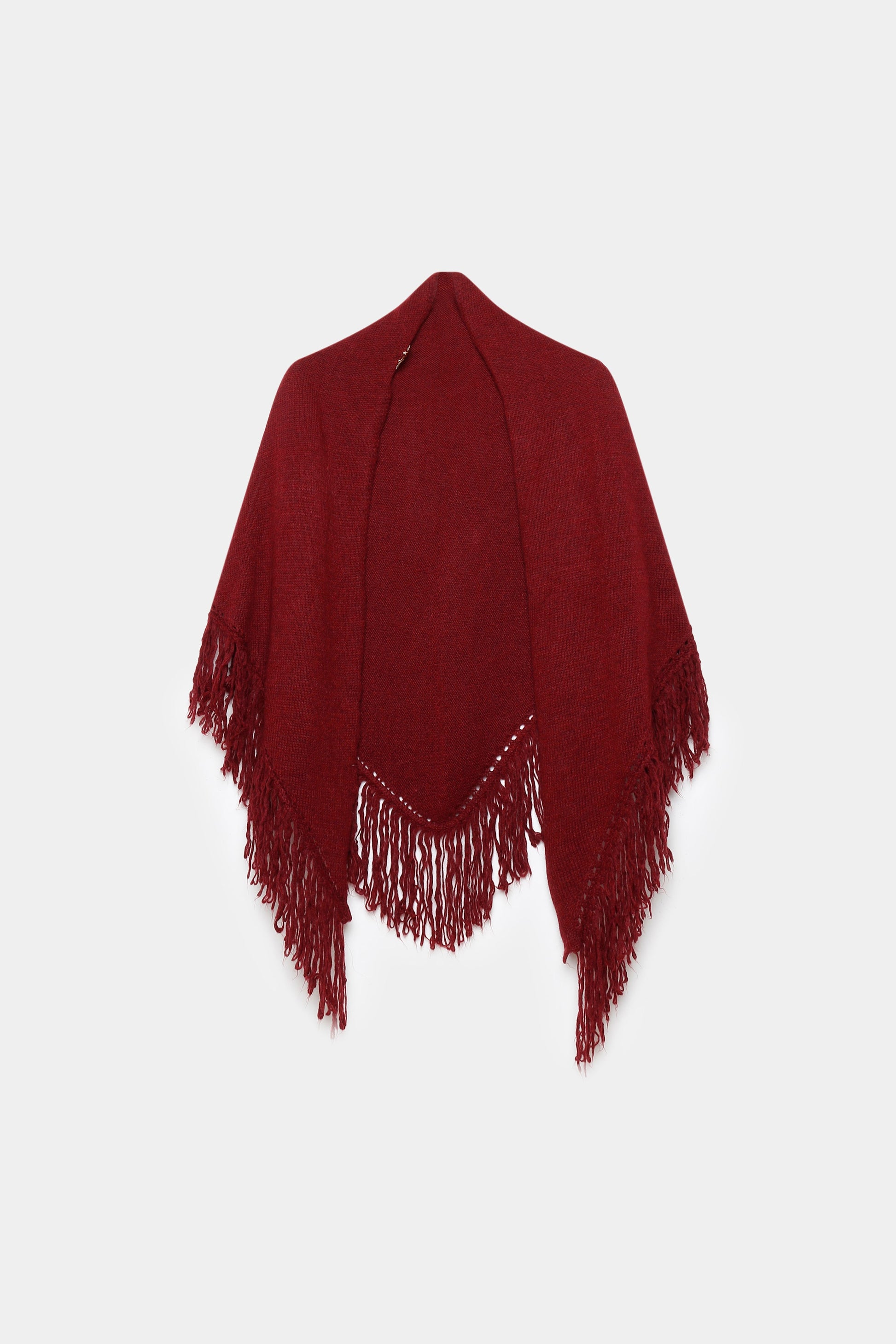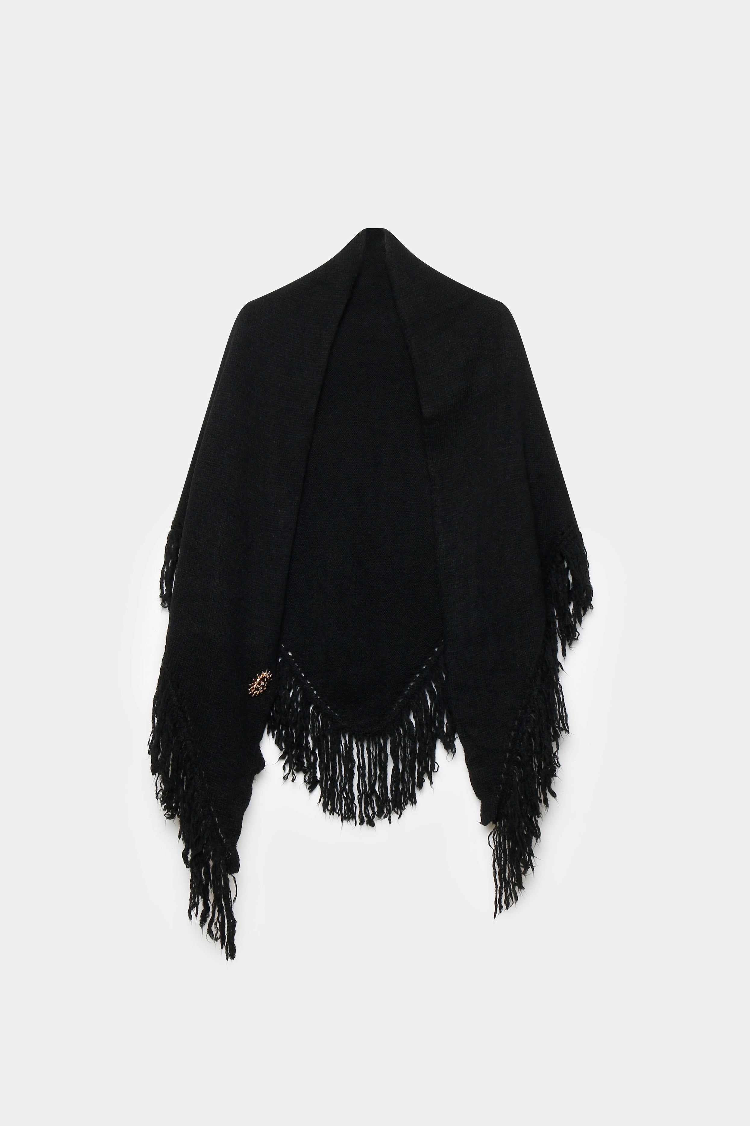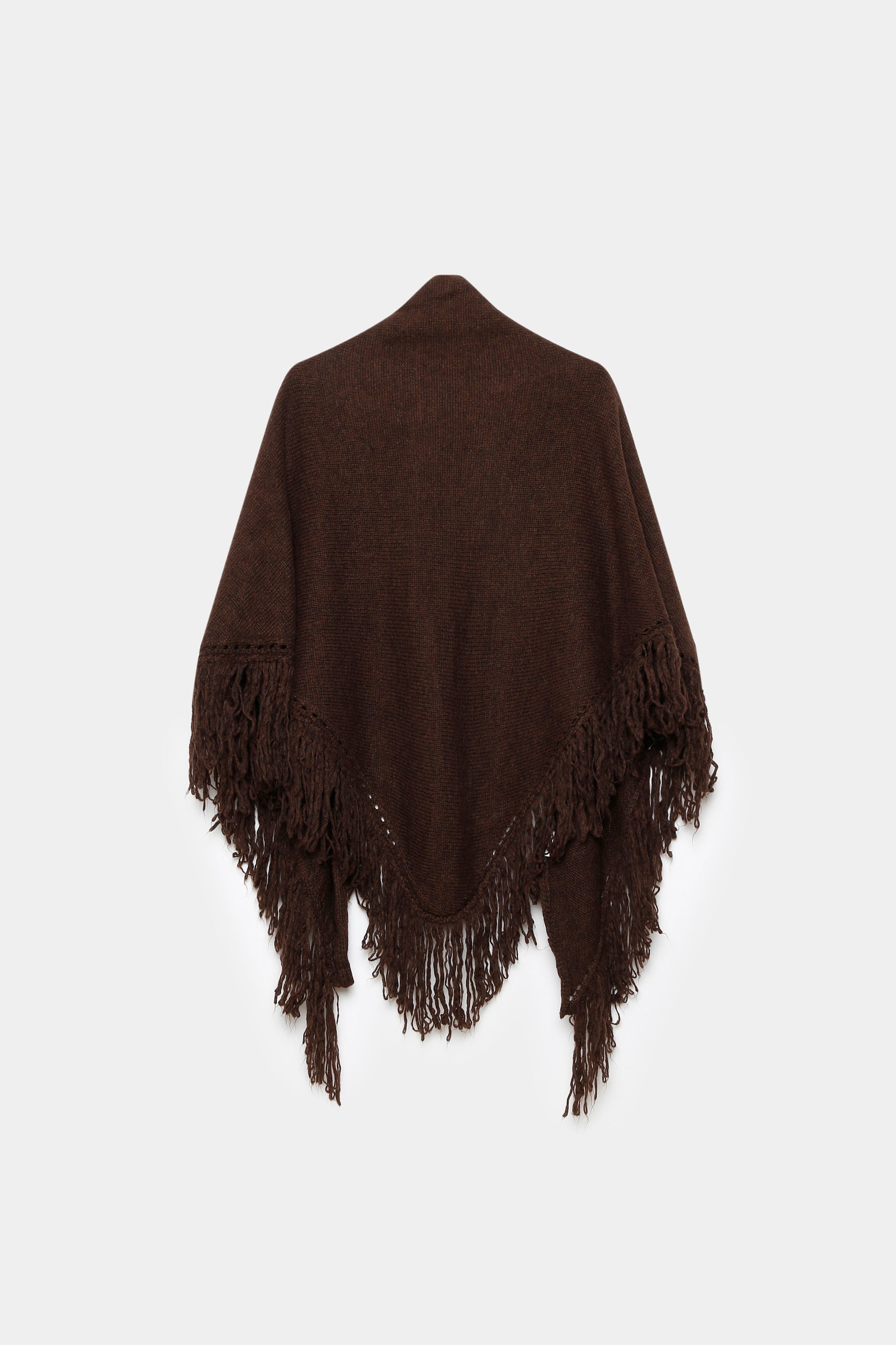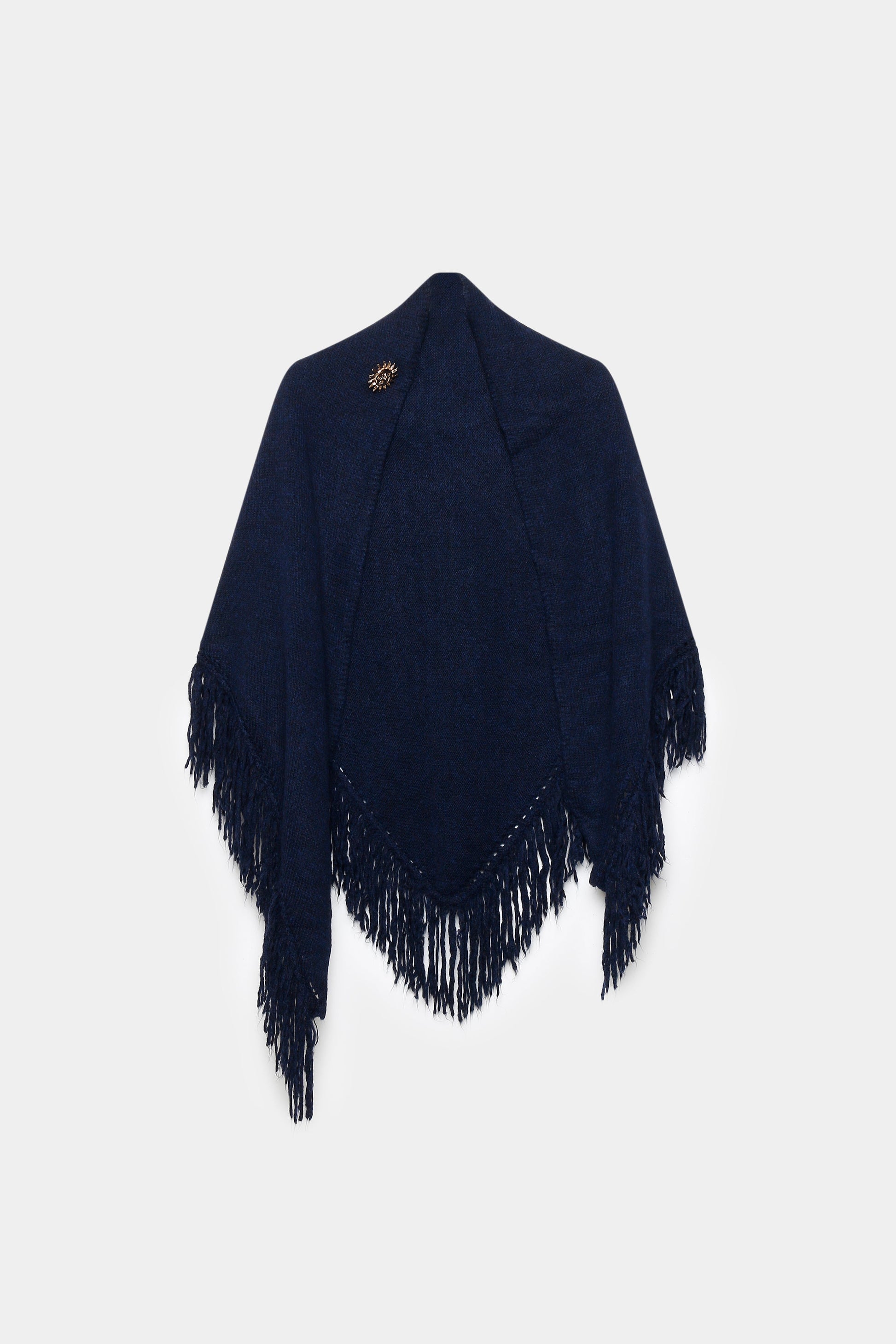 Tejido punto. Detalle flecos. Diseño capa. Disponible en varios colores.