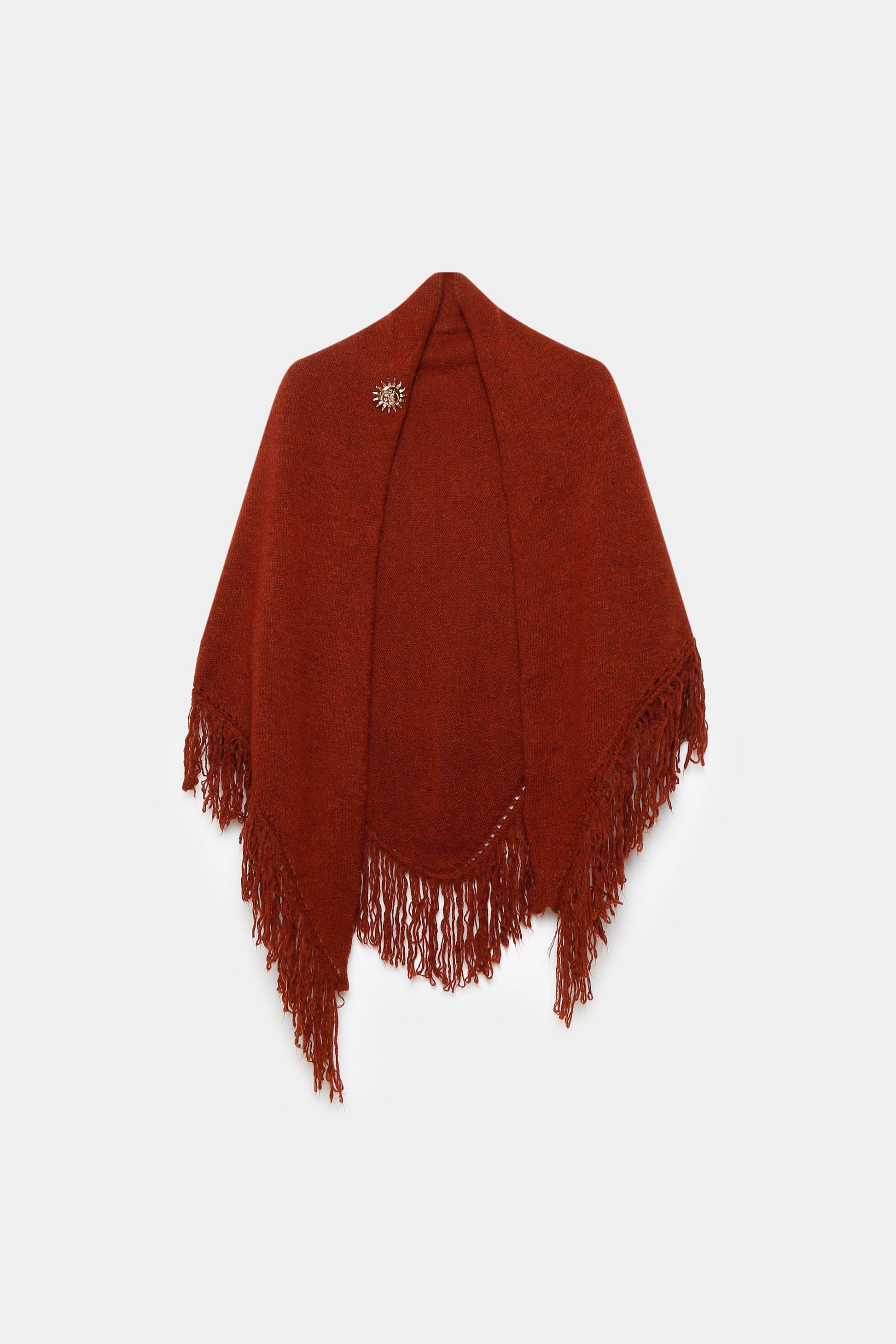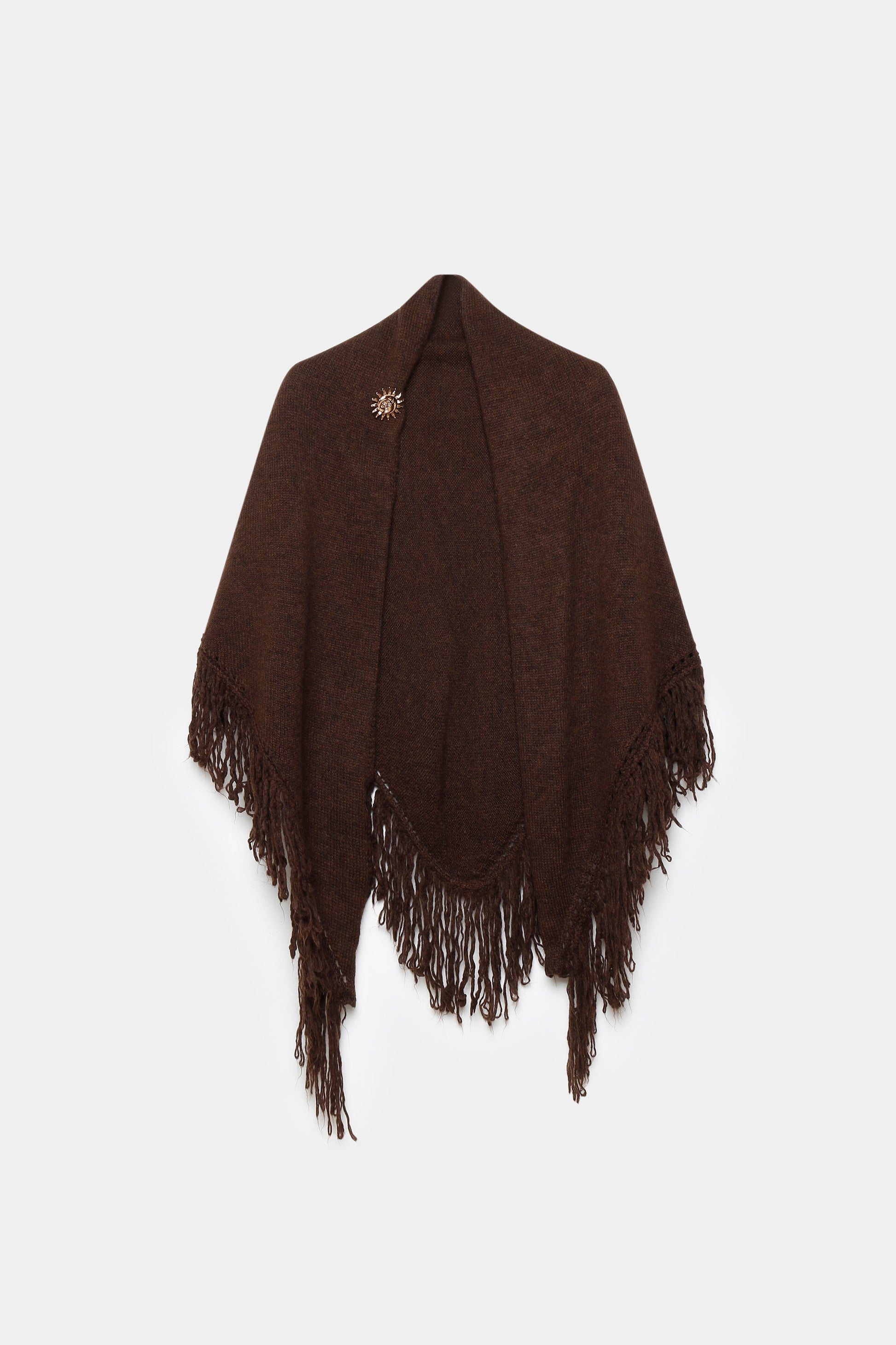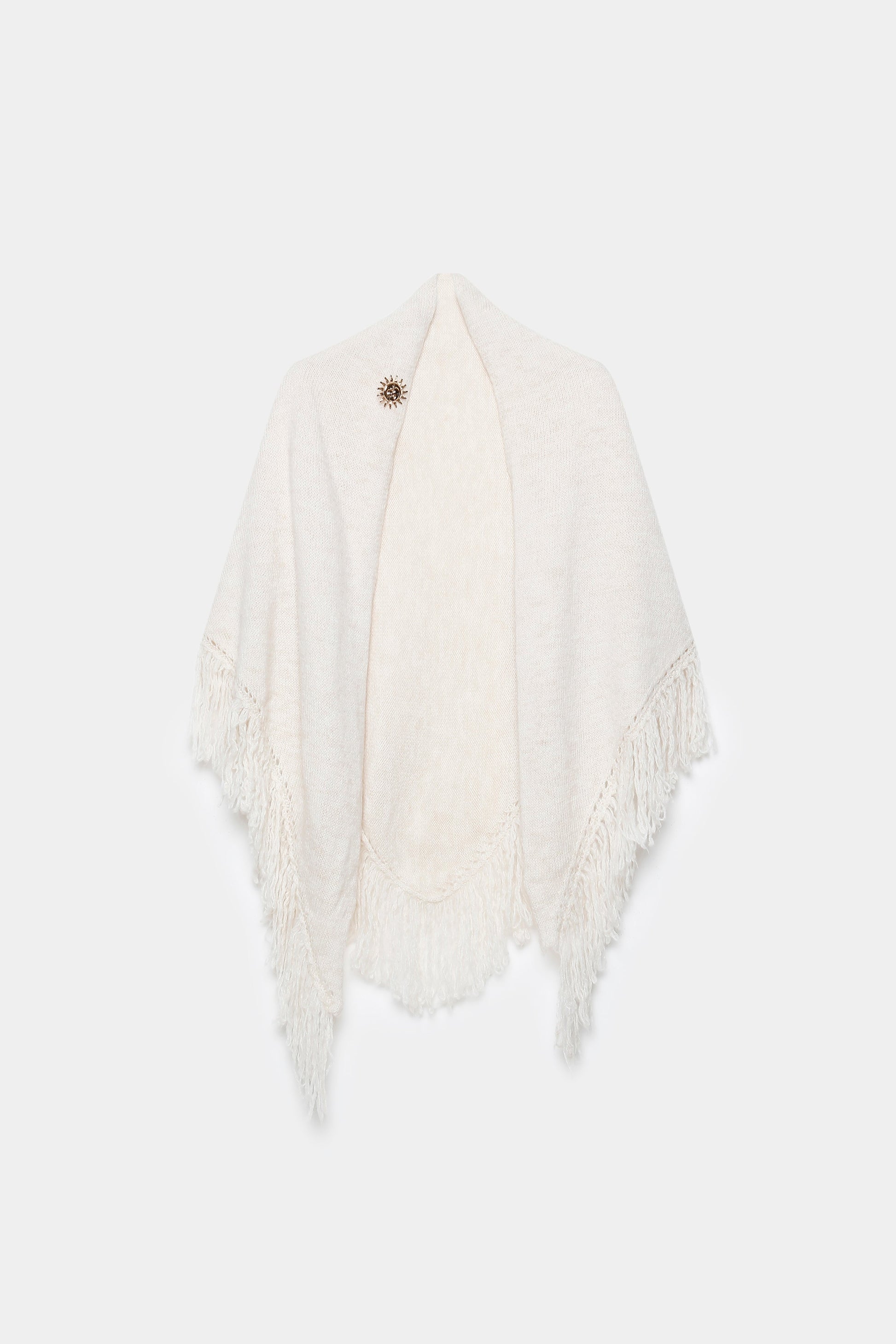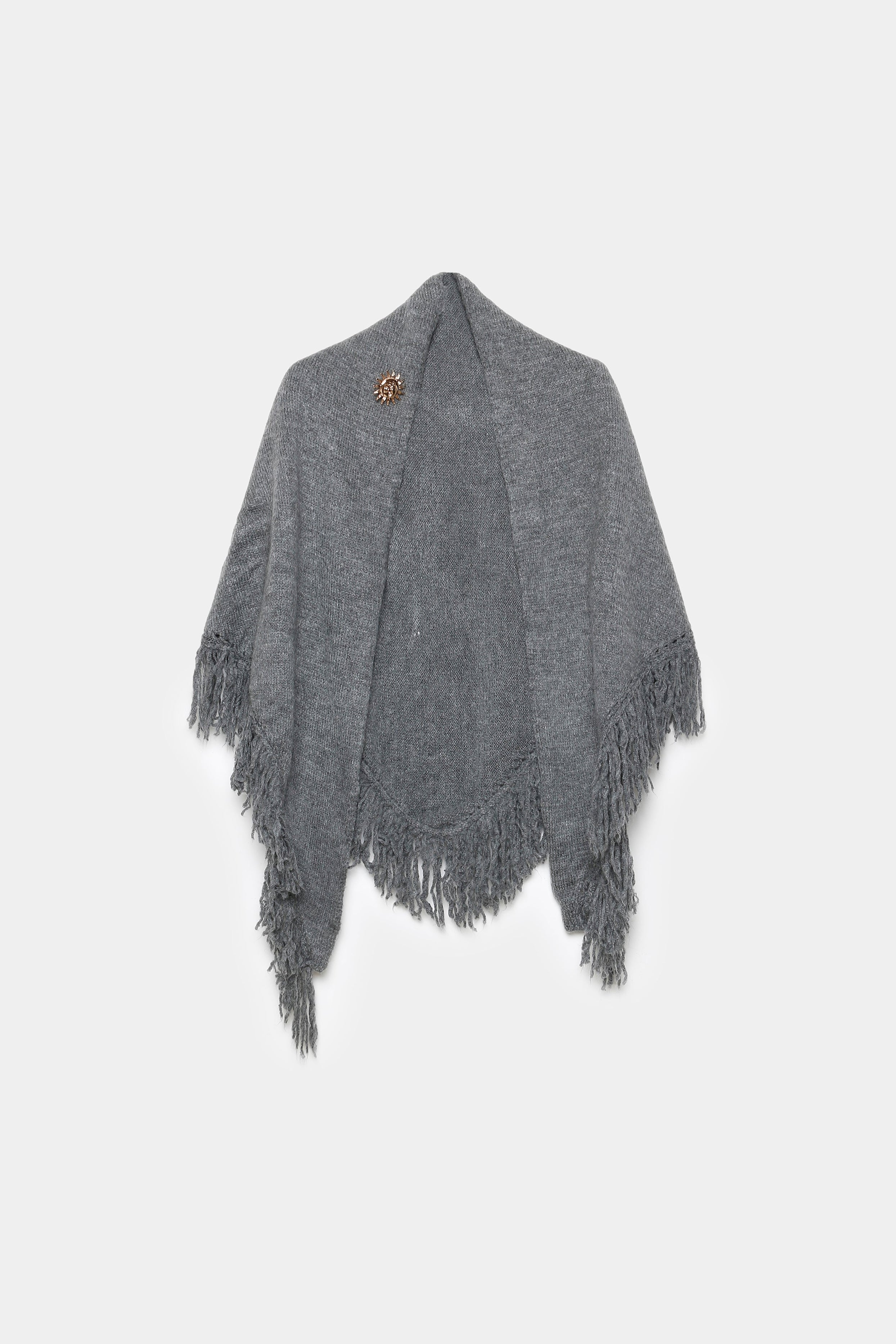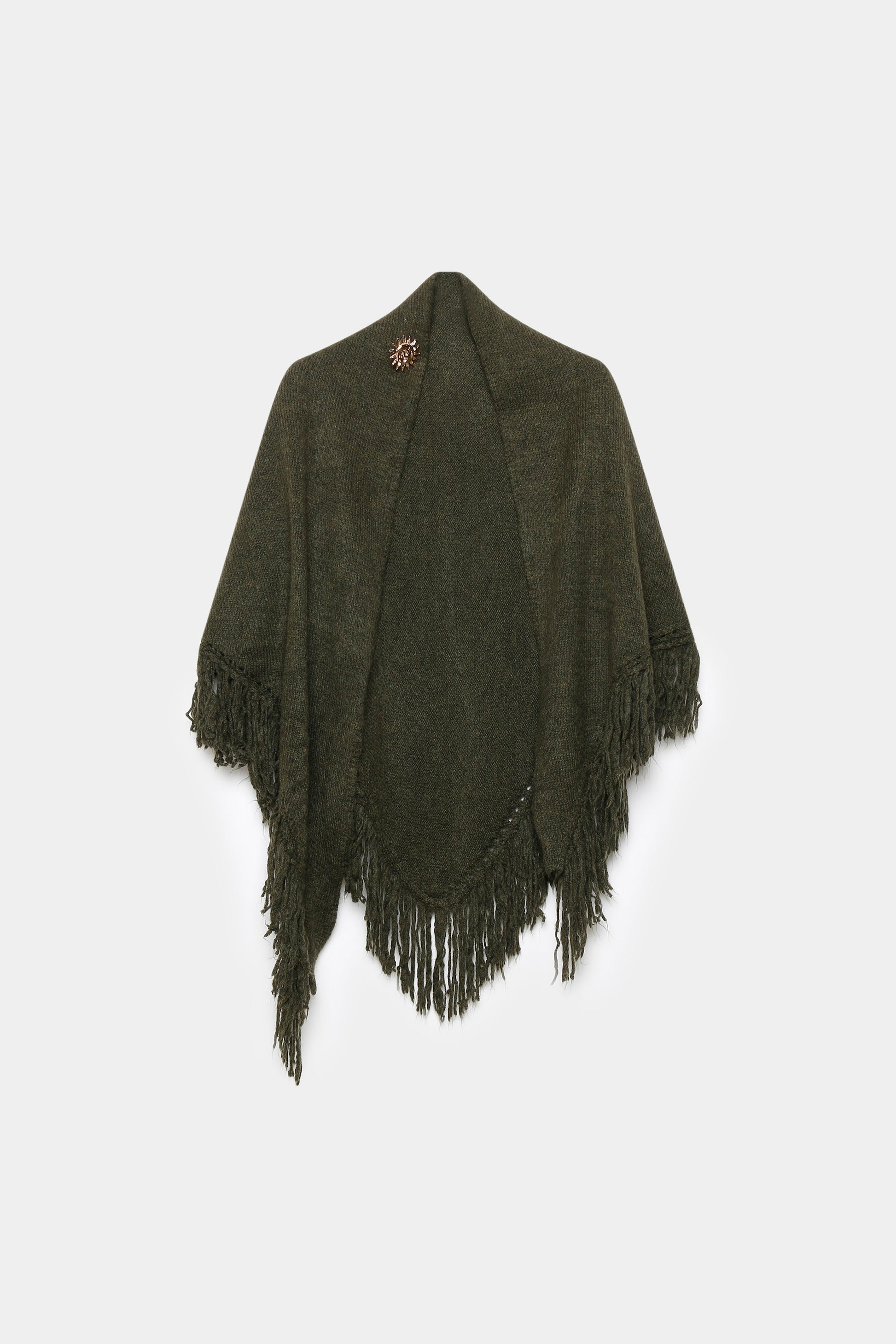 Tejido punto. Detalle flecos. Diseño capa. Disponible en varios colores.