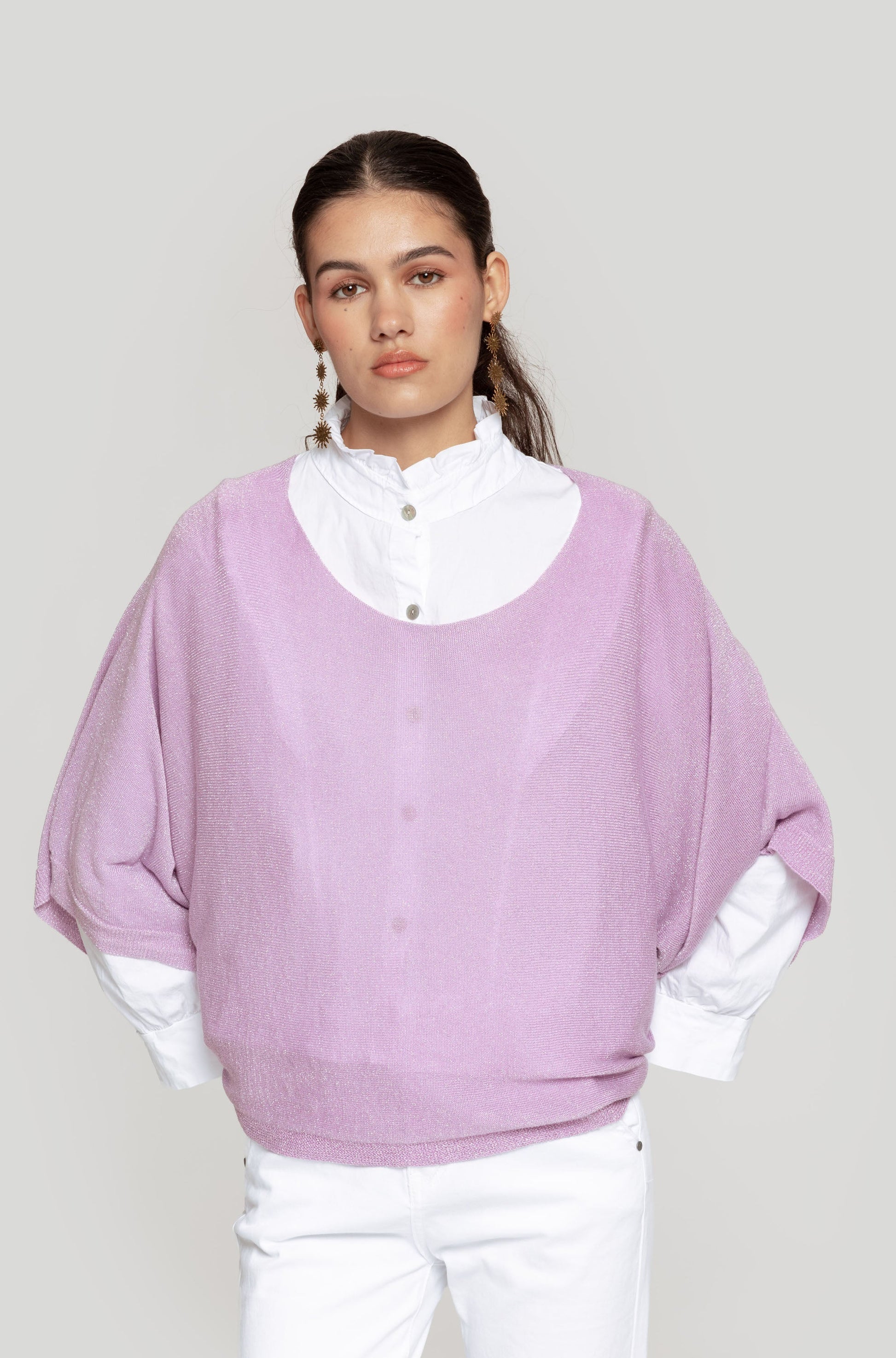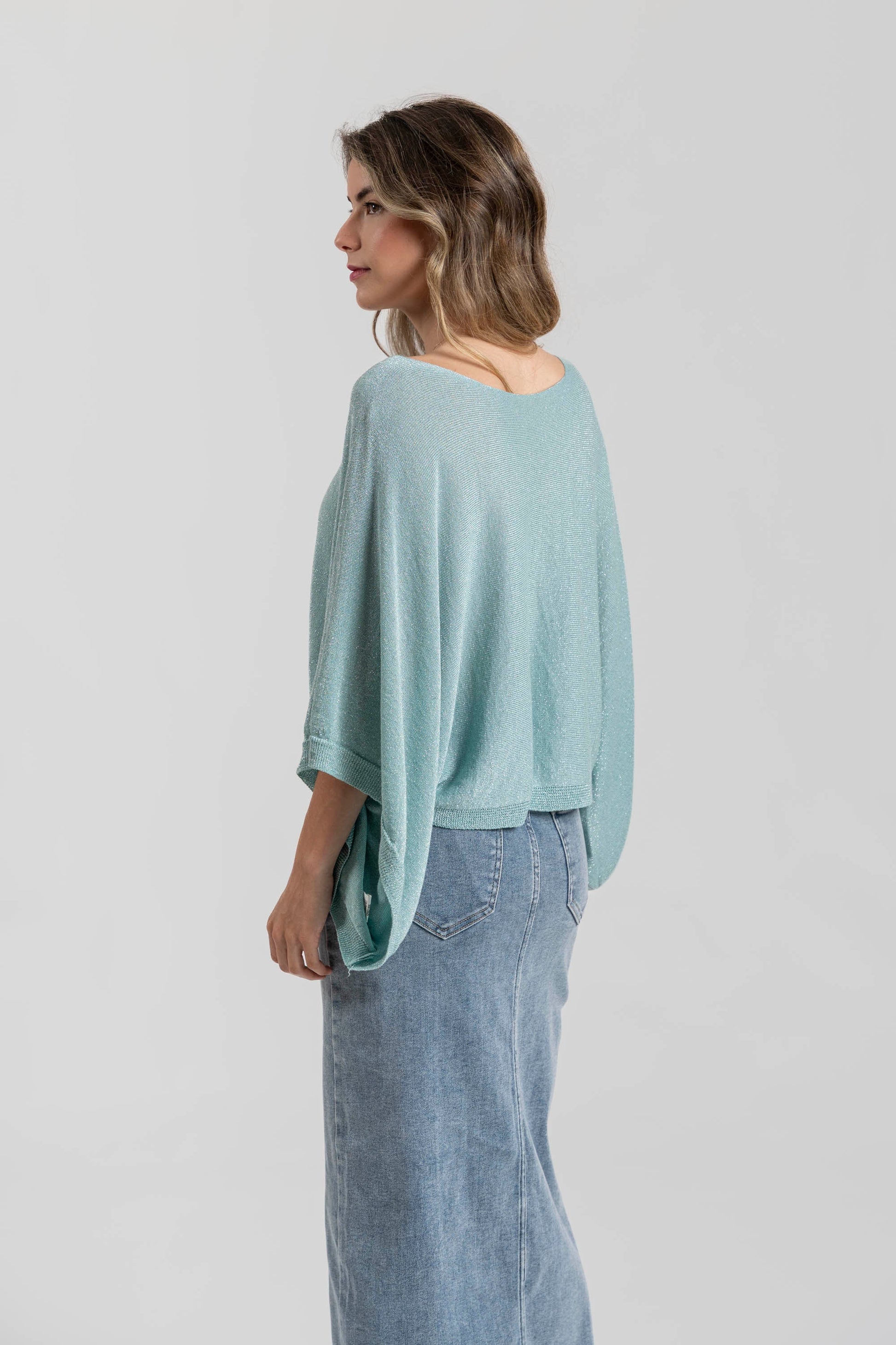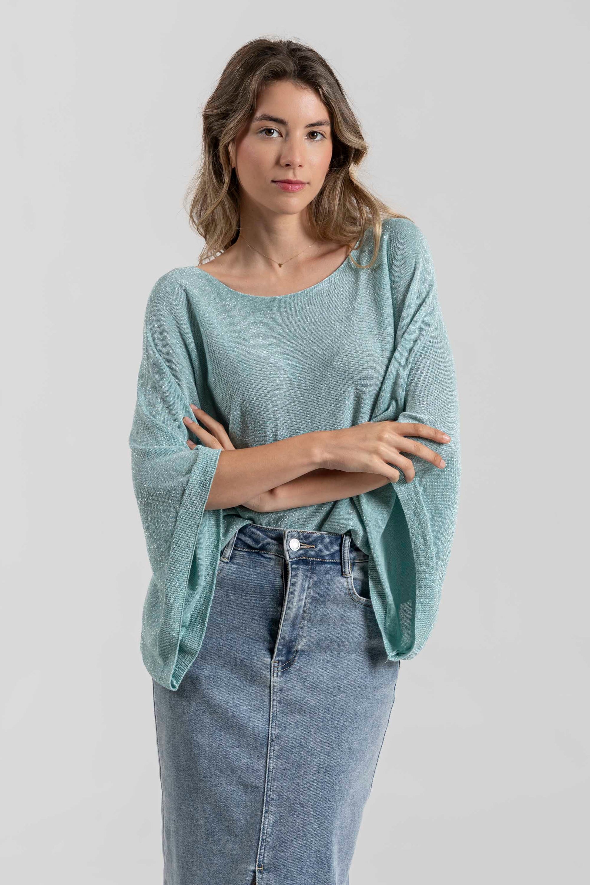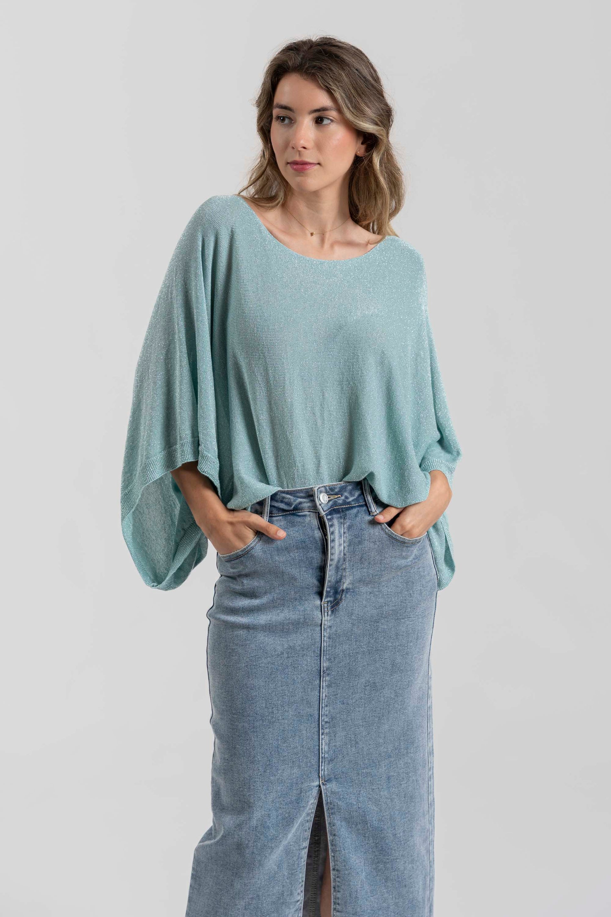 Tejido de brillo. Tejido de punto fino. Diseño en picos. Diseño básico. Cuello pico. Manga amplia. Disponible en varios colores. Talla única. Altura modelo: 1.75 m.