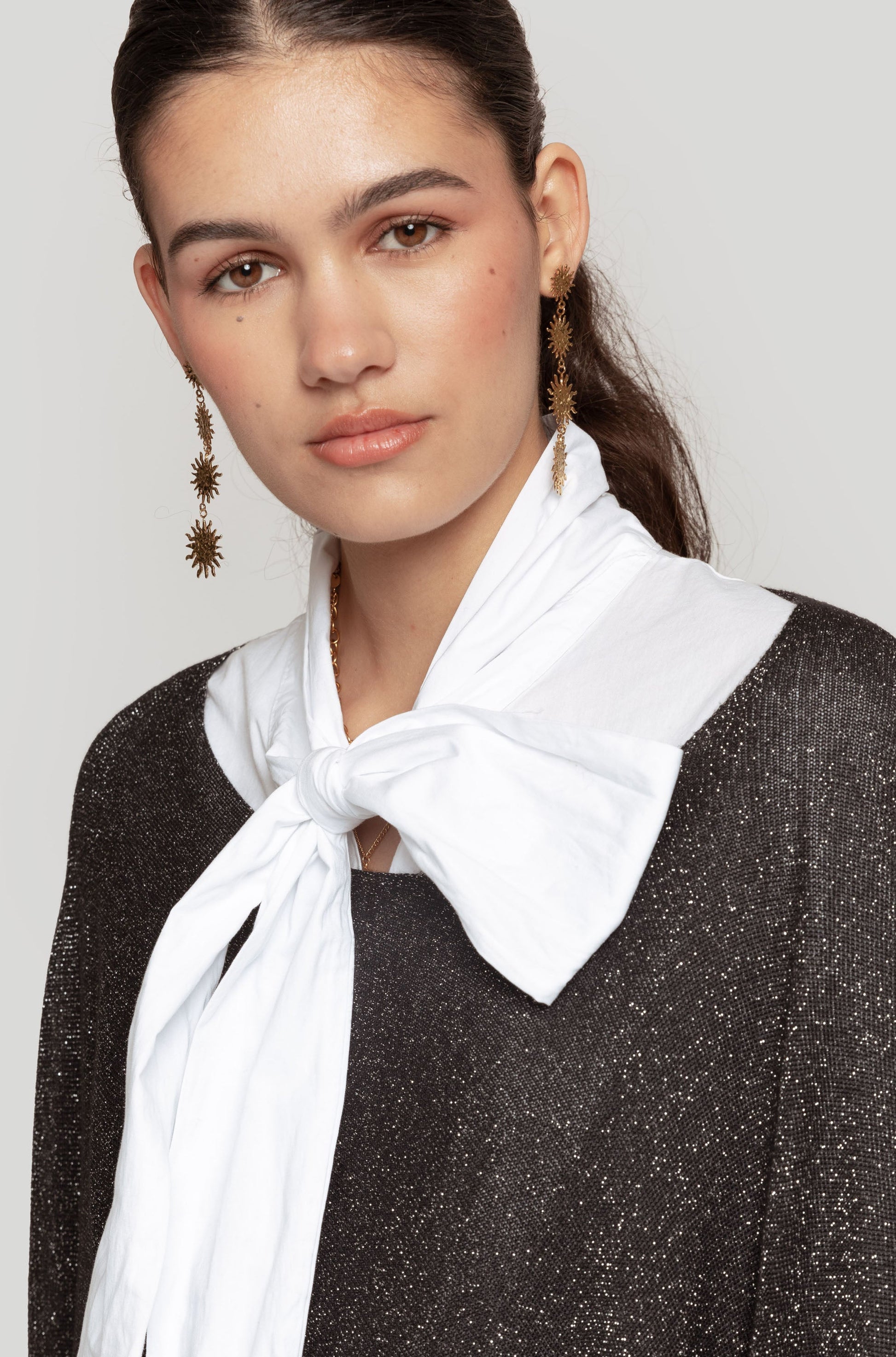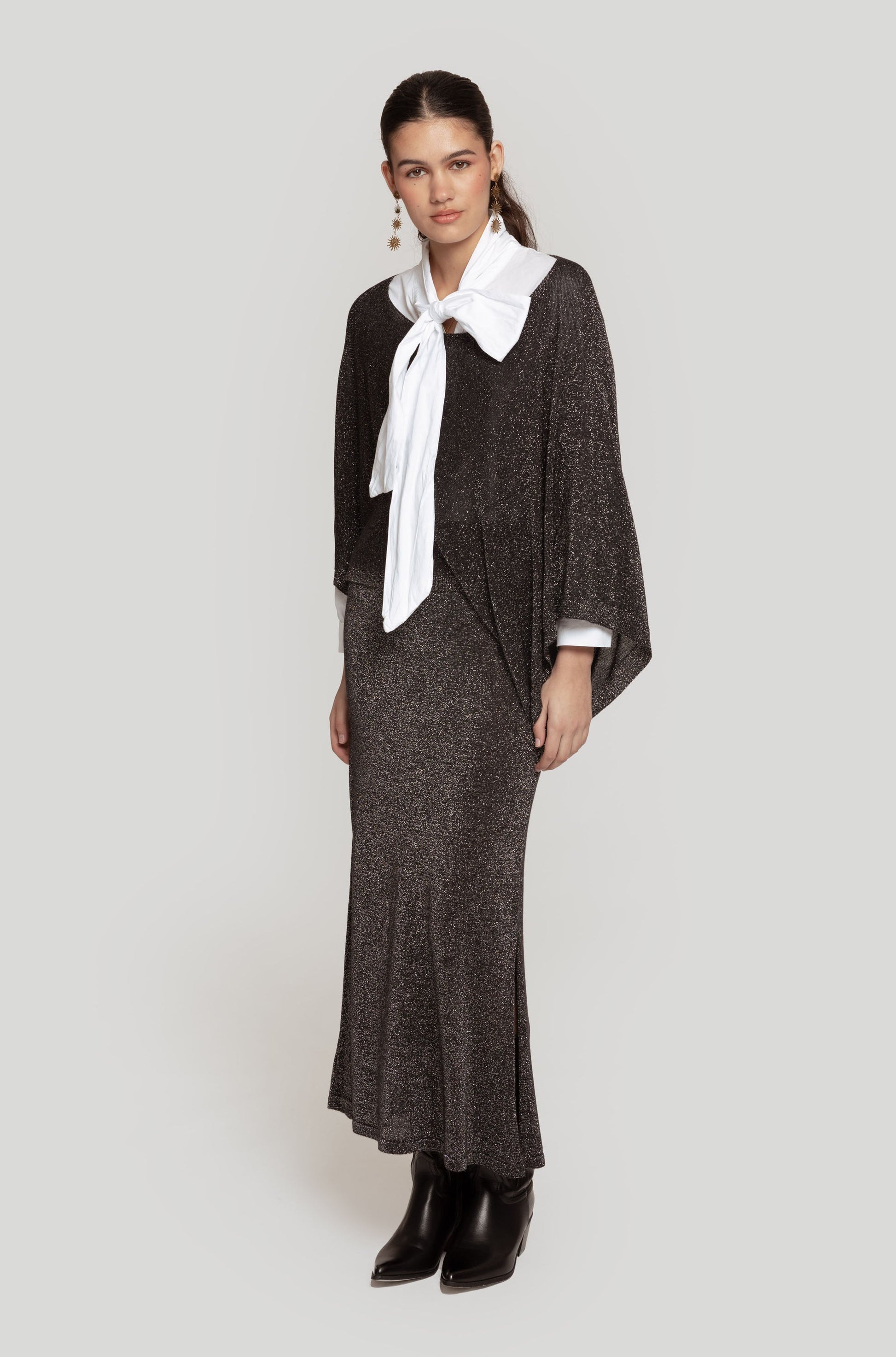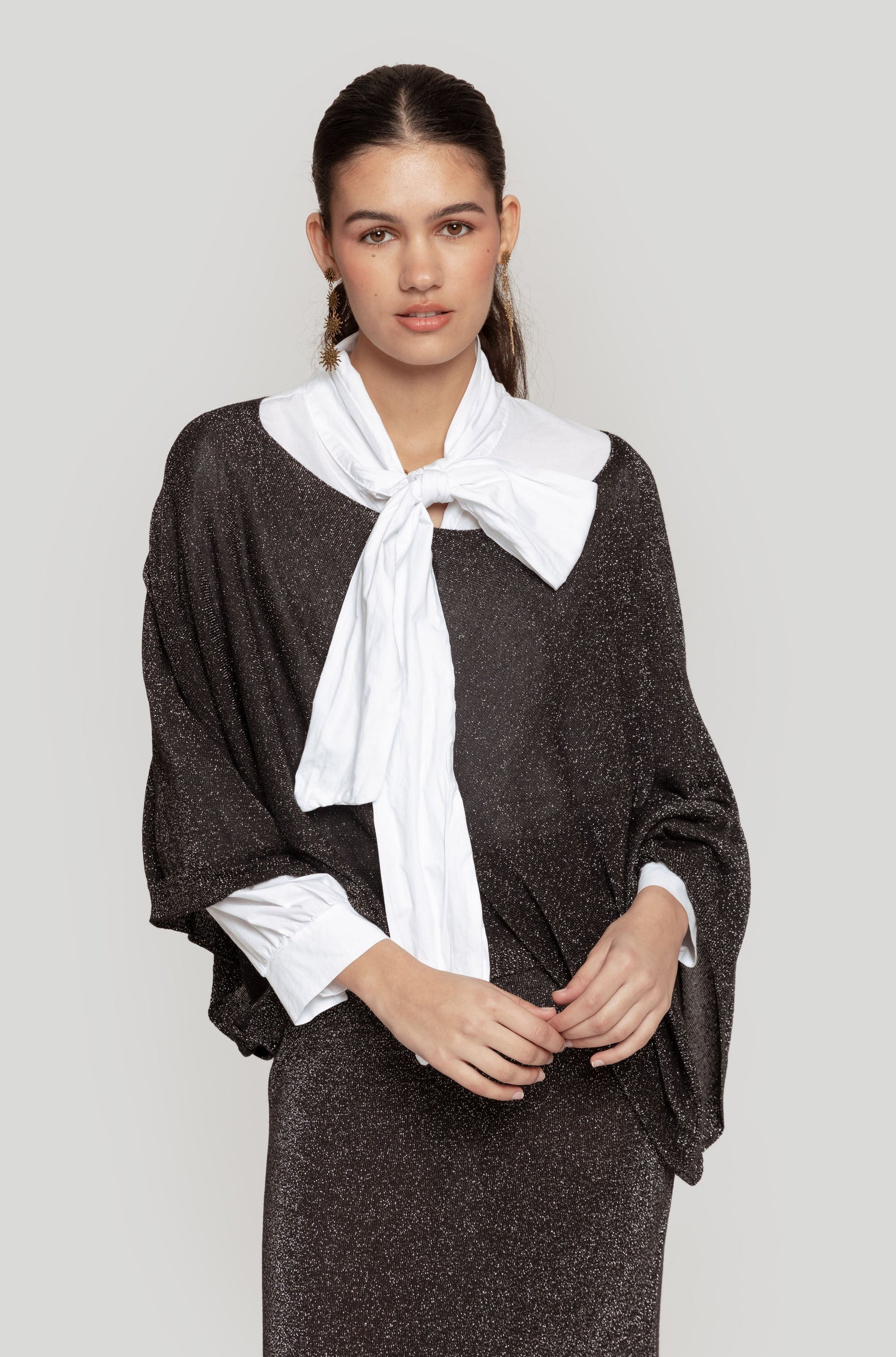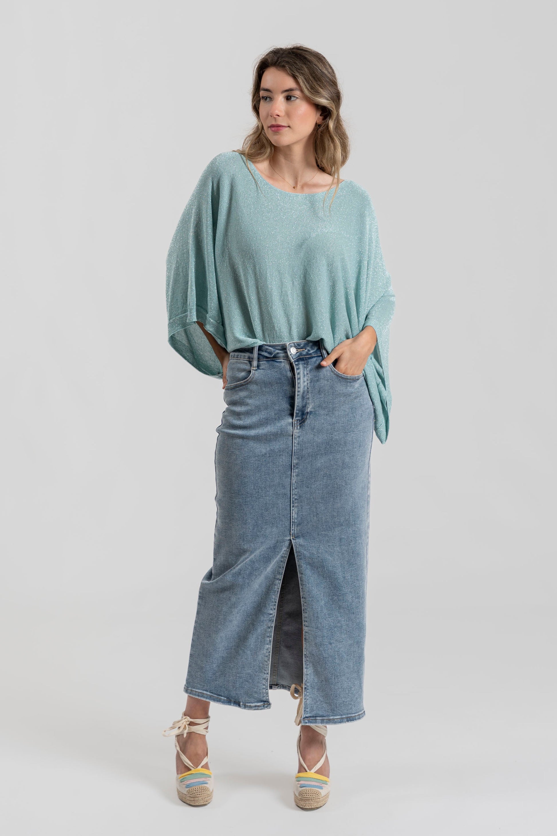 Tejido de brillo. Tejido de punto fino. Diseño en picos. Diseño básico. Cuello pico. Manga amplia. Disponible en varios colores. Talla única. Altura modelo: 1.75 m.