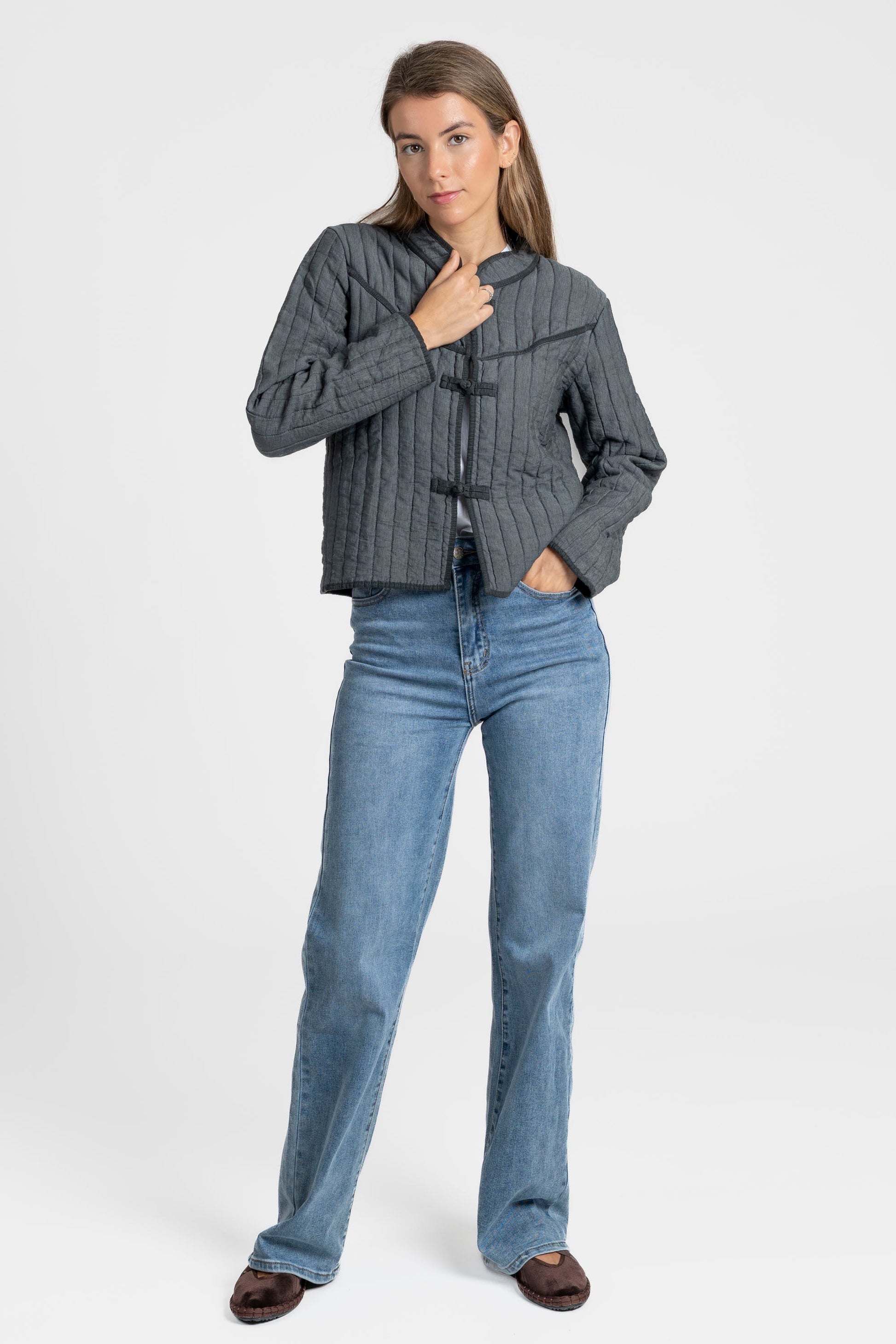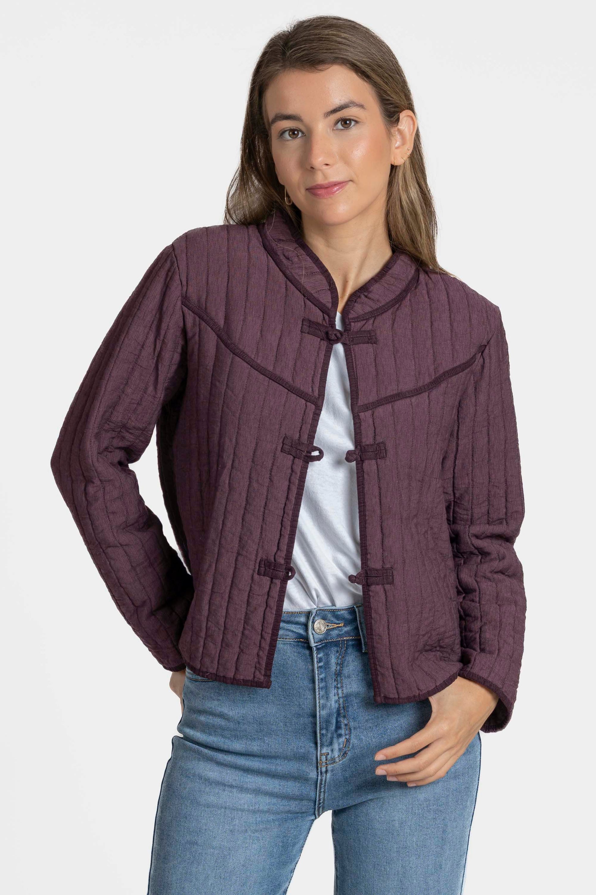 Tejido de algodón acolchado. Cuello redondo. Manga larga.