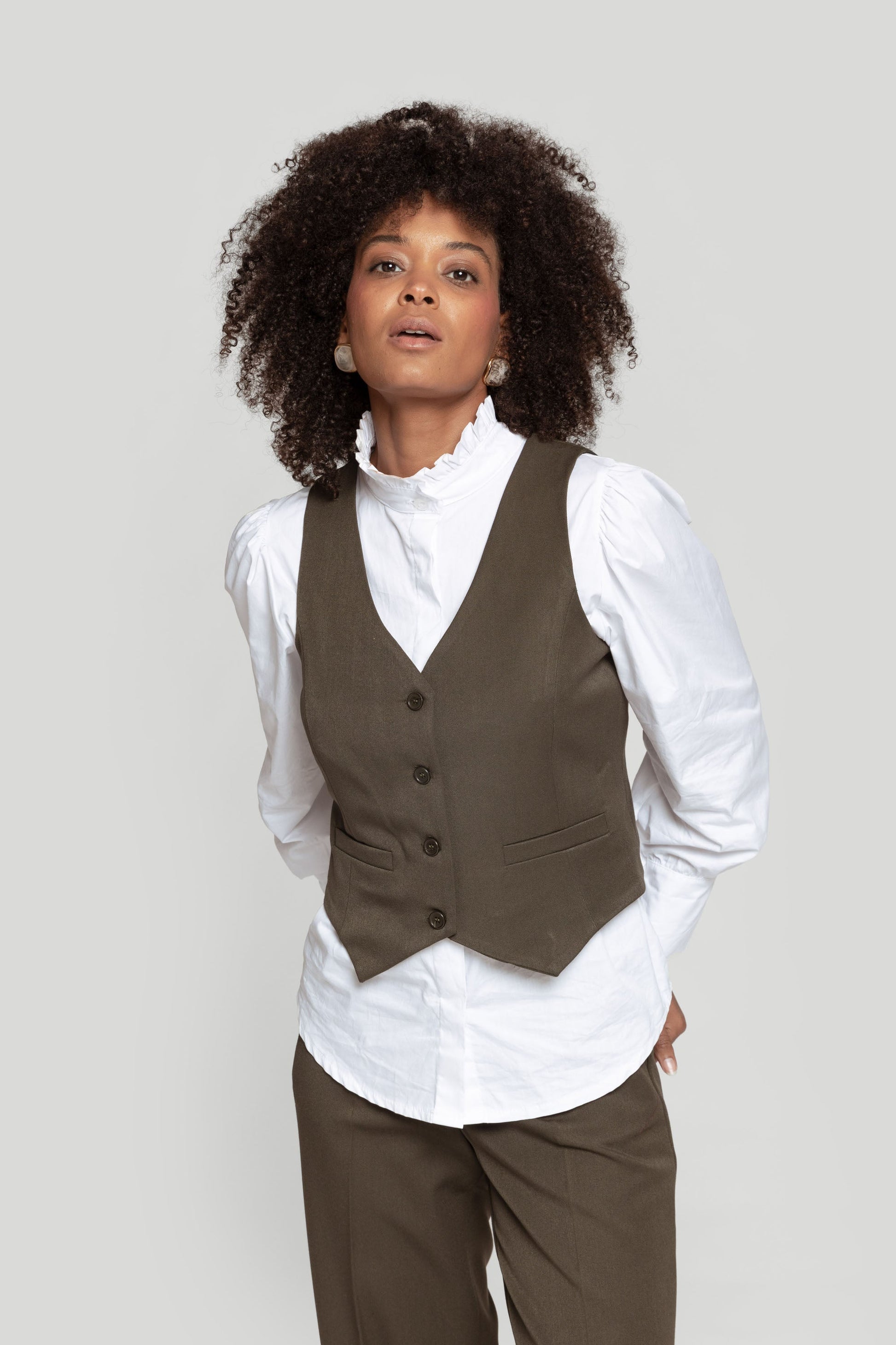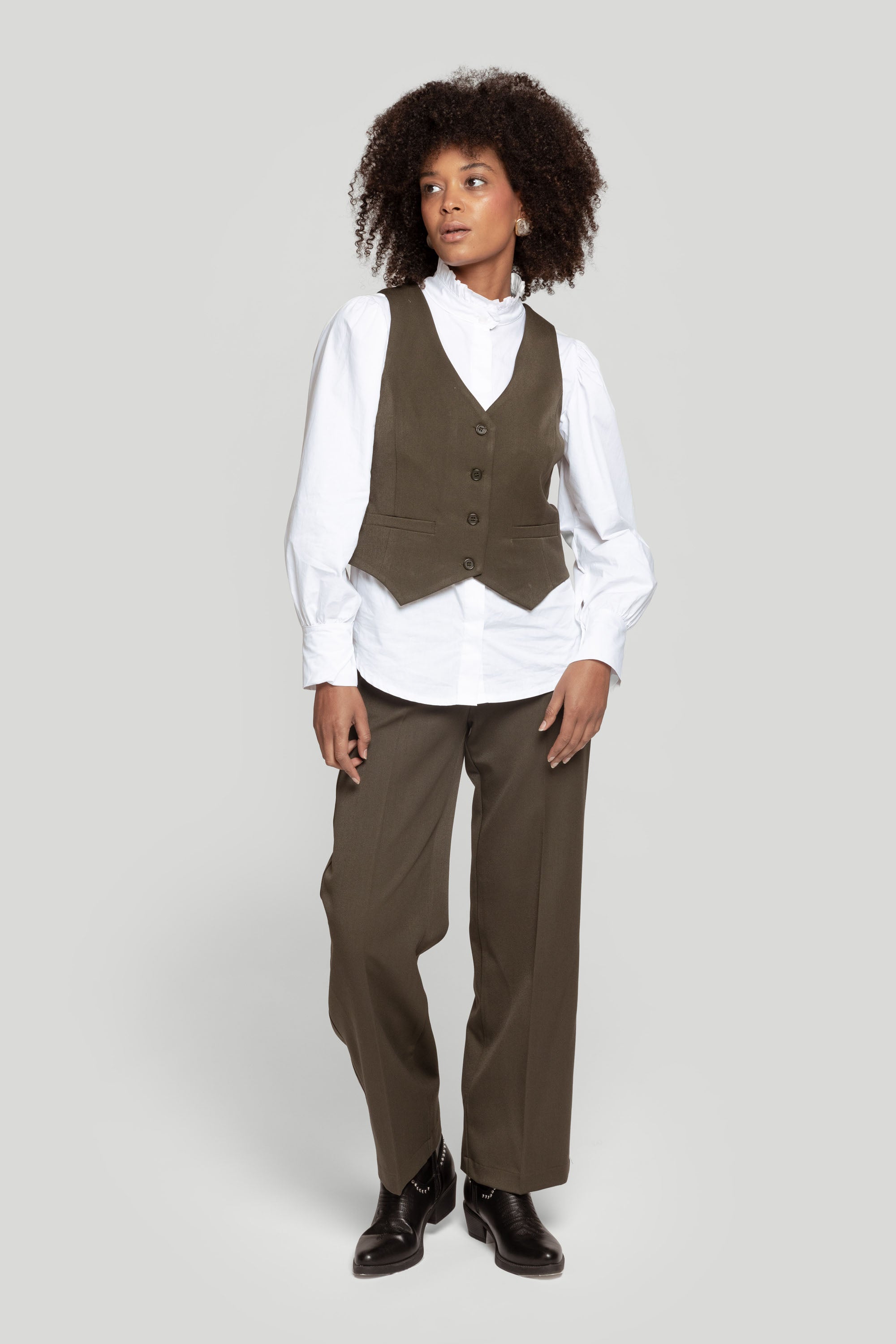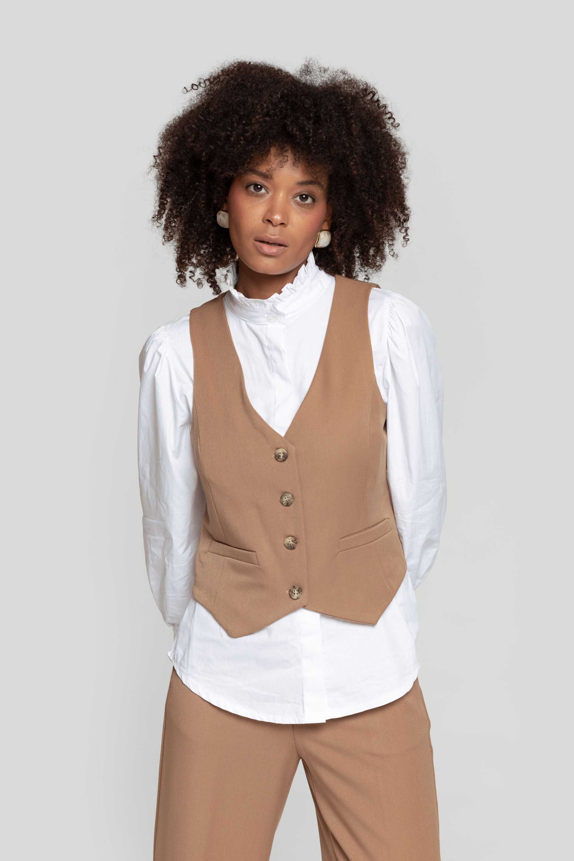 Conjunto de chaleco y pantalón. Disponible en varios colores. Talla modelo: S. Altura modelo: 1,66 m.