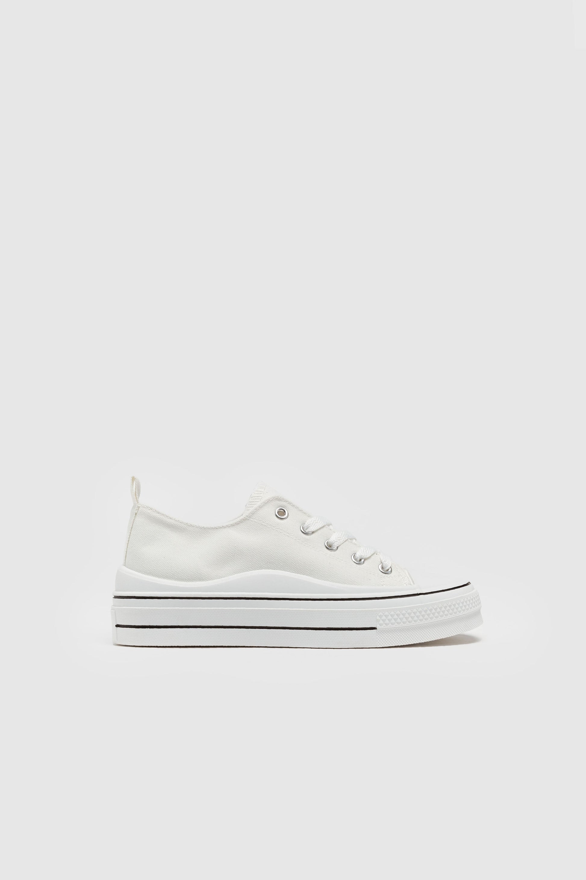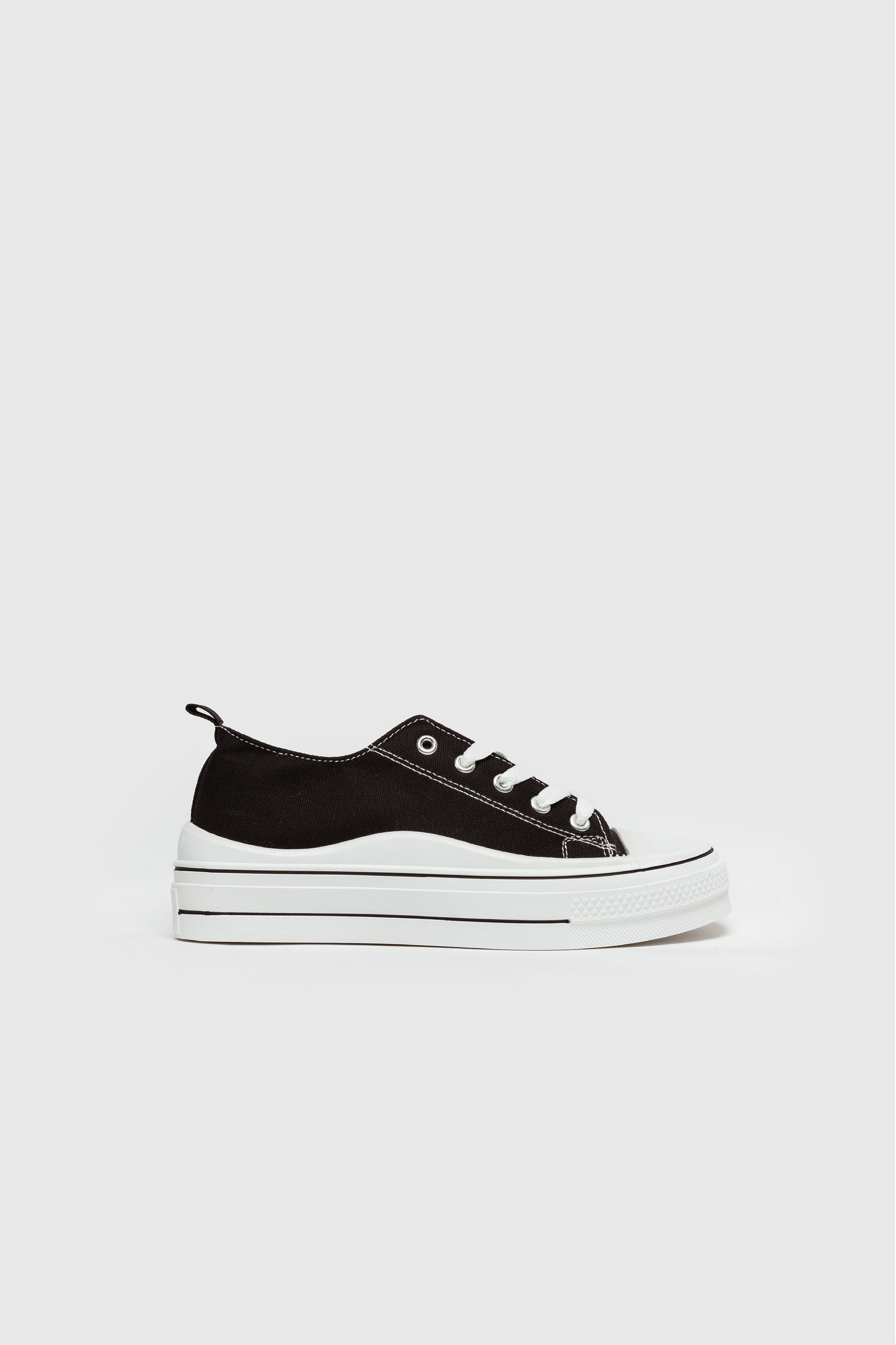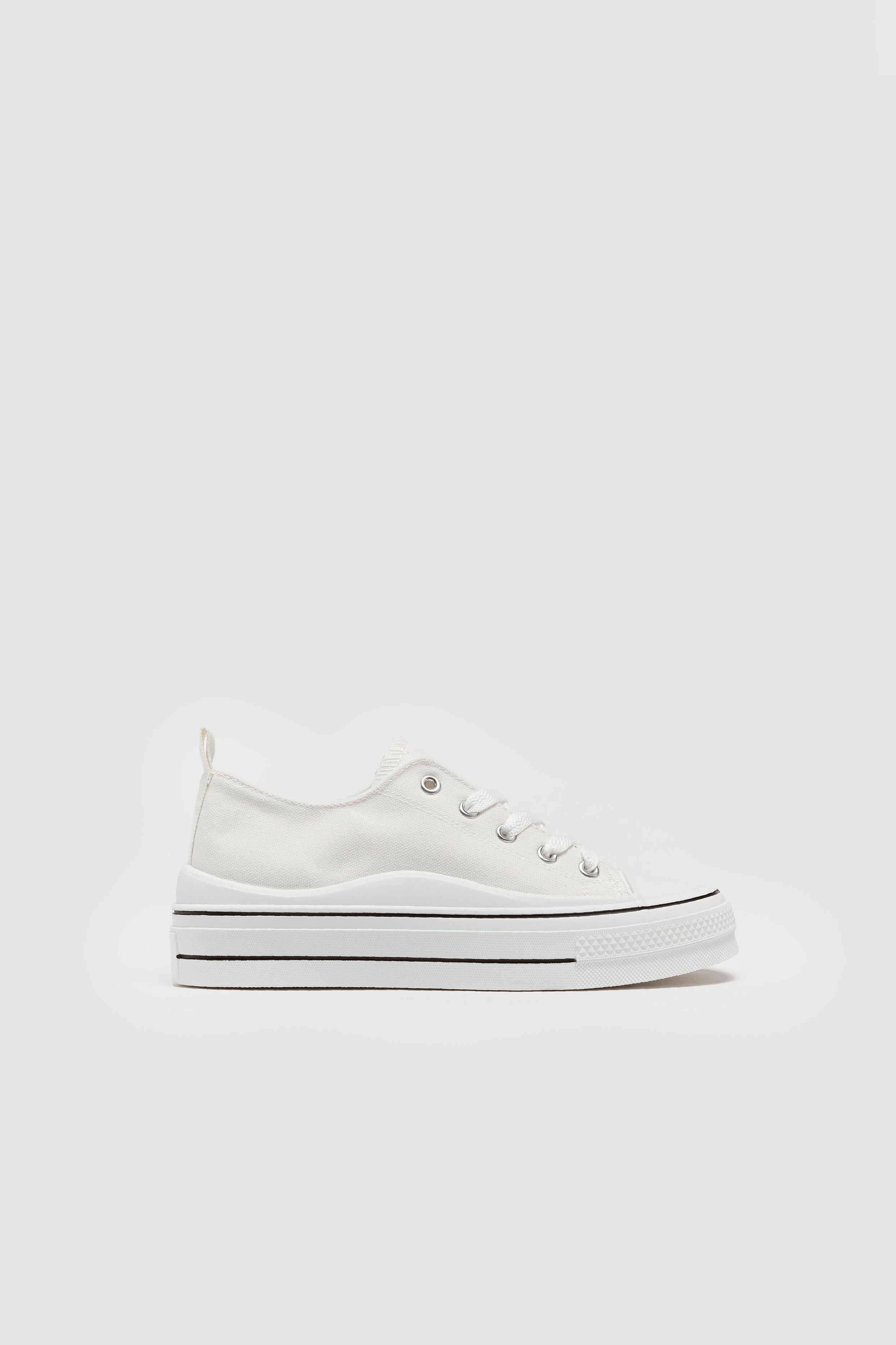 Deportivas tejido lona. Diseño básico. Plataforma con detalle linea. Punta redonda. Cierre de cordones. Tirador trasero.