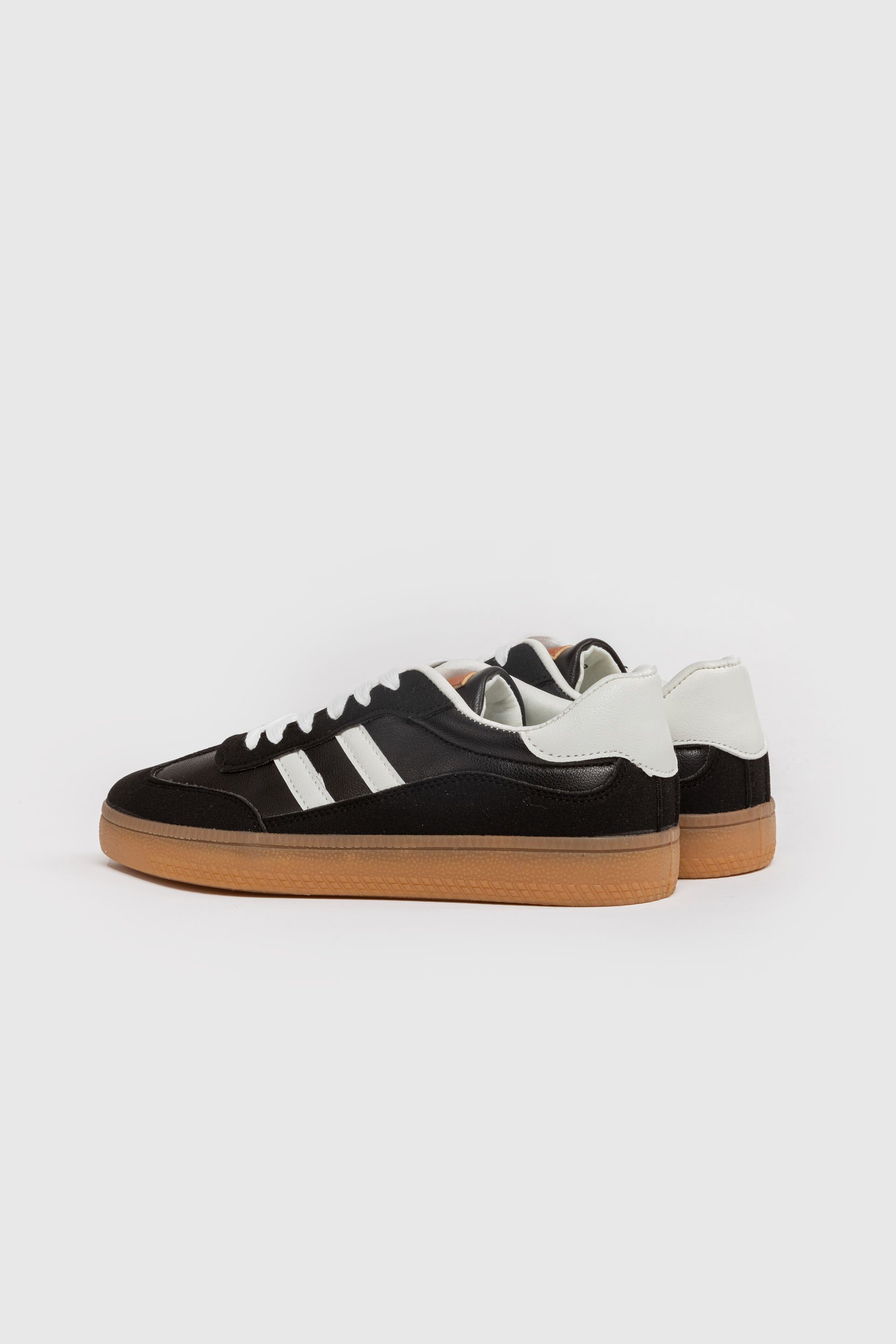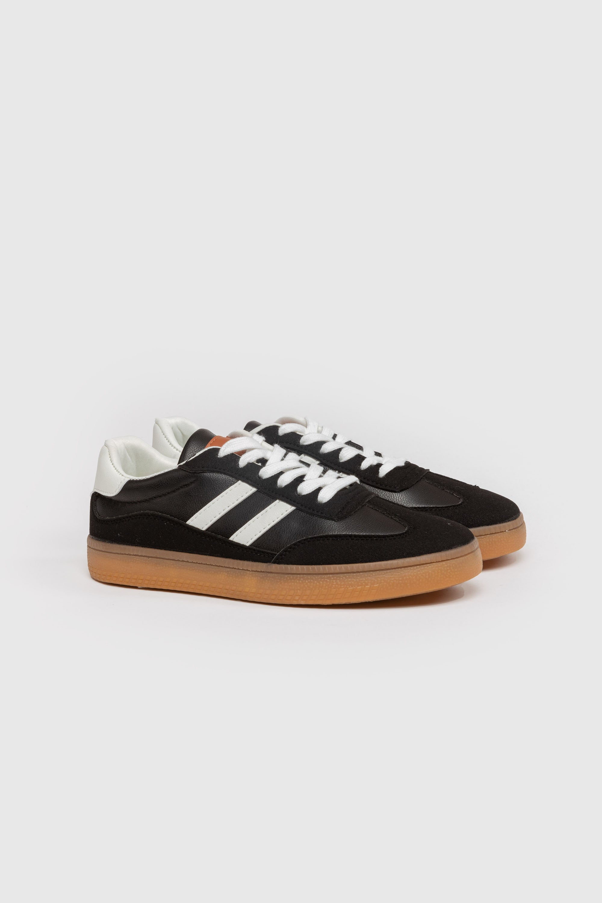Zapato tipo deportiva. Tejido combinado. Diseño platarforma. Cierre de cordones. Suela de goma. Suela antideslizante.