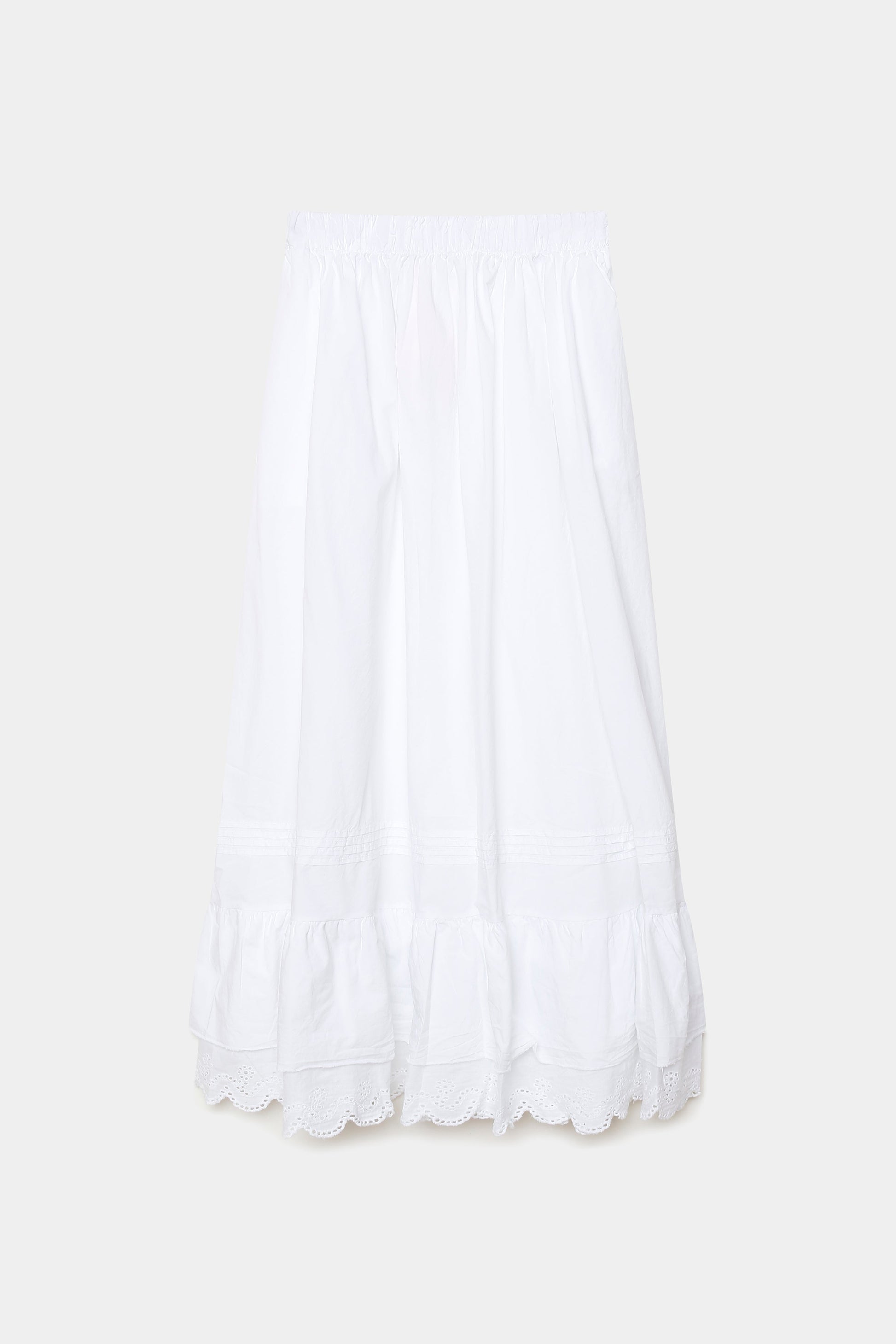 Tejido algodón. Diseño largo. Diseño vuelo. Diseño largo. Cintura elástica. Bolsillos laterales. Bajo detalle bordados.