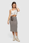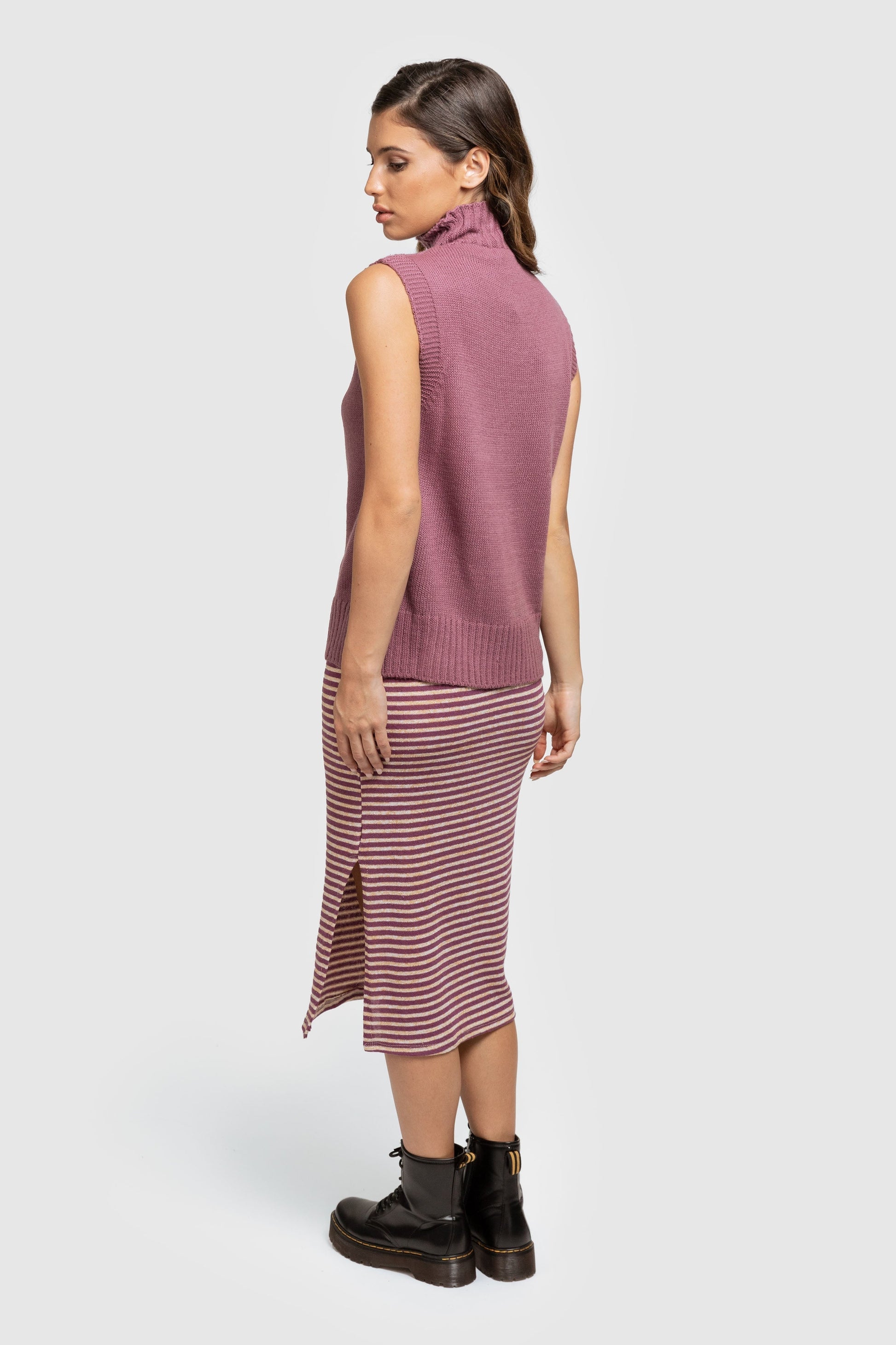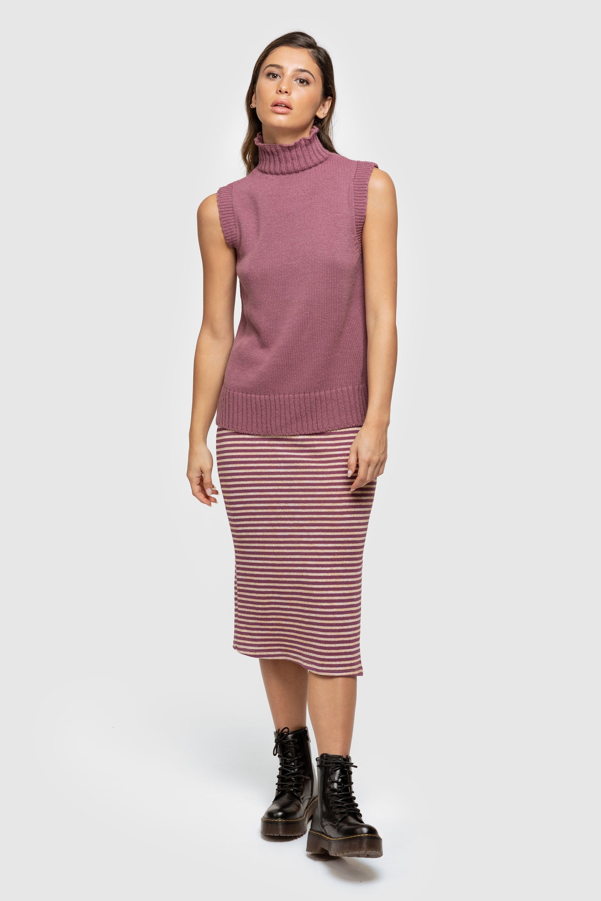 Falda básica. Estampado rayas. Diseño midi. Cintura elástica. Abertura lateral. . Talla modelo: S. Altura modelo: 1,76 m.