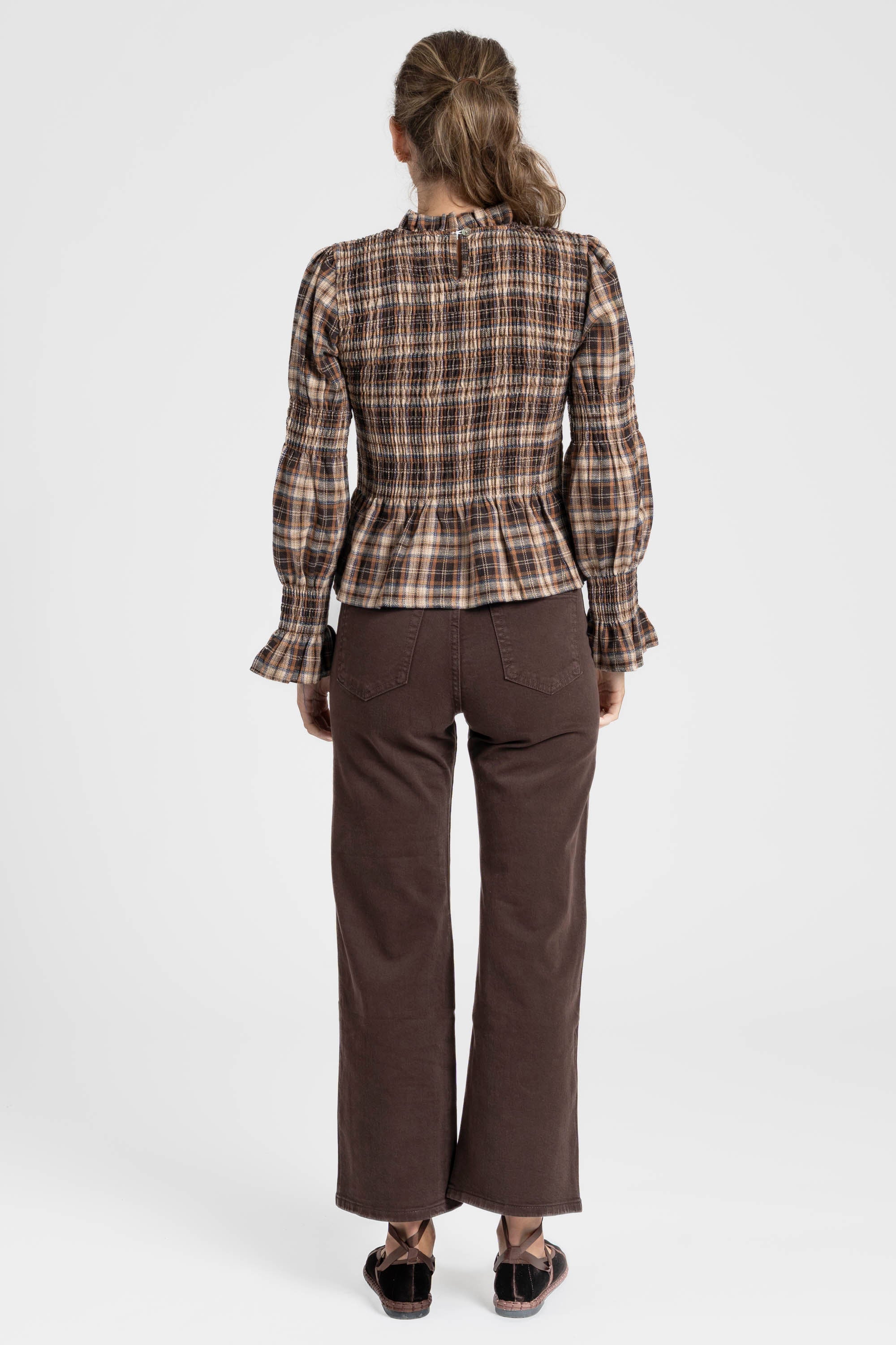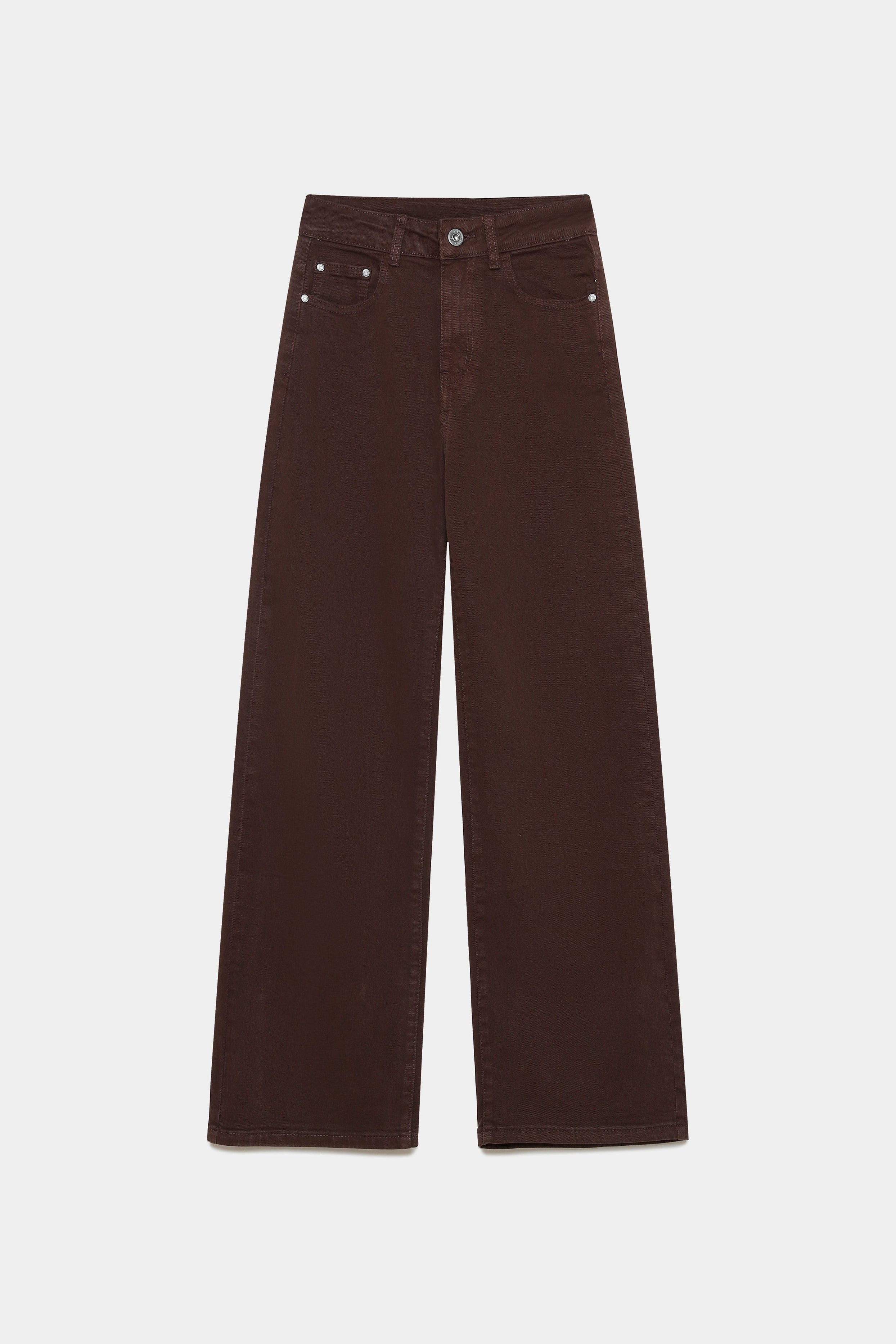 Tejido mezcla de algodón. Tiro alto. Cinco bolsillos. Cierre cremallera y botón. Diseño recto.