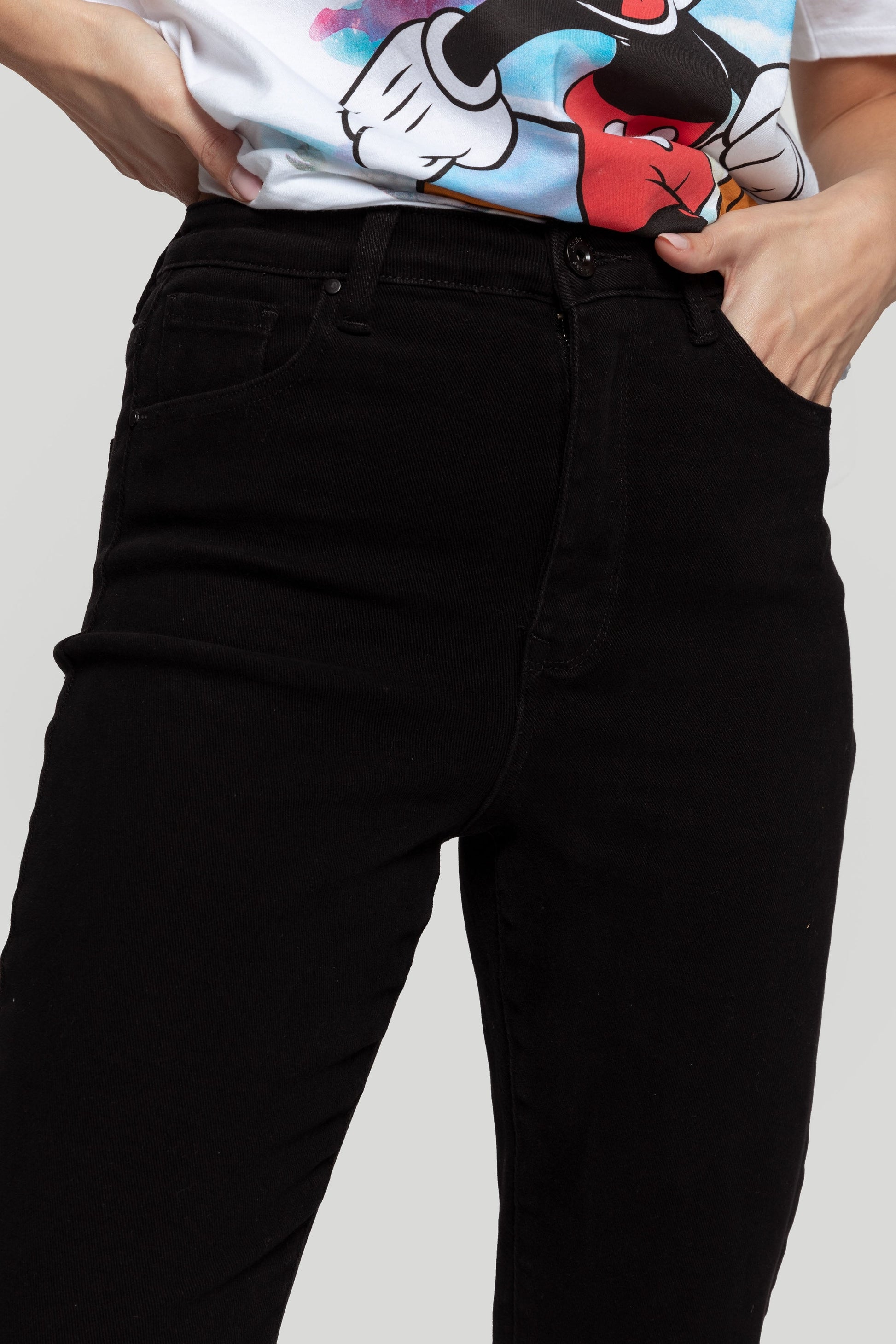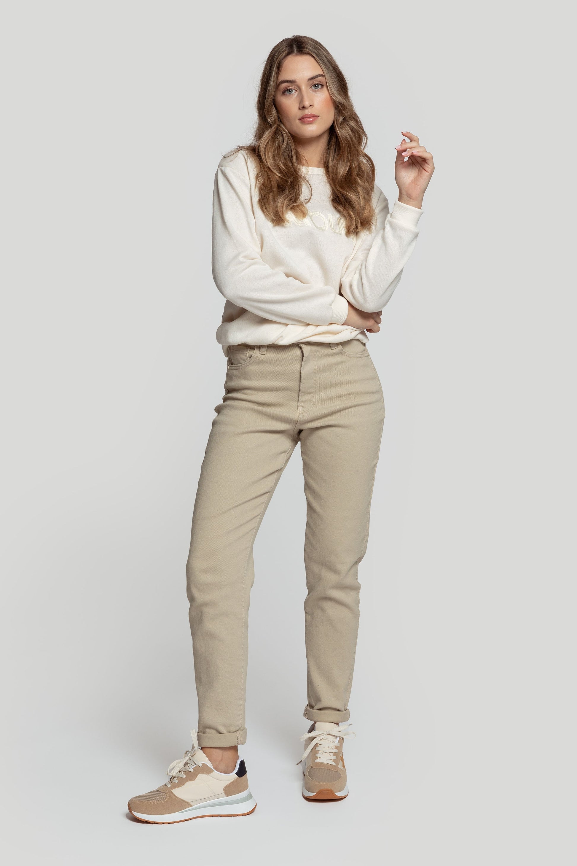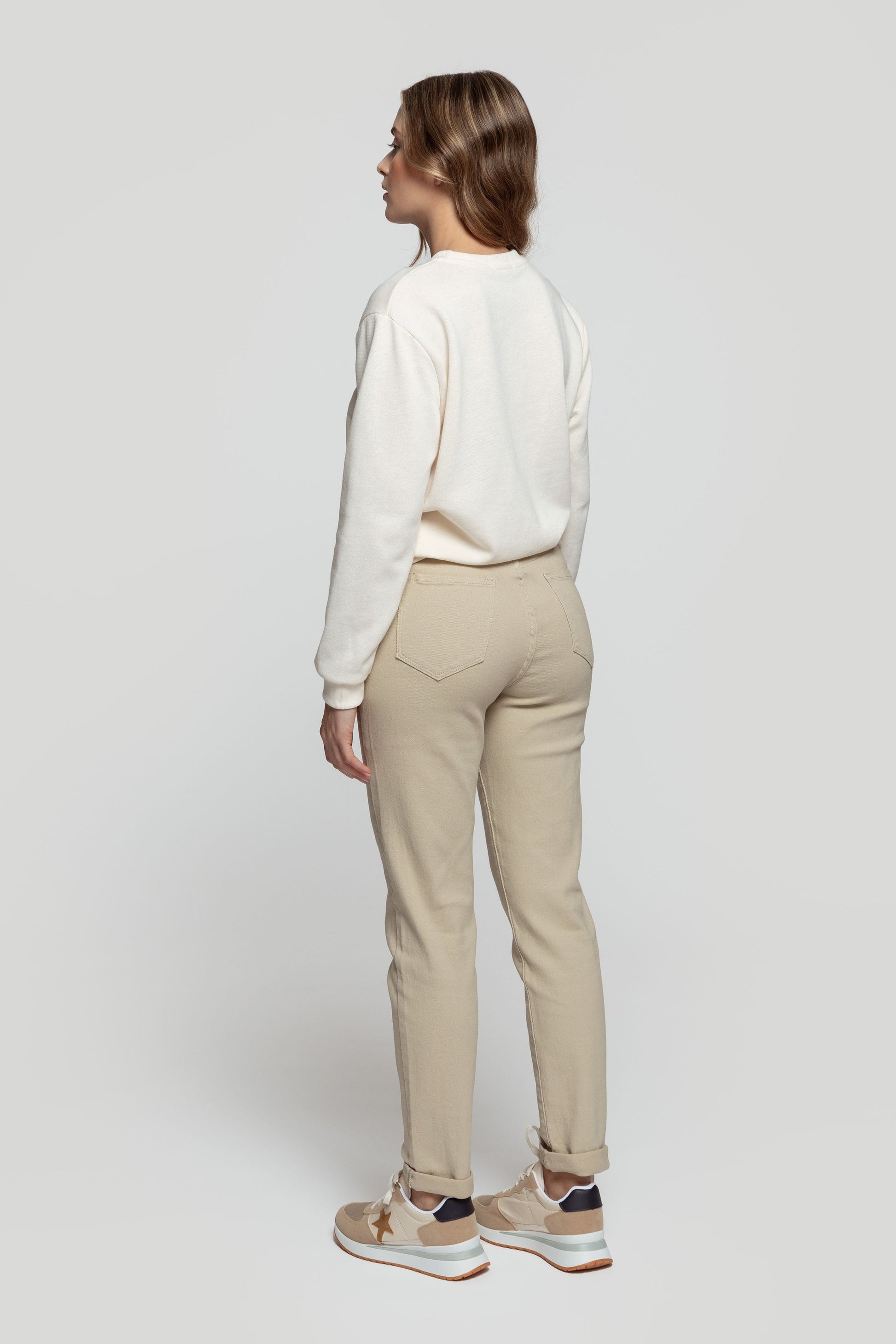 Jeans de algodón. Tiro alto. Regular fit. Diseño amplio. Cinco bolsillos. Cierre de cremallera y botón. Trabillas. Vuelta bajo. Talla modelo: 36. Altura modelo: 1,66 m.