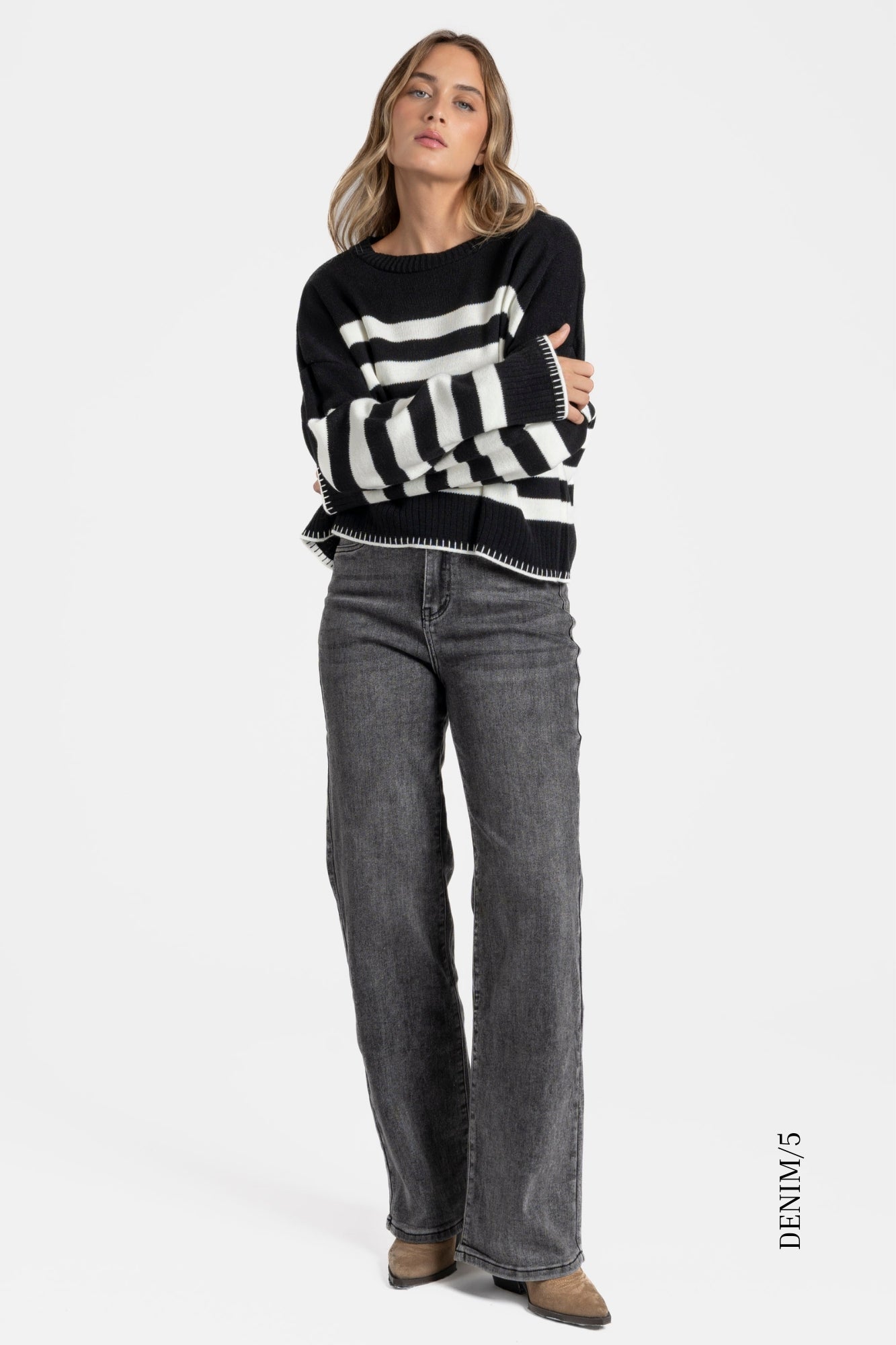 Tejido mezcla de algodón. Tejido tejano vaquero. Tejido elástico. Diseño recto. Diseño largo. Tiro alto. Cinco bolsillos. Cierre de cremallera y botón. Trabillas.