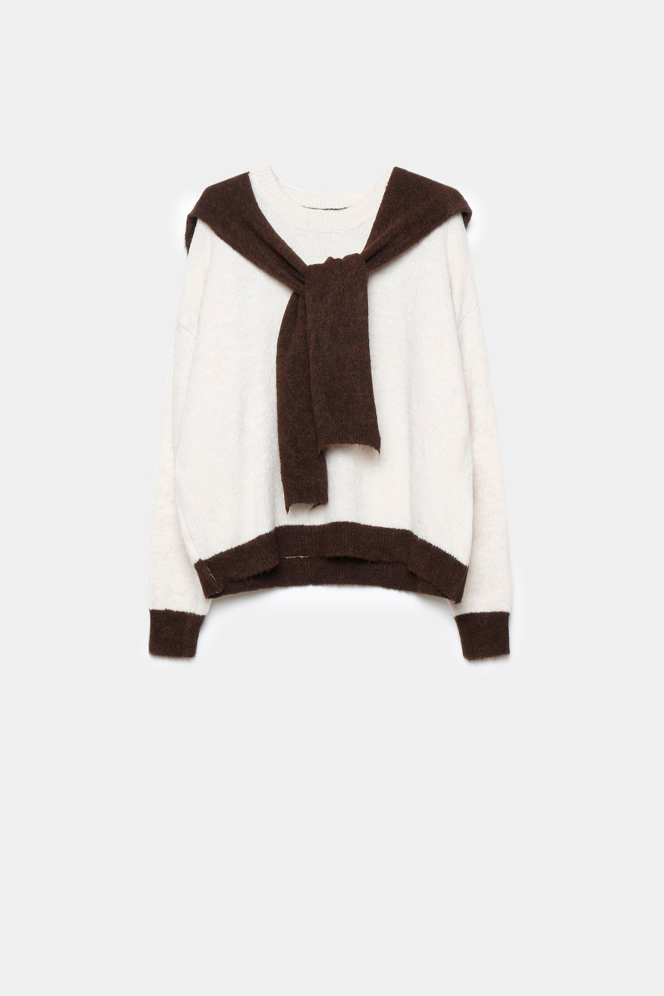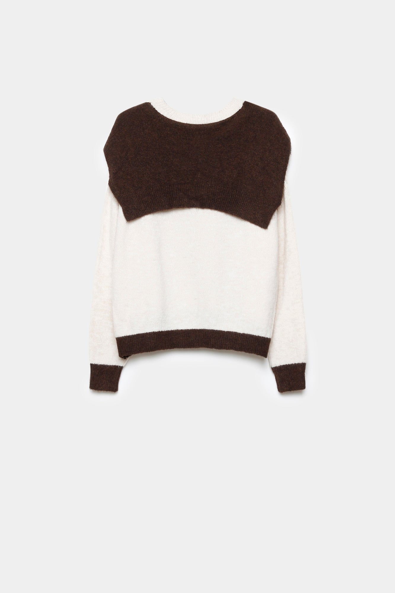 Tejido de punto. Cuello redondo. Capa combinado. Manga larga.