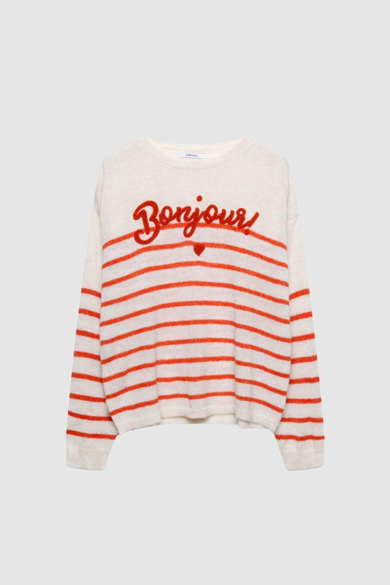 Tejido de punto. Punto medio. Diseño recto. Diseño estampado. Cuello amplio. Manga larga.