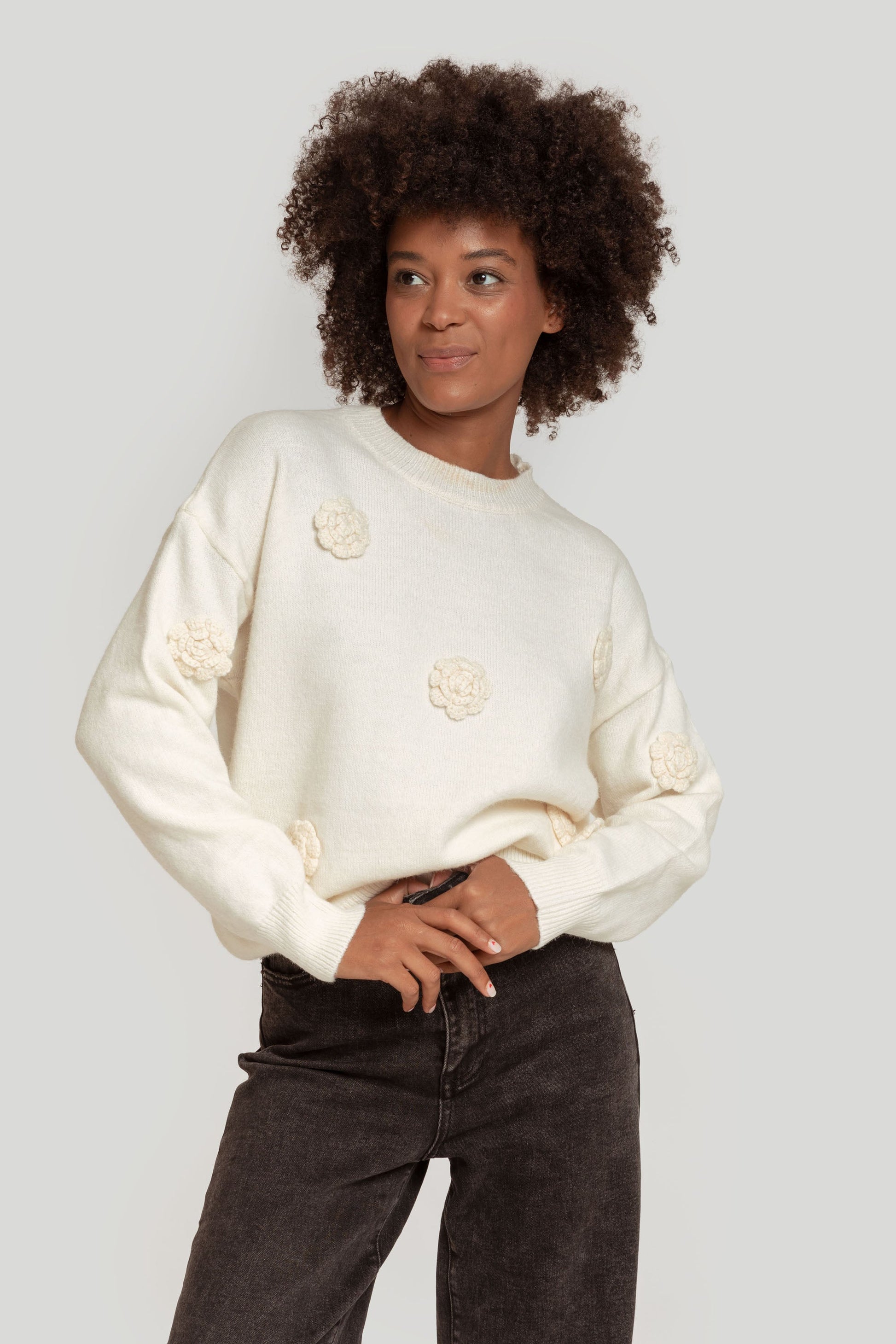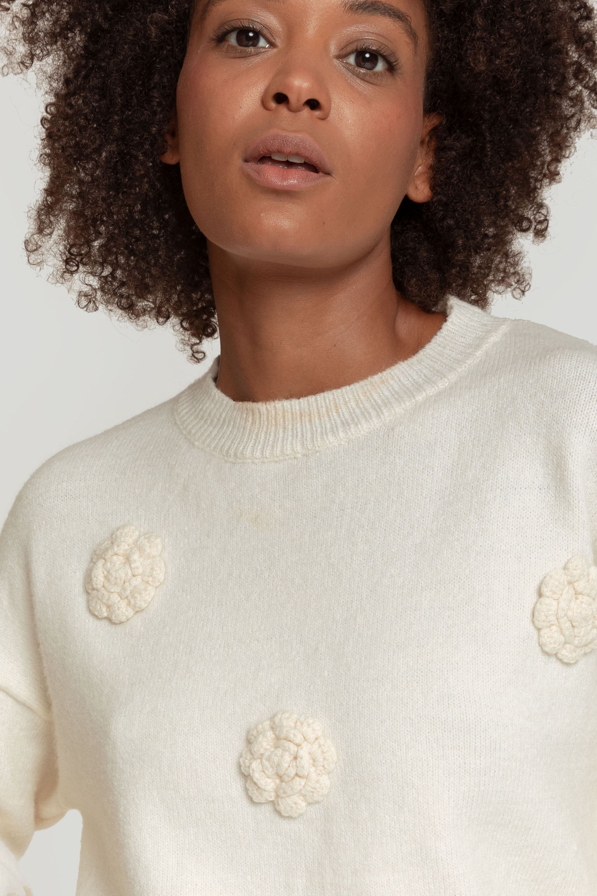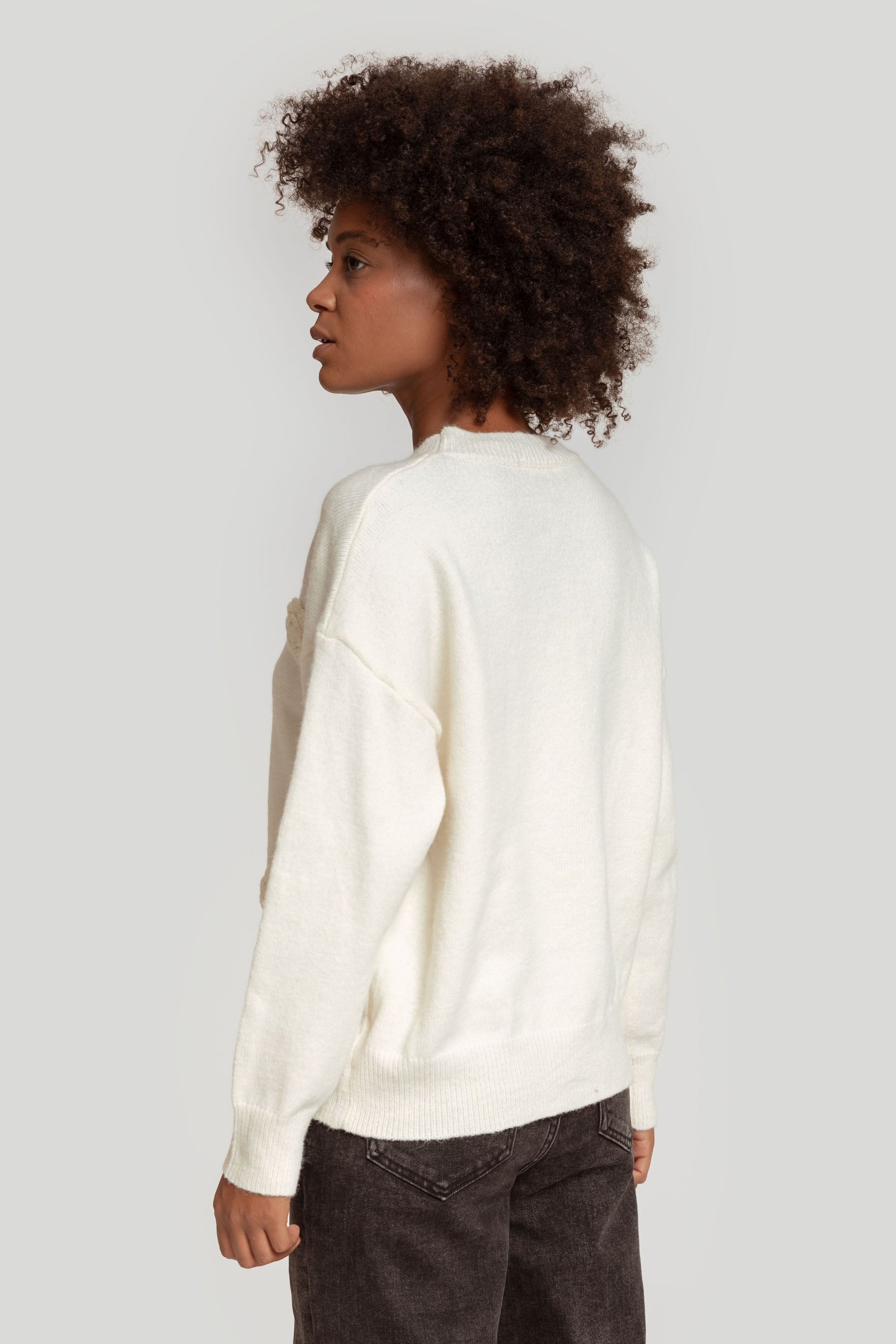 Tejido de punto. Punto medio. Diseño amplio. Cuello redondo. Manga larga. Hombros caídos. Acabado lana. Terminaciones en rib. Talla única. Altura modelo: 1,66 m.