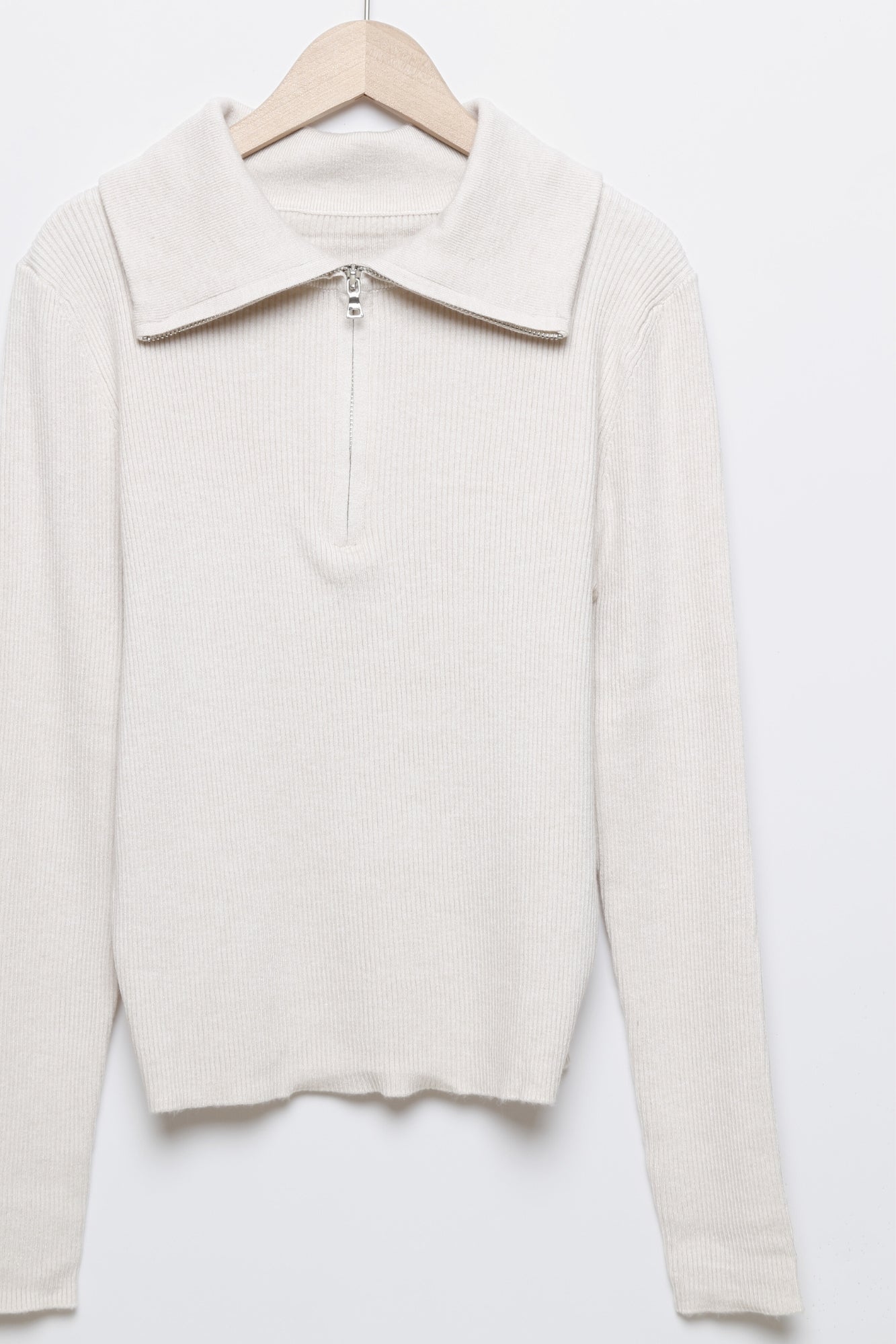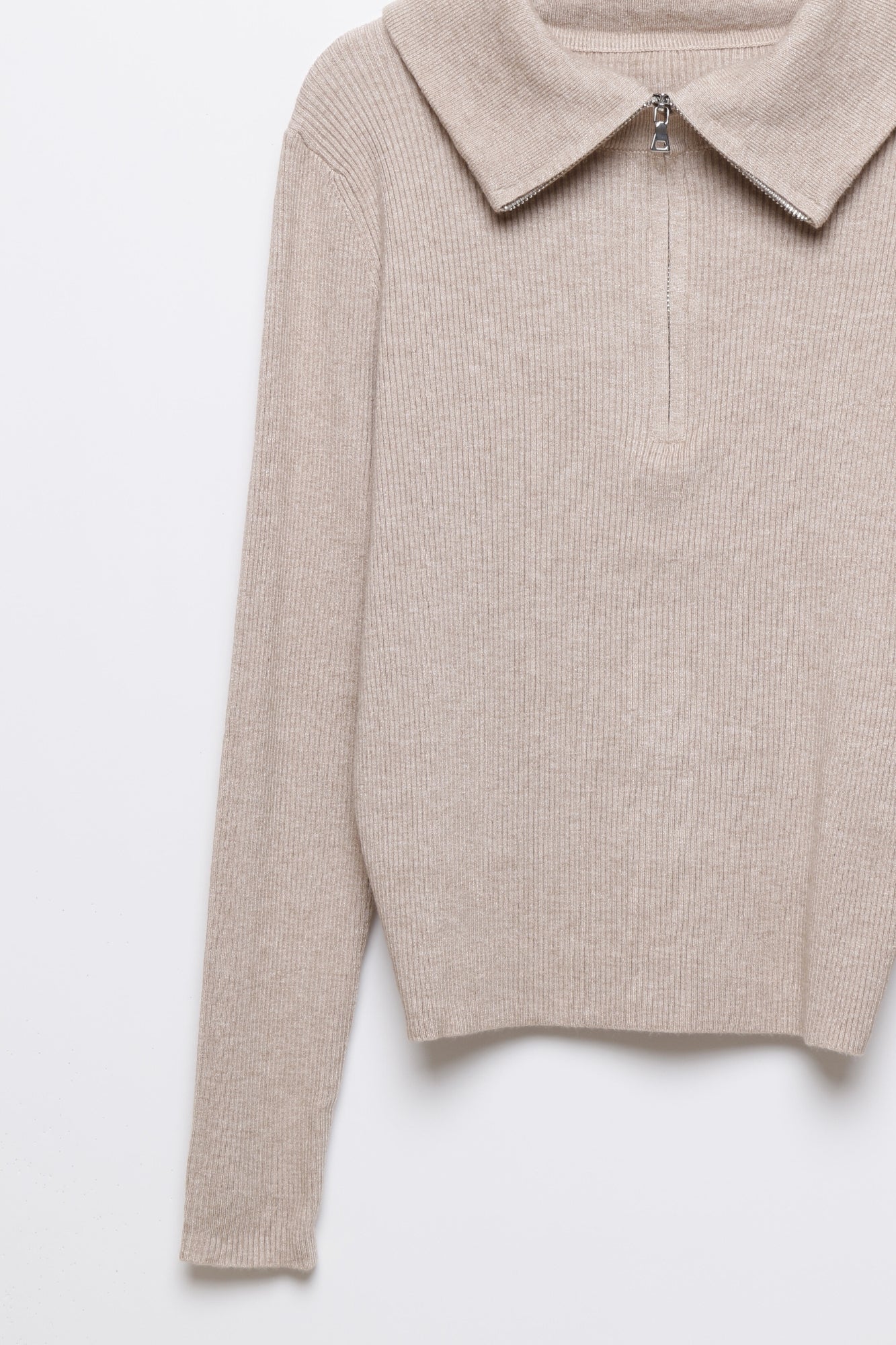 Tejido de punto. Diseño recto. Cuello polo. Cuello con cremallera. Manga larga. Hombros caídos.