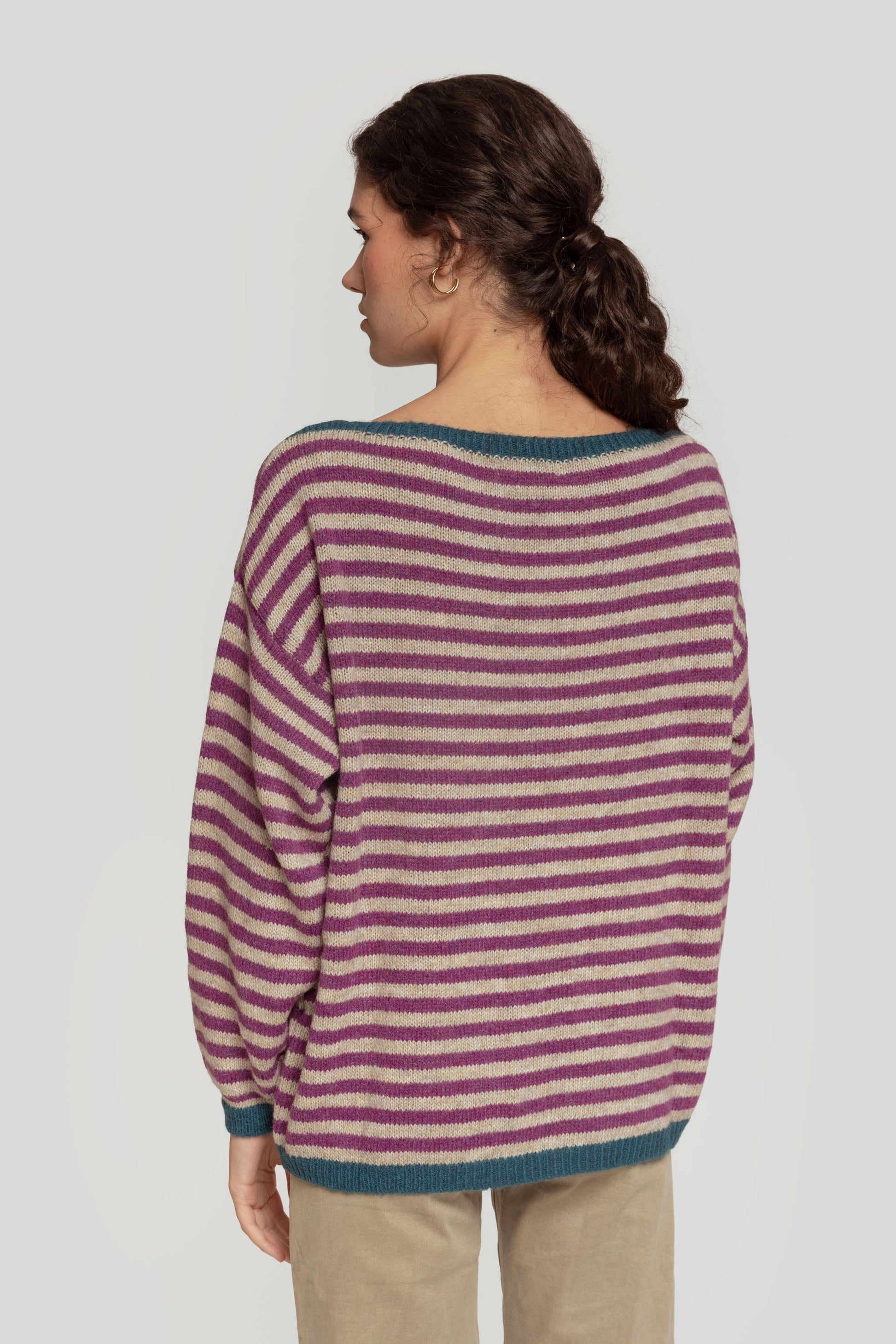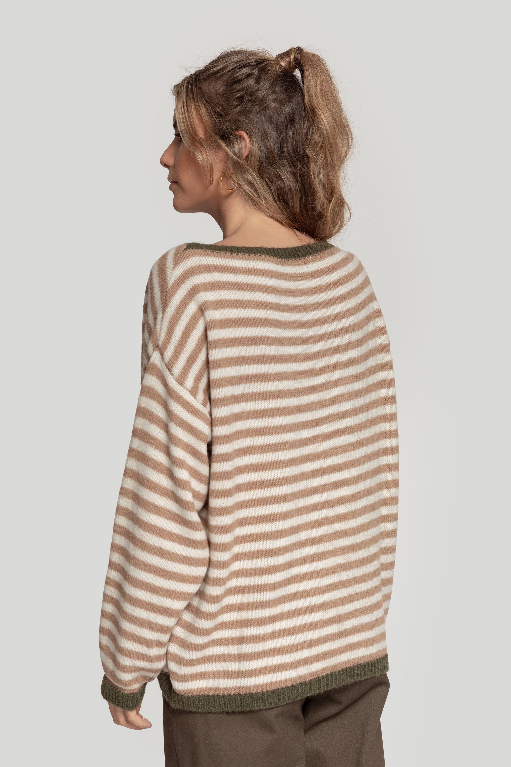 Tejido de punto. Punto medio. Diseño estampado. Diseño recto. Diseño largo. Cuello redondo. Manga larga. Terminaciones lana. Talla modelo: S. Altura modelo 1,75 m.