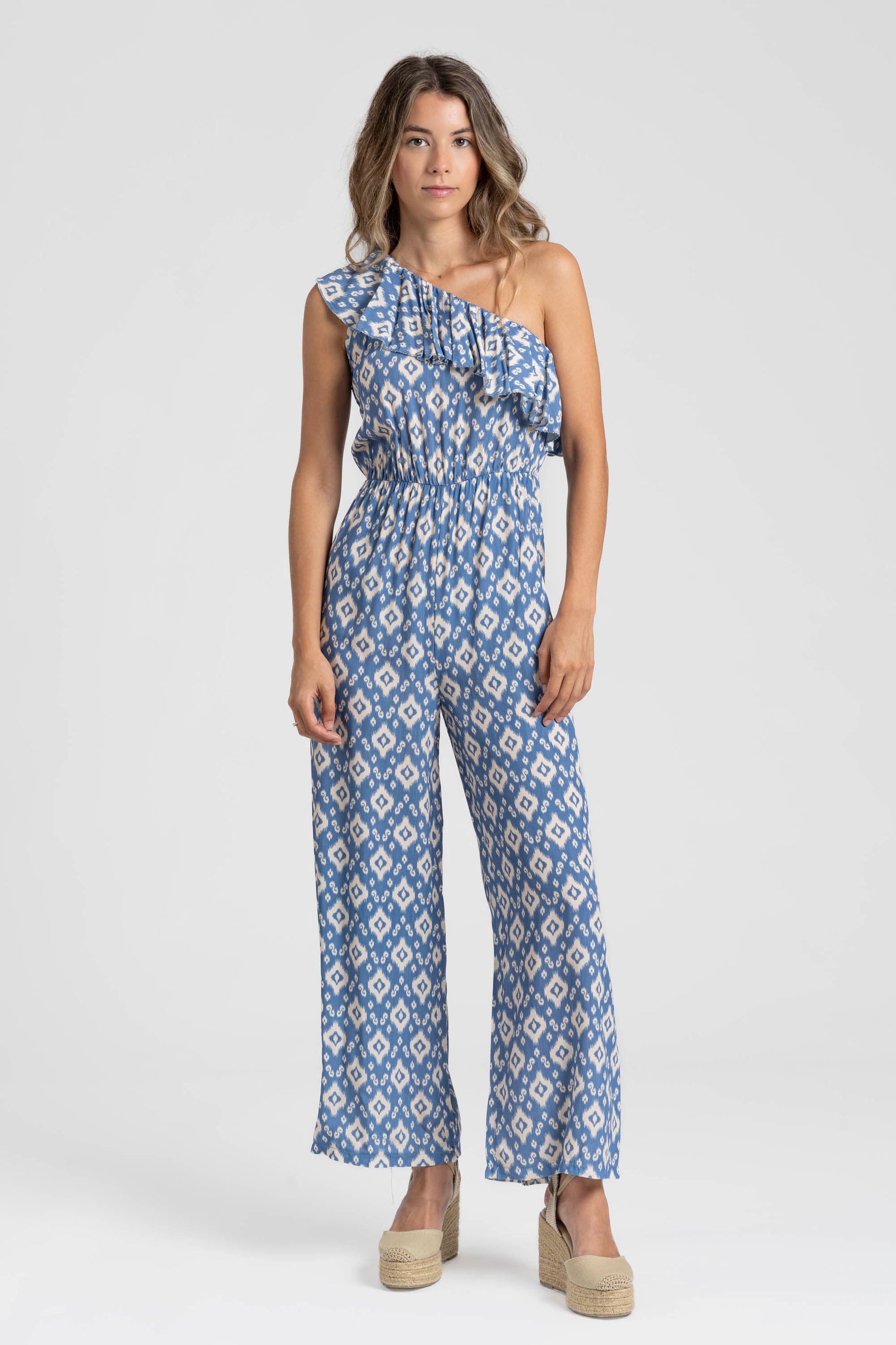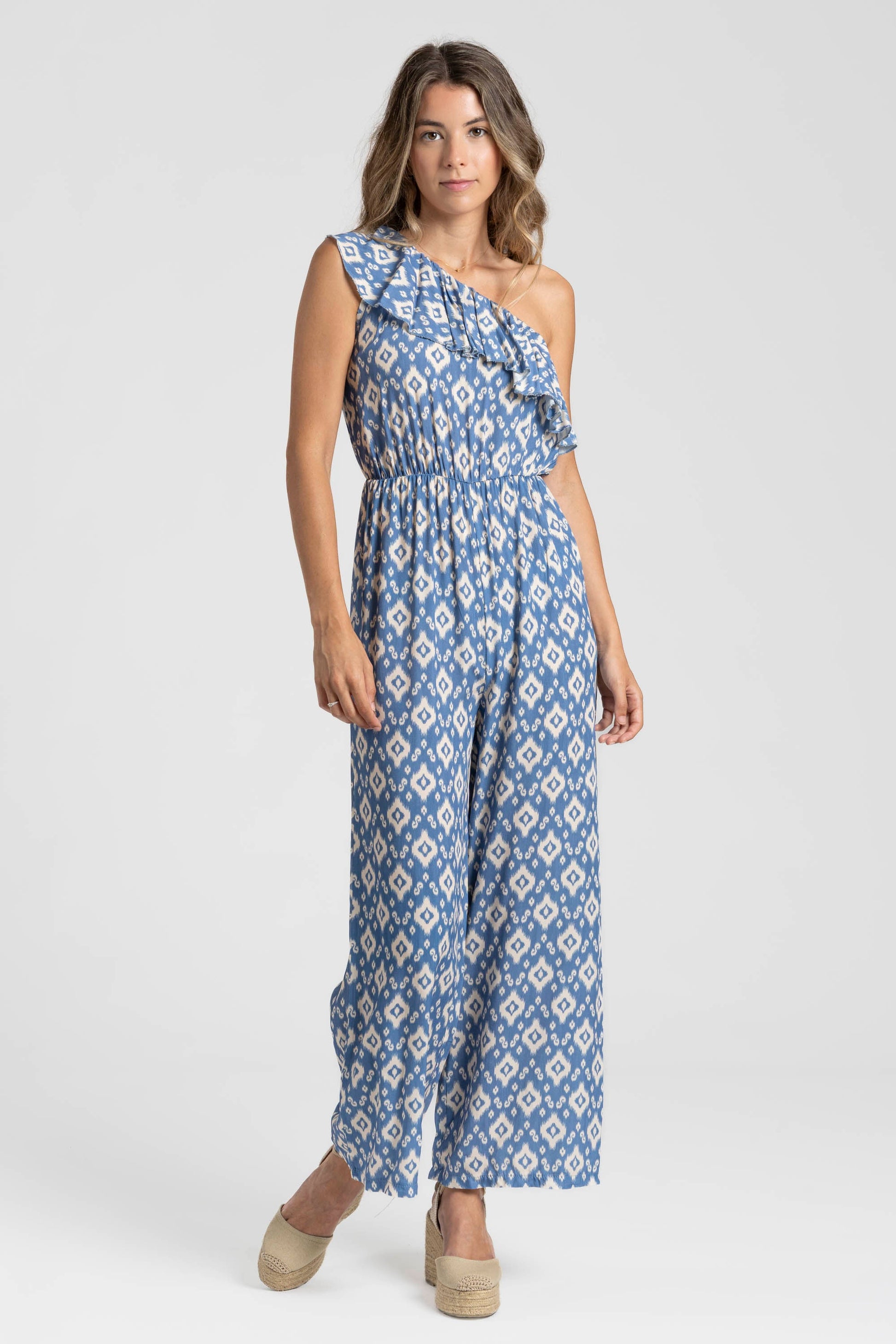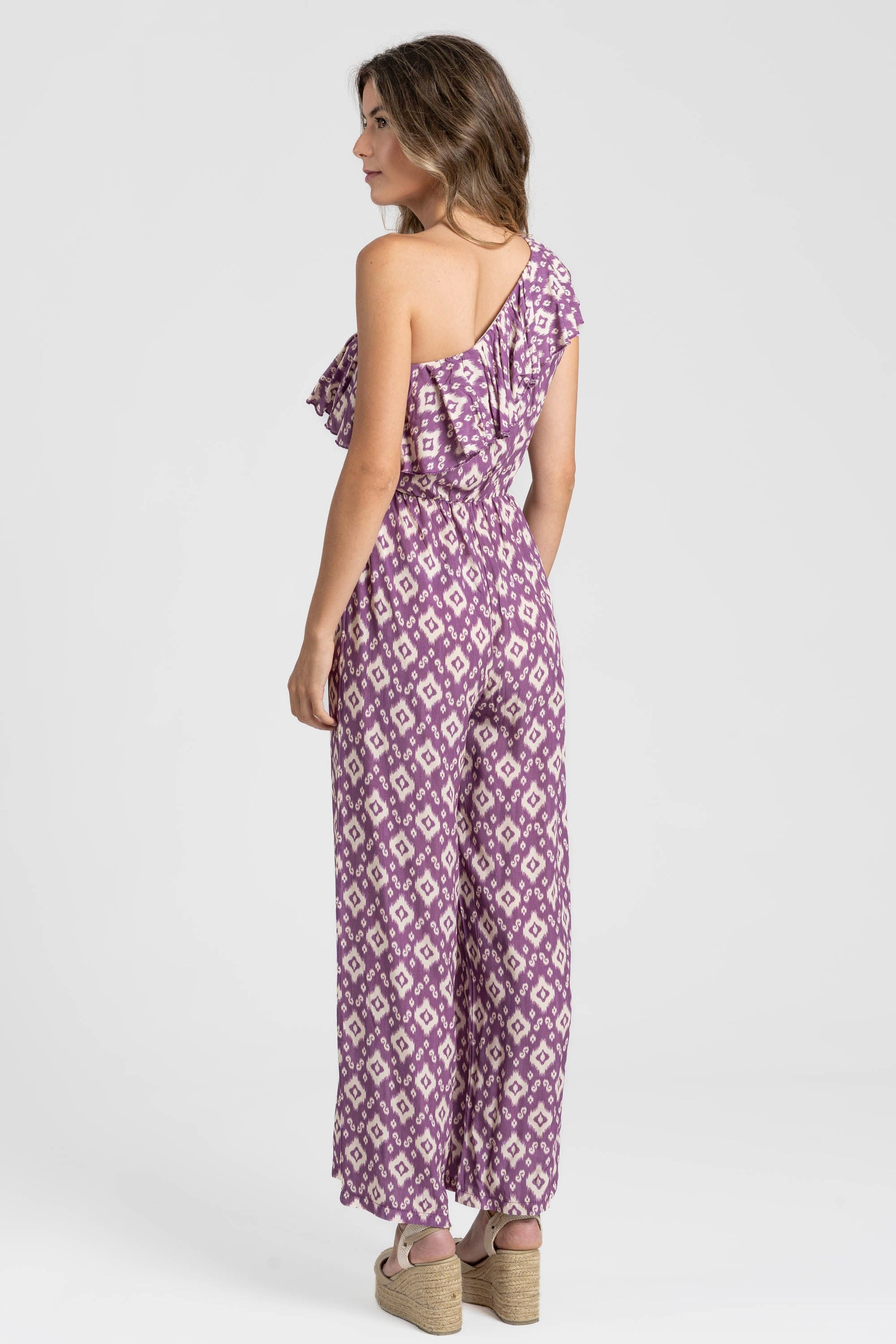 Tejido fluido. Diseño largo. Diseño recto. Escote asimetrico. Detalle volantes. Cinturilla elástica. Talla modelo: S. Altura modelo 1,70 m.