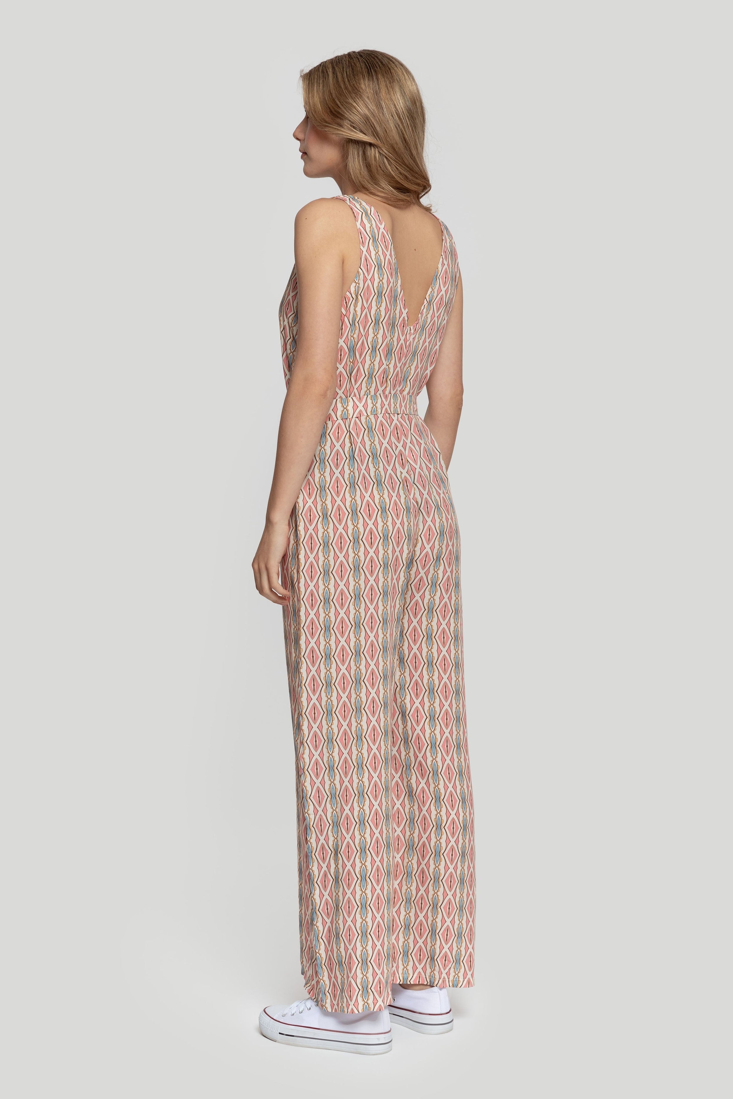 Tejido fluido. Diseño recto. Diseño largo. Diseño estampado. Cuello pico. Escote de pico en la espalda. Tirantes anchos. Cinturón a contraste. Talla modelo: S. Altura modelo: 1,70 m.