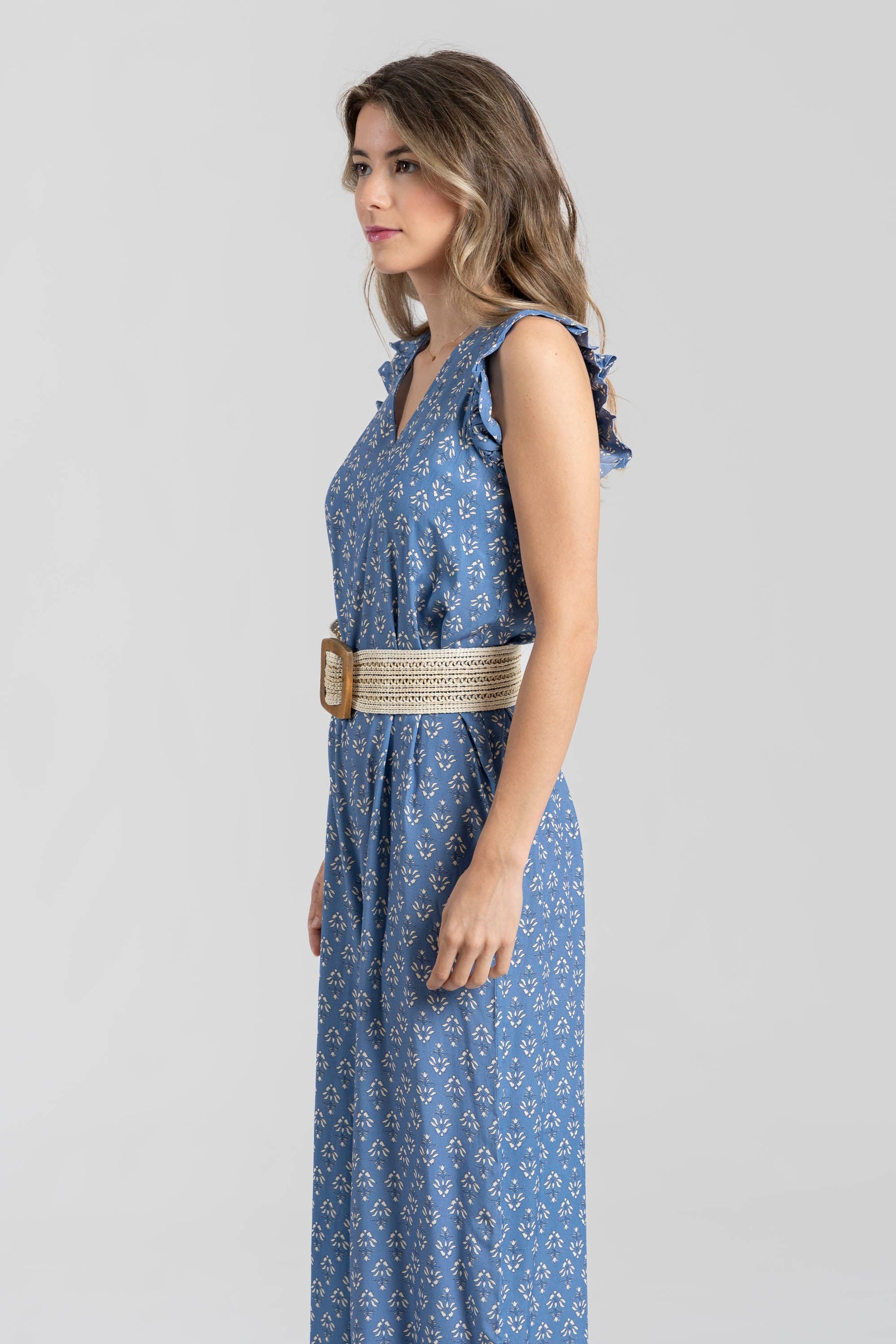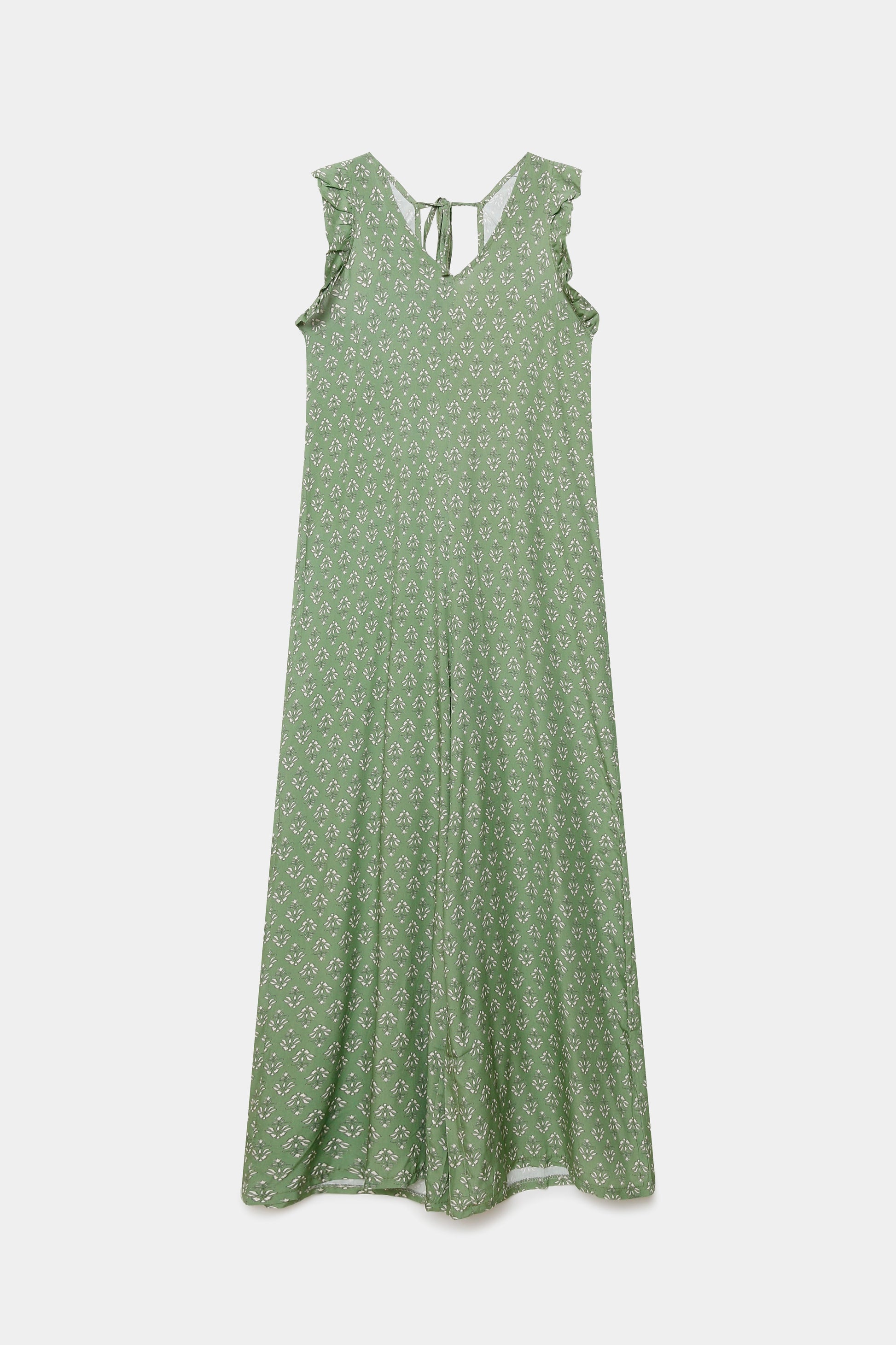 Tejido fluido. Diseño recto. Cuello pico. Sin mangas. Tirante en la espalda. Talla modelo: S. Altura modelo 1,70 m.