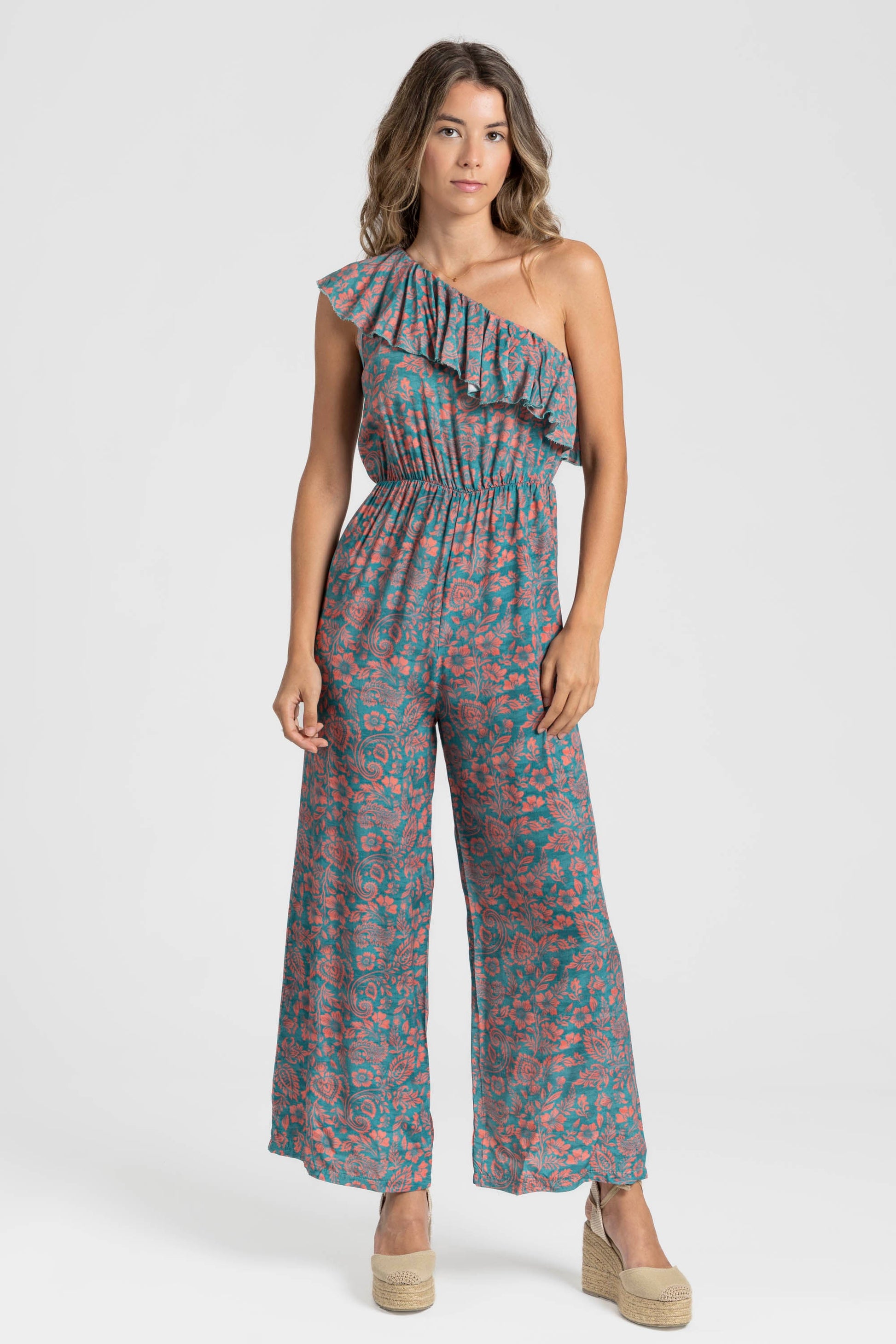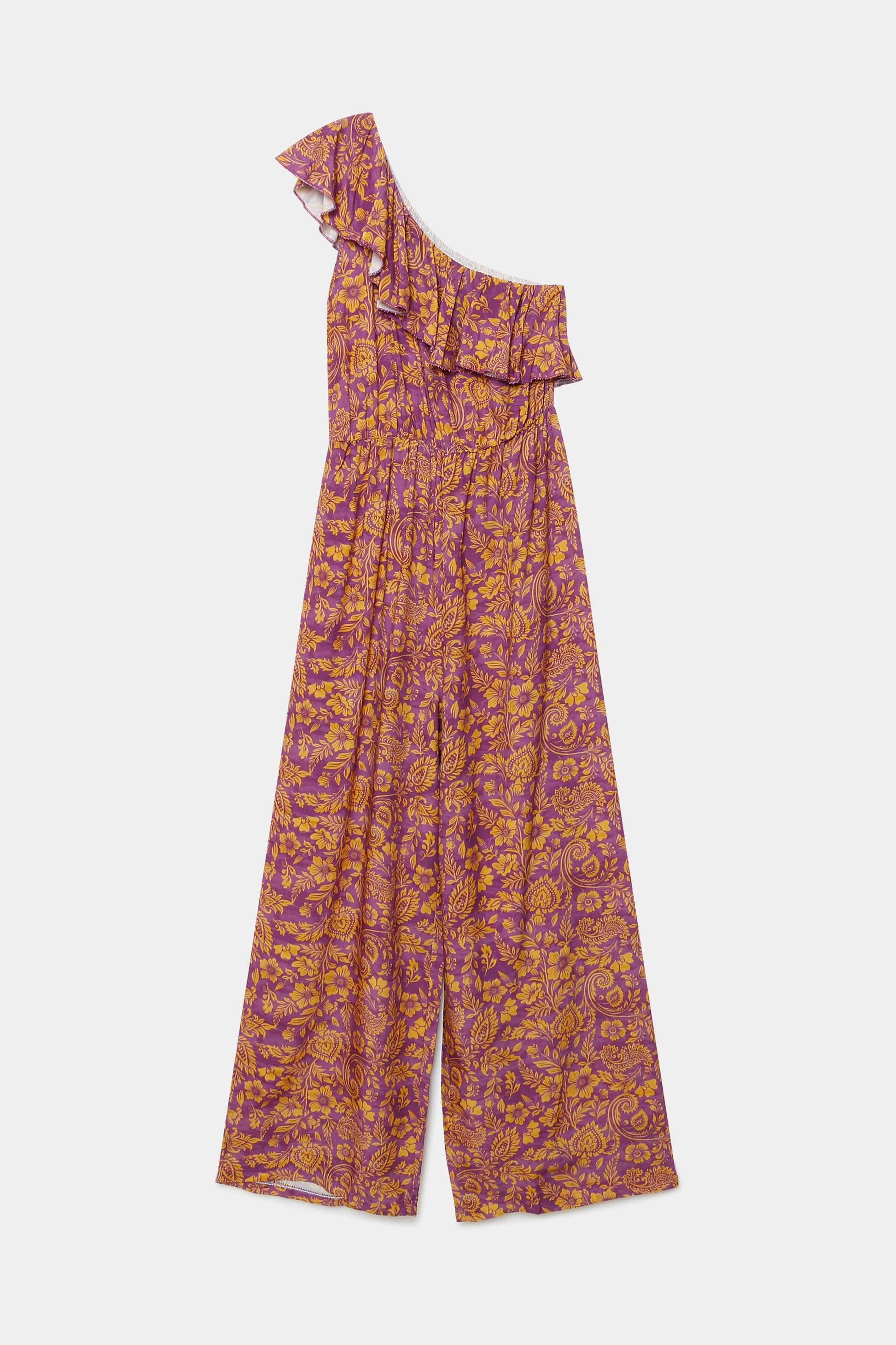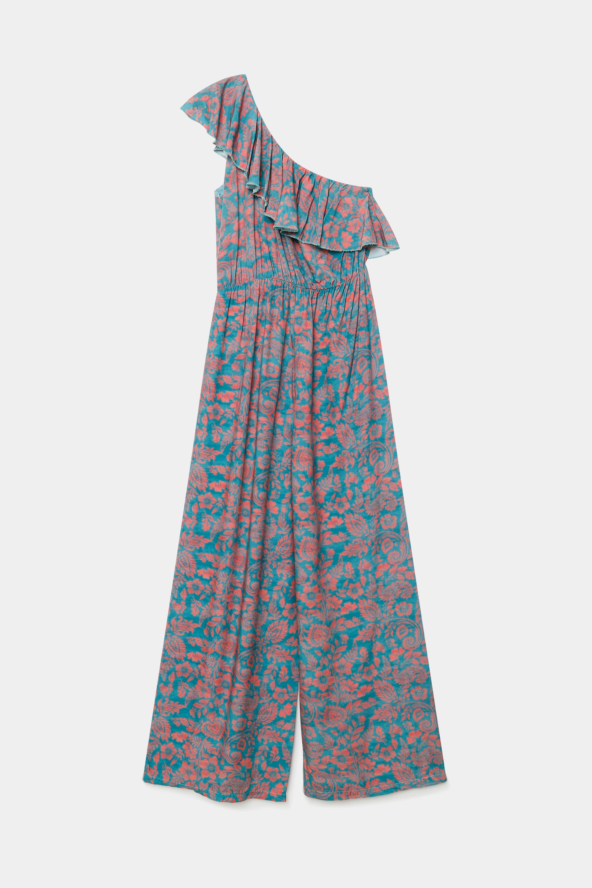 Tejido fluido. Diseño largo. Diseño recto. Escote asimétrico. Detalle volantes. Cinturilla elástica. Talla modelo: S. Altura modelo 1,70 m.