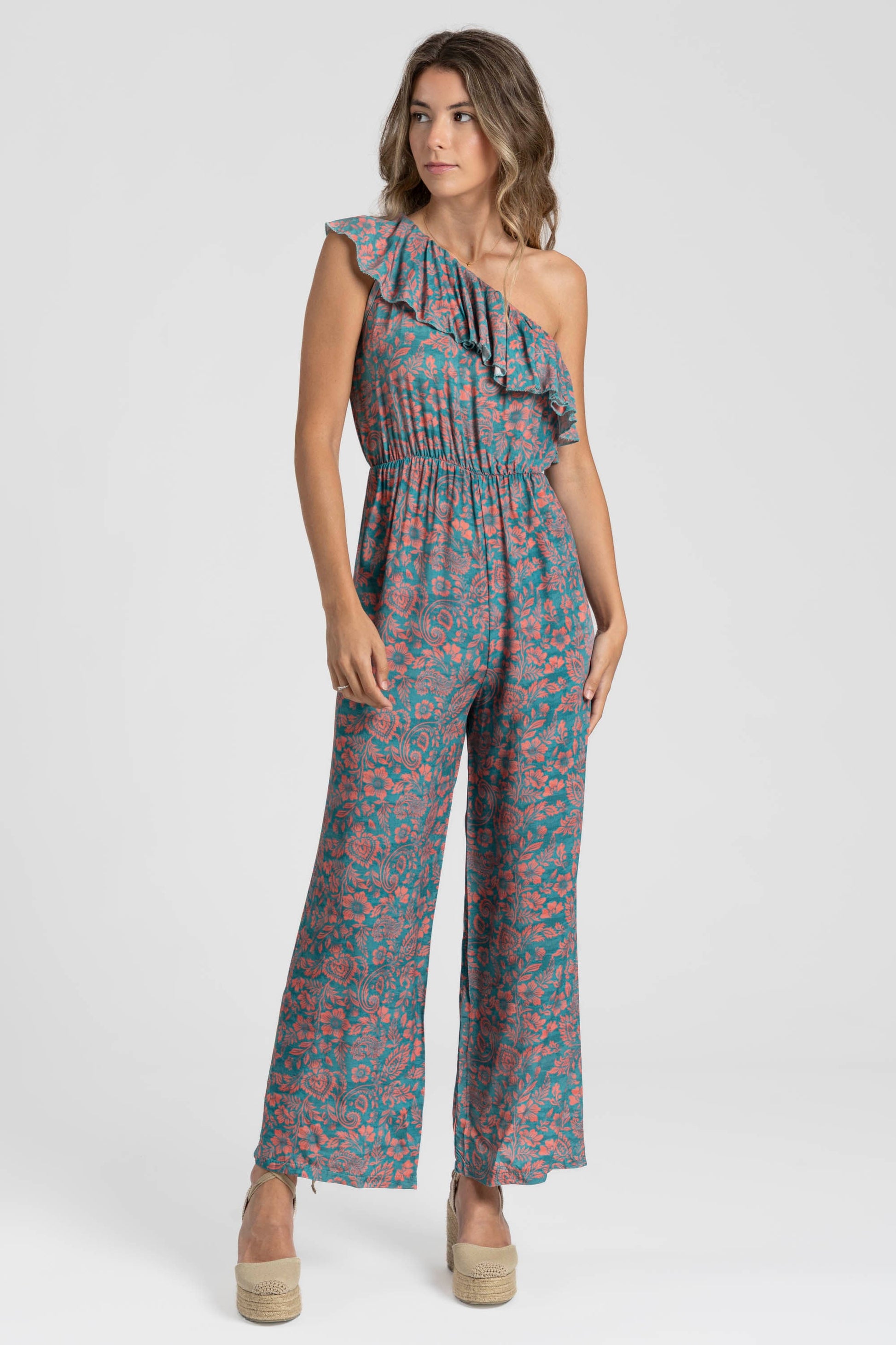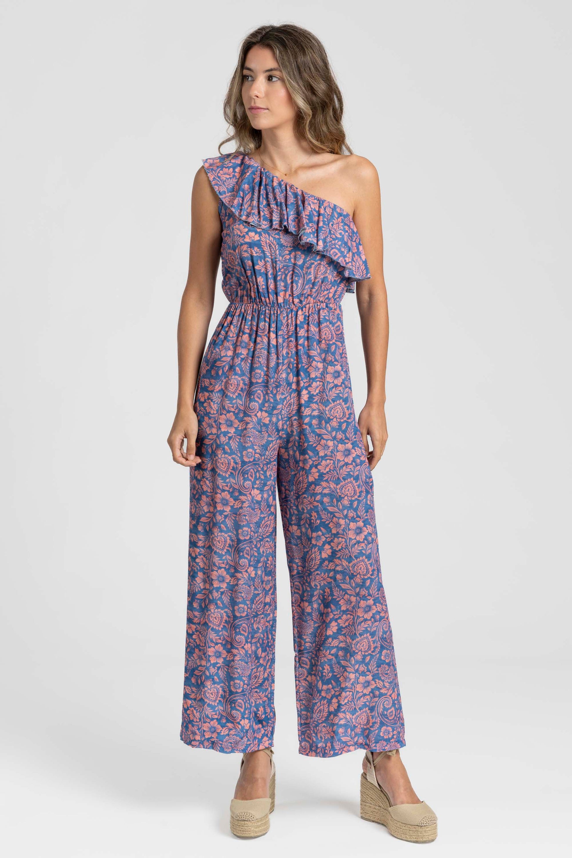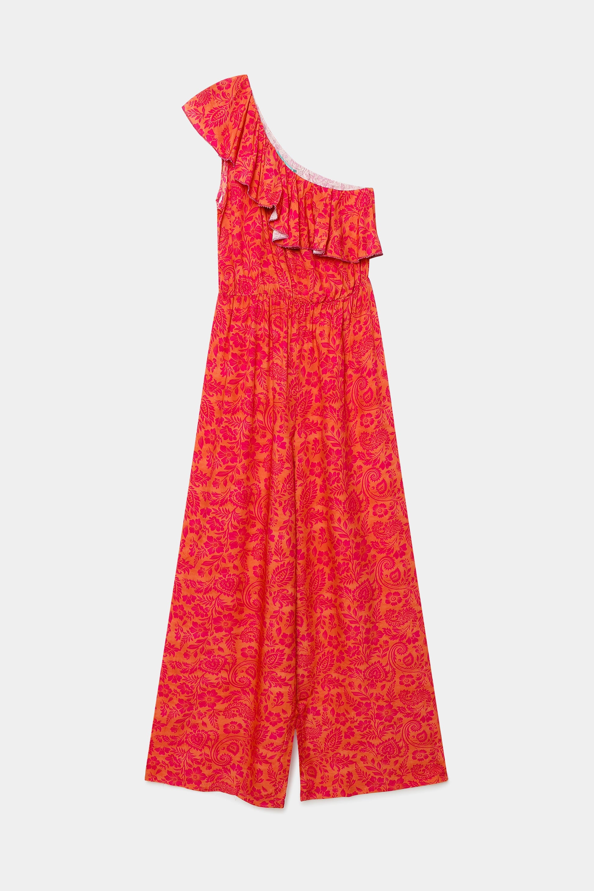 Tejido fluido. Diseño largo. Diseño recto. Escote asimétrico. Detalle volantes. Cinturilla elástica. Talla modelo: S. Altura modelo 1,70 m.