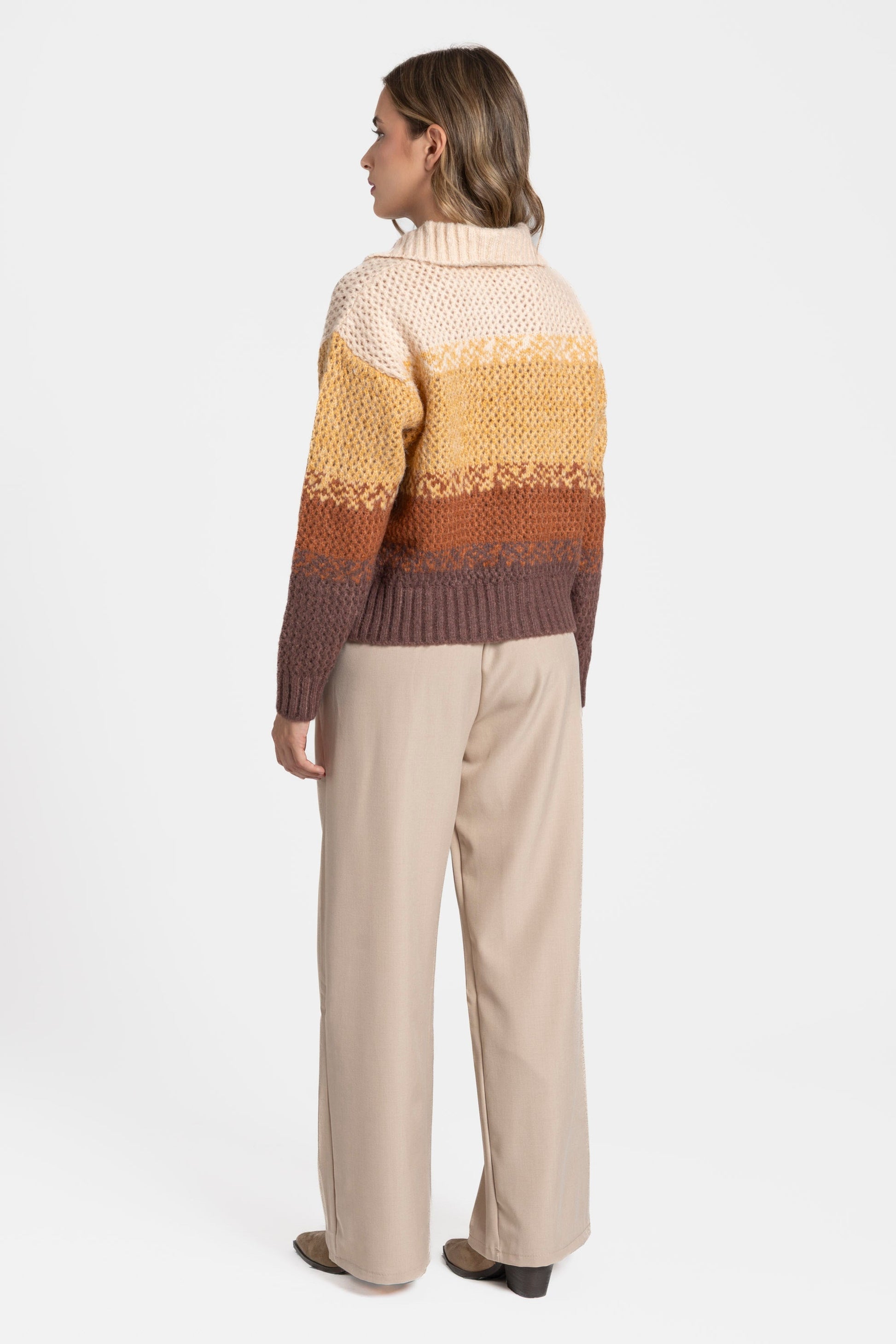 Tejido fluido. Cintura elástica. Tiro alto. Bolsillos laterales. Pernera ancha. Tablillas.
