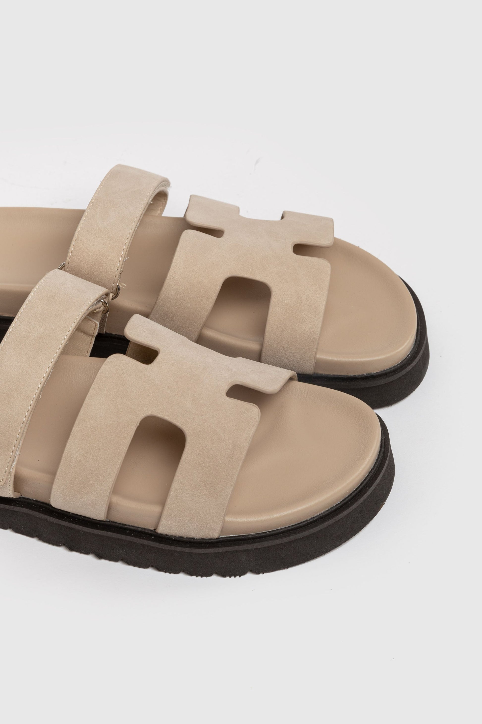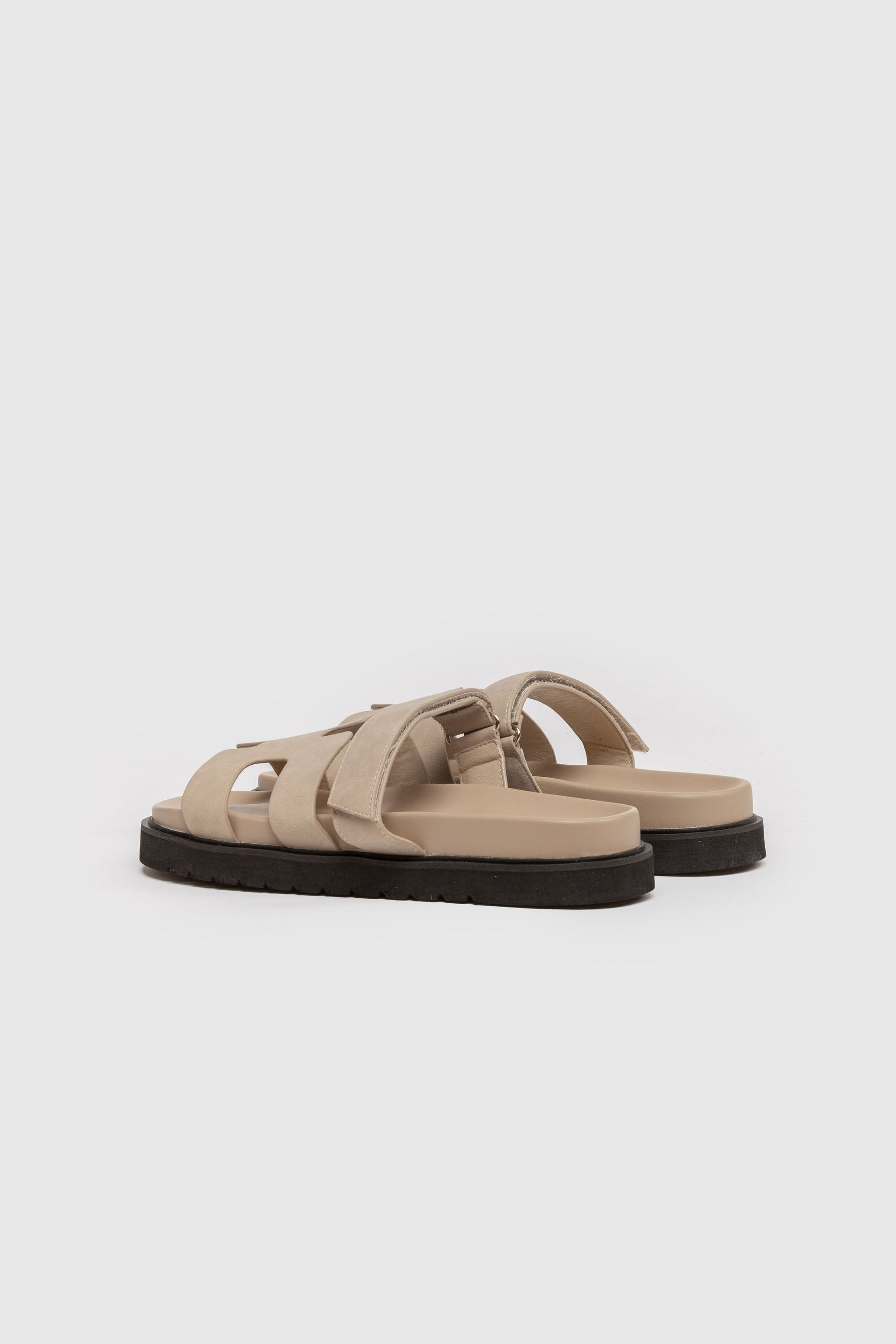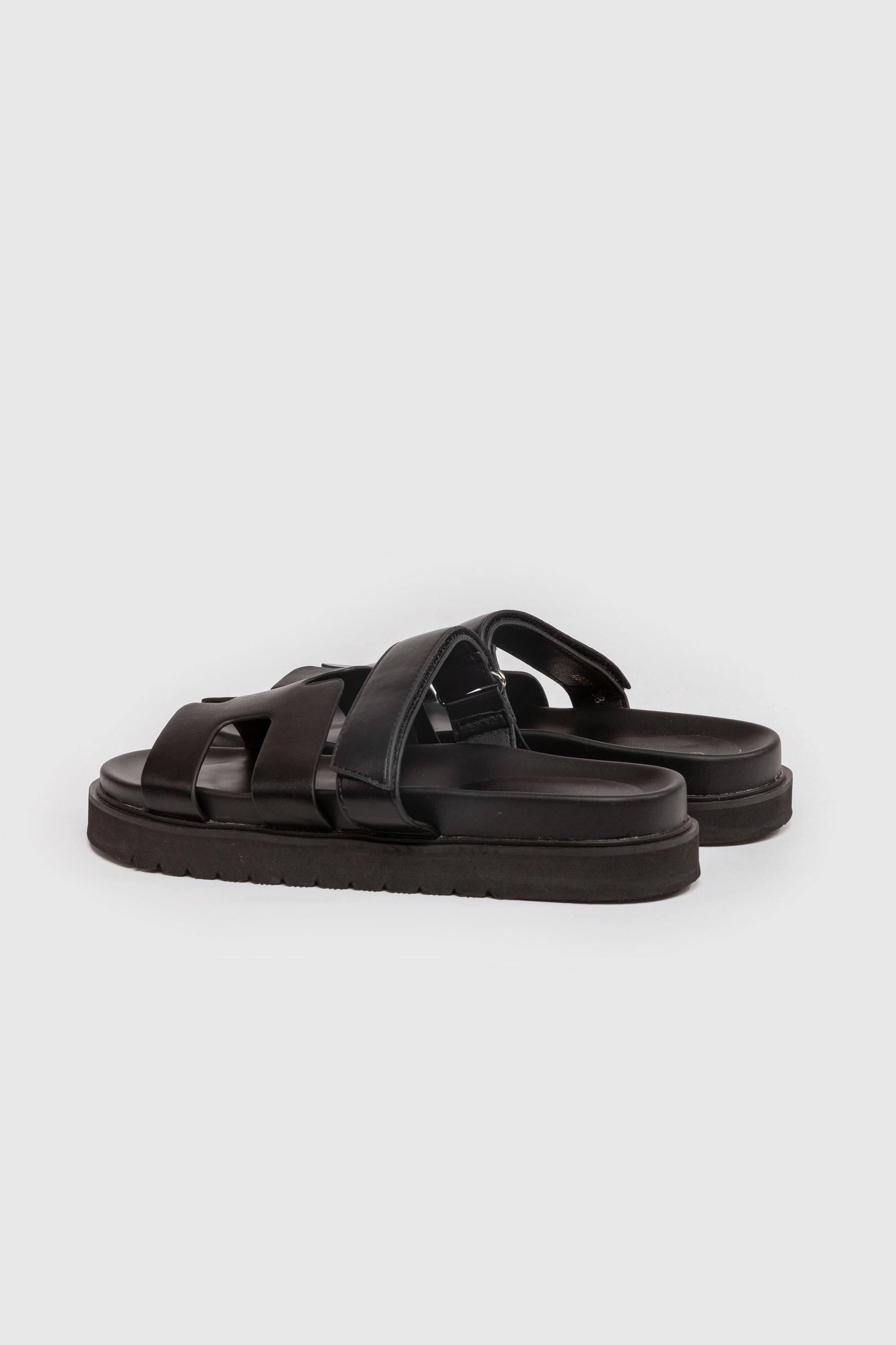 Zapato tipo sandalias. Tejido de goma. Cierre de velcro. Diseño de tiras. Suela caucho. Suela plana y antideslizante.