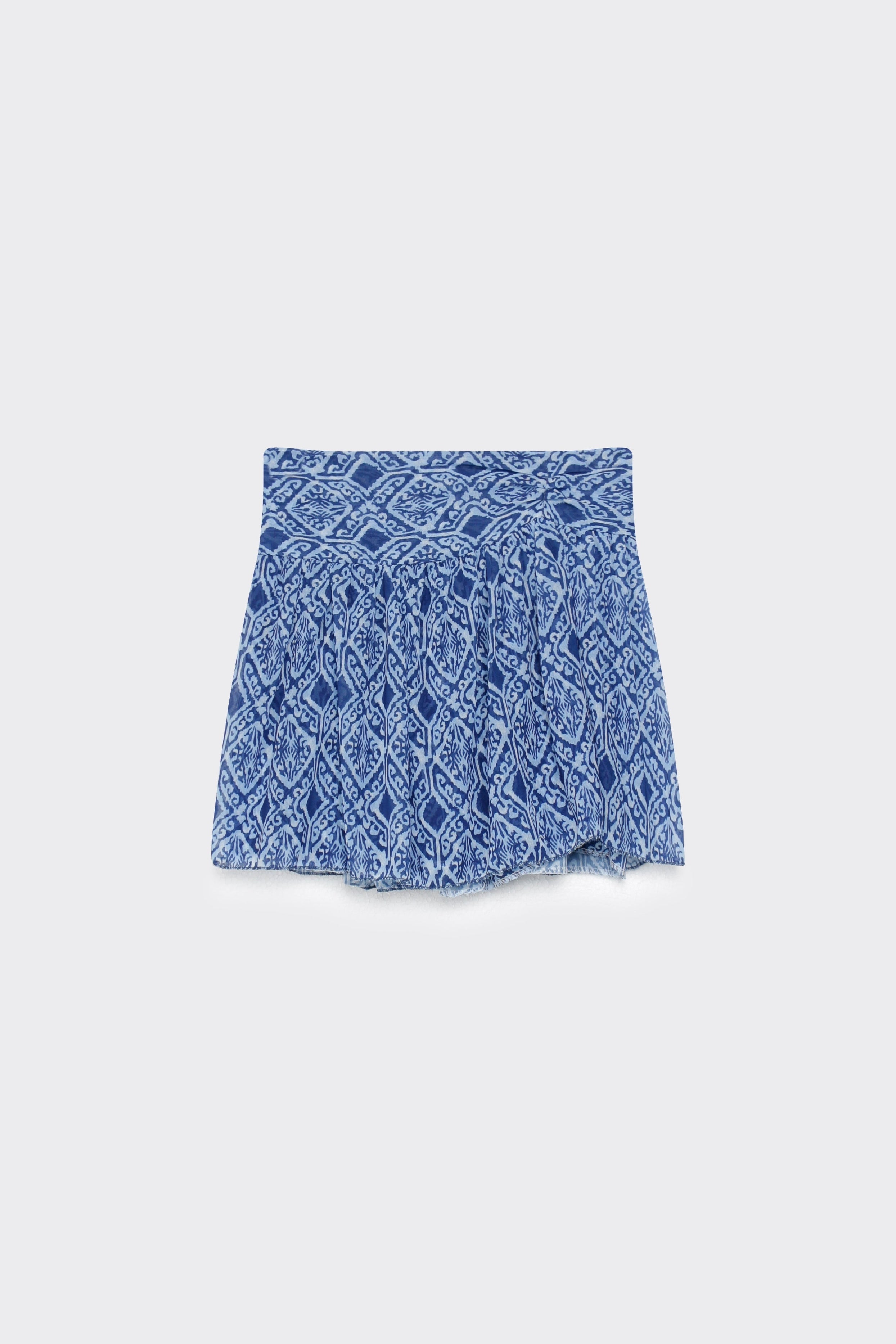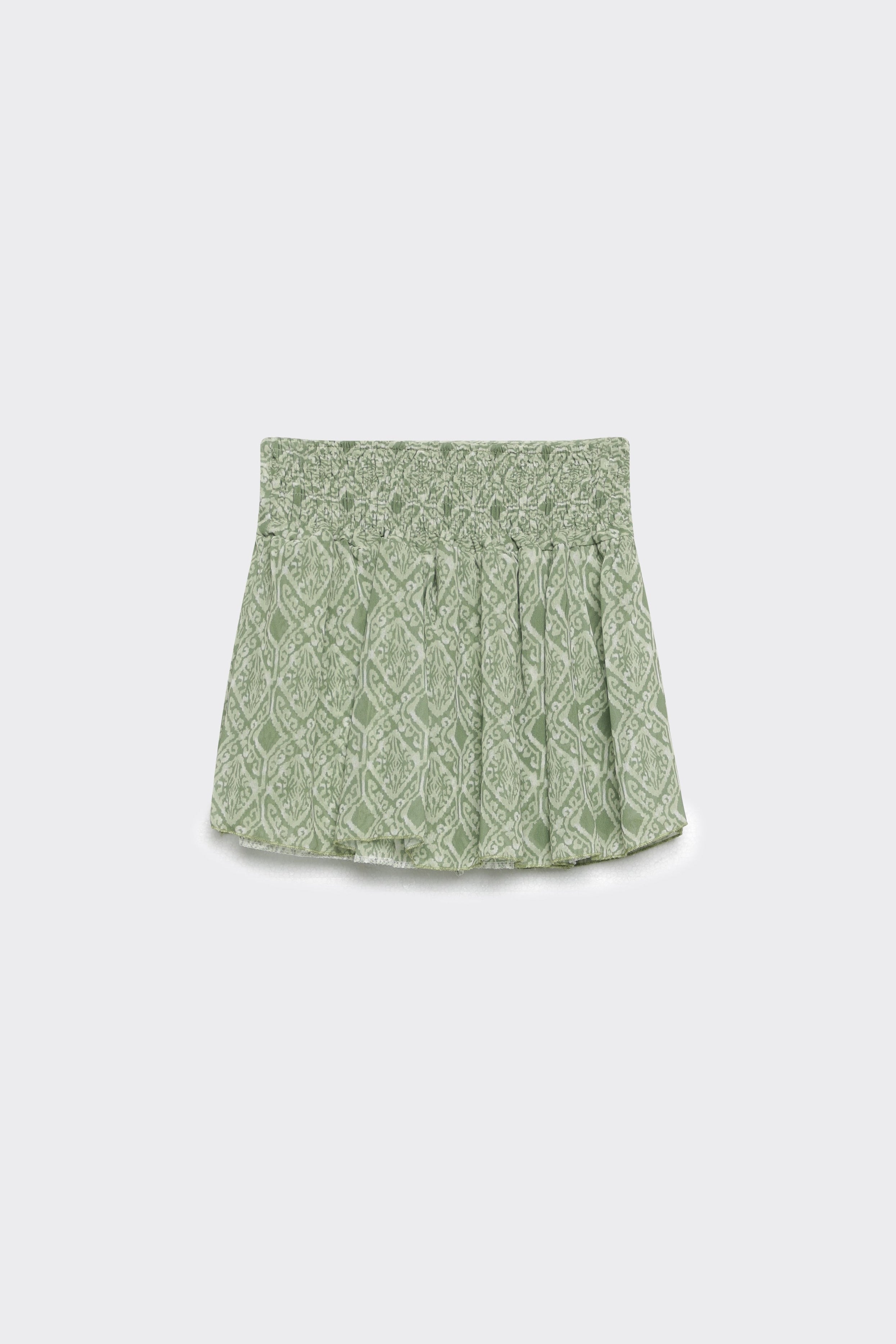 Shorts estampado. Tejido gasa. Diseño corto. Estilo falda pantalón. Tiro medio. Cintura elástica. Talla modelo: S. Altura modelo: 1,70 m.