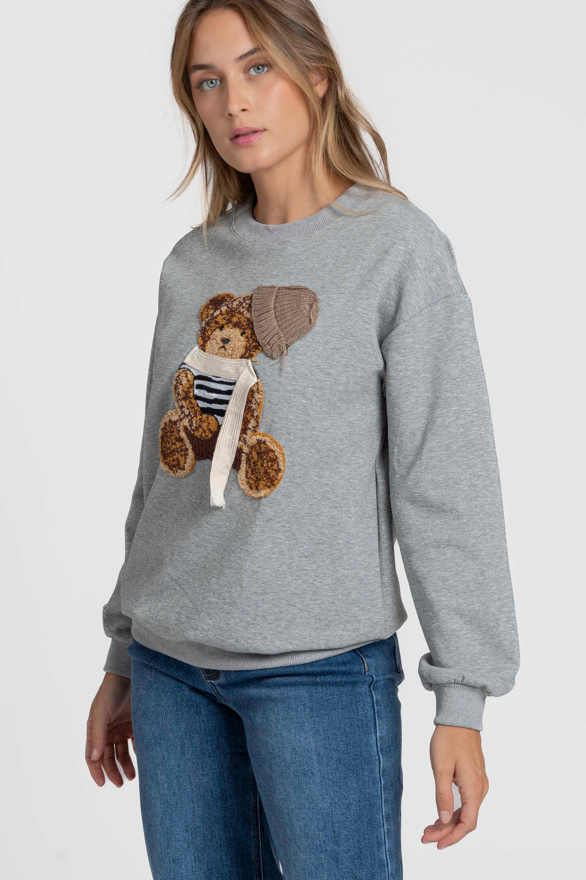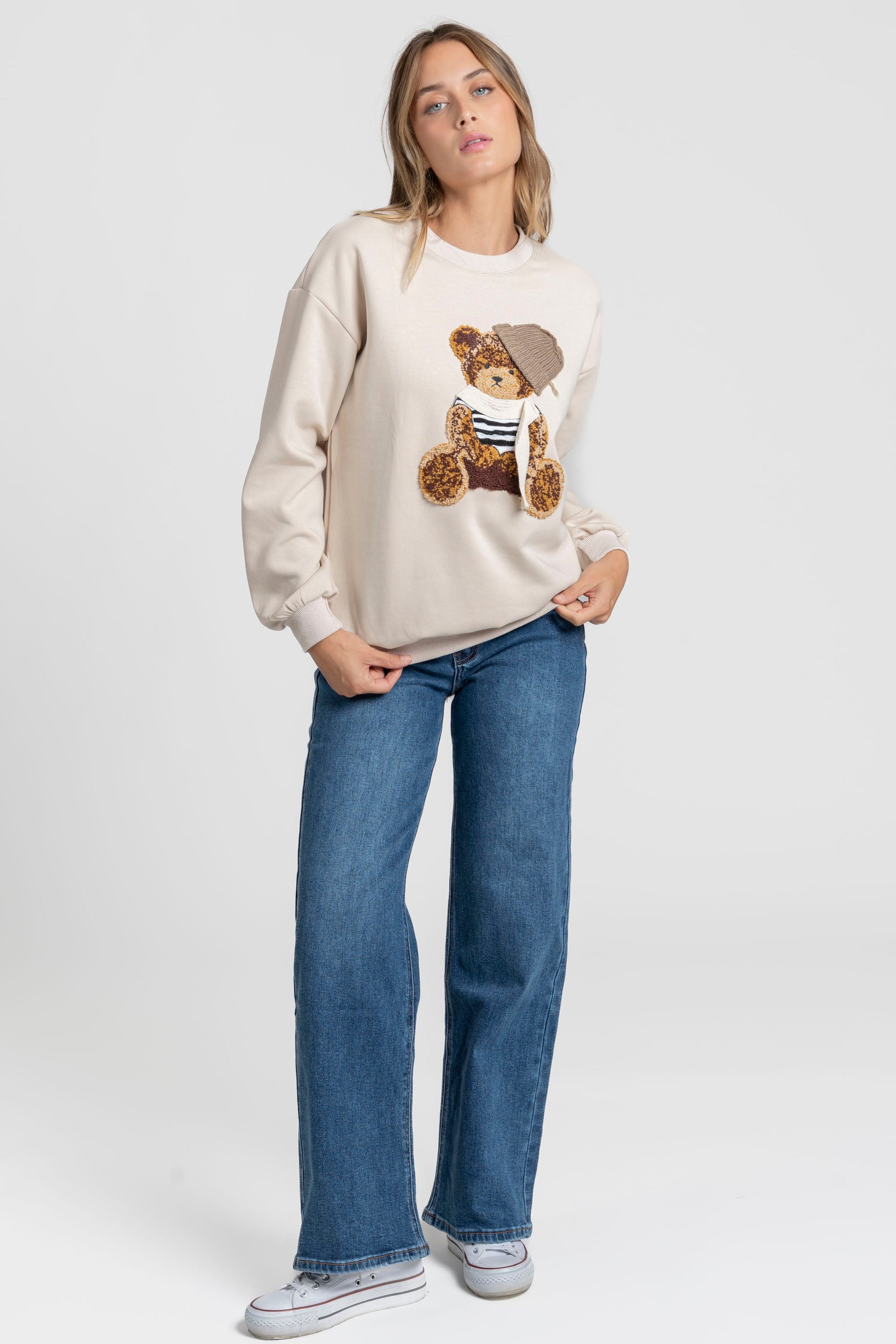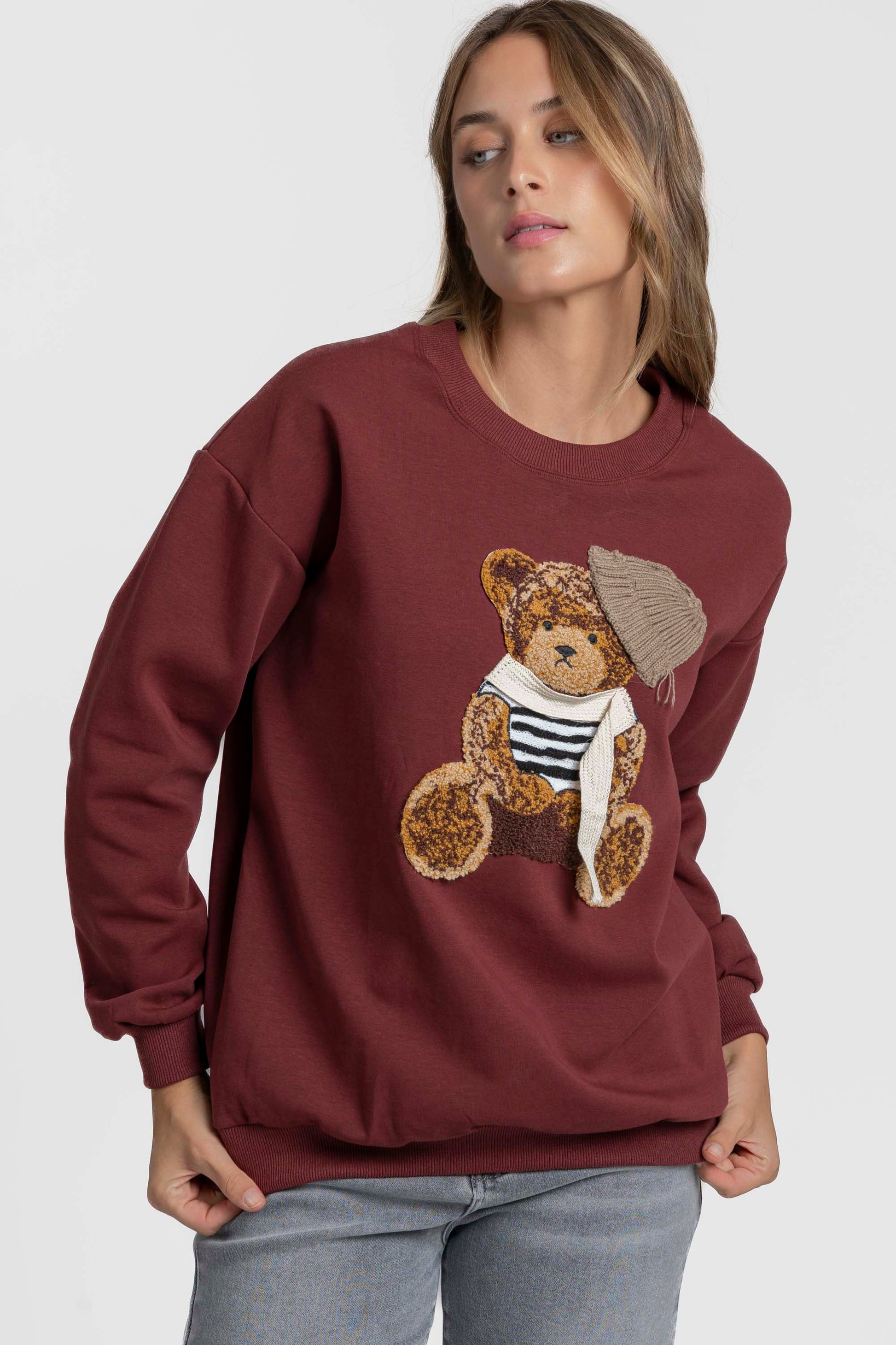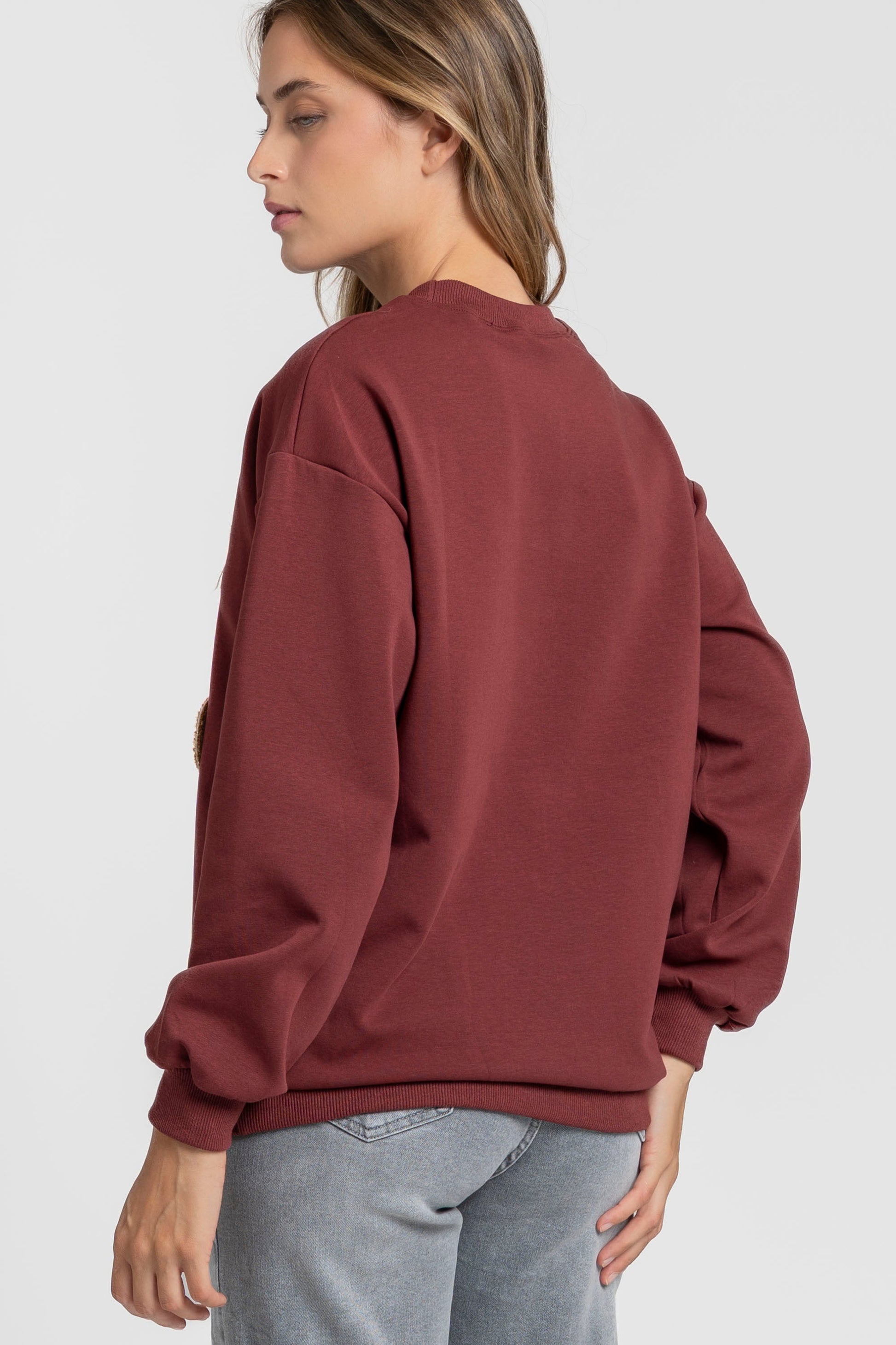 Tejido mezcla algodón. Cuello redondo. Manga larga. Diseño oversize.