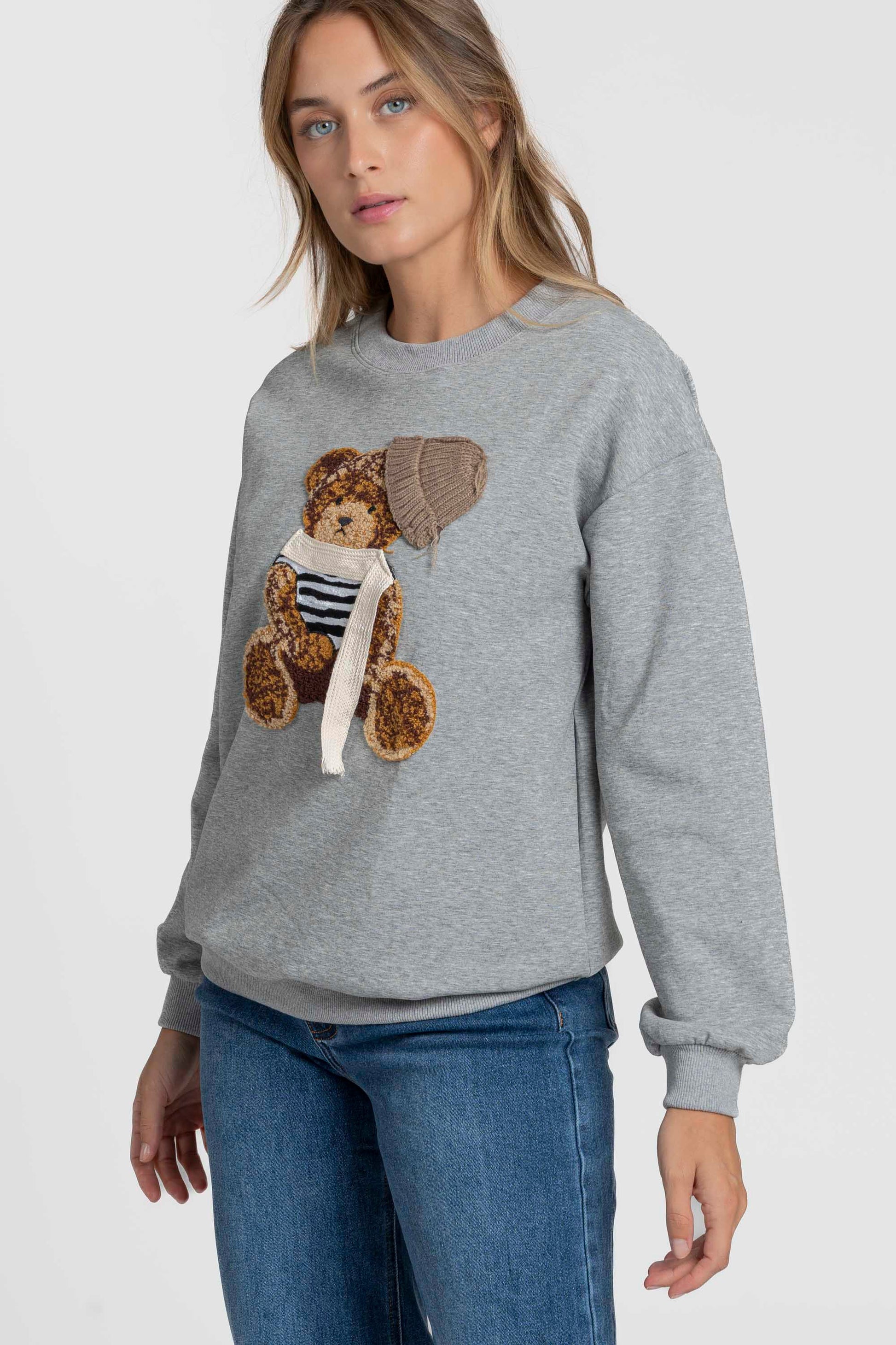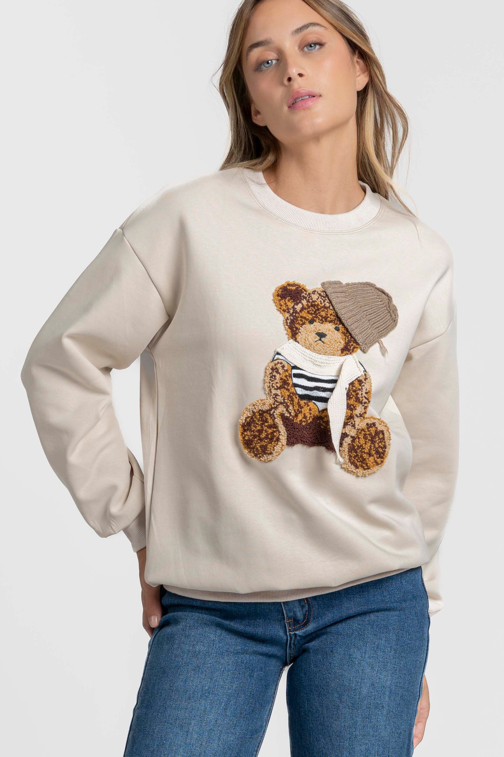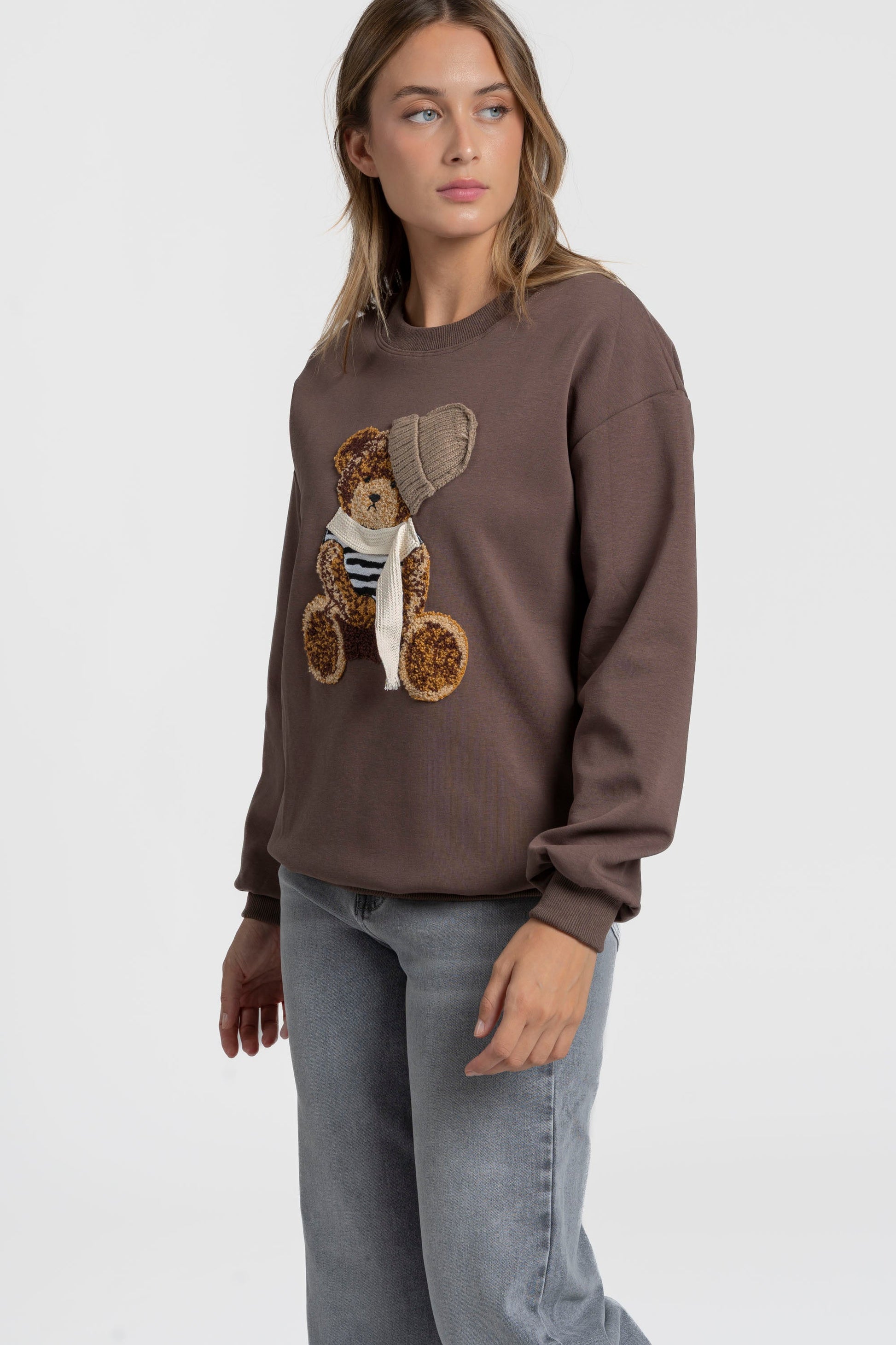 Tejido mezcla algodón. Cuello redondo. Manga larga. Diseño oversize.