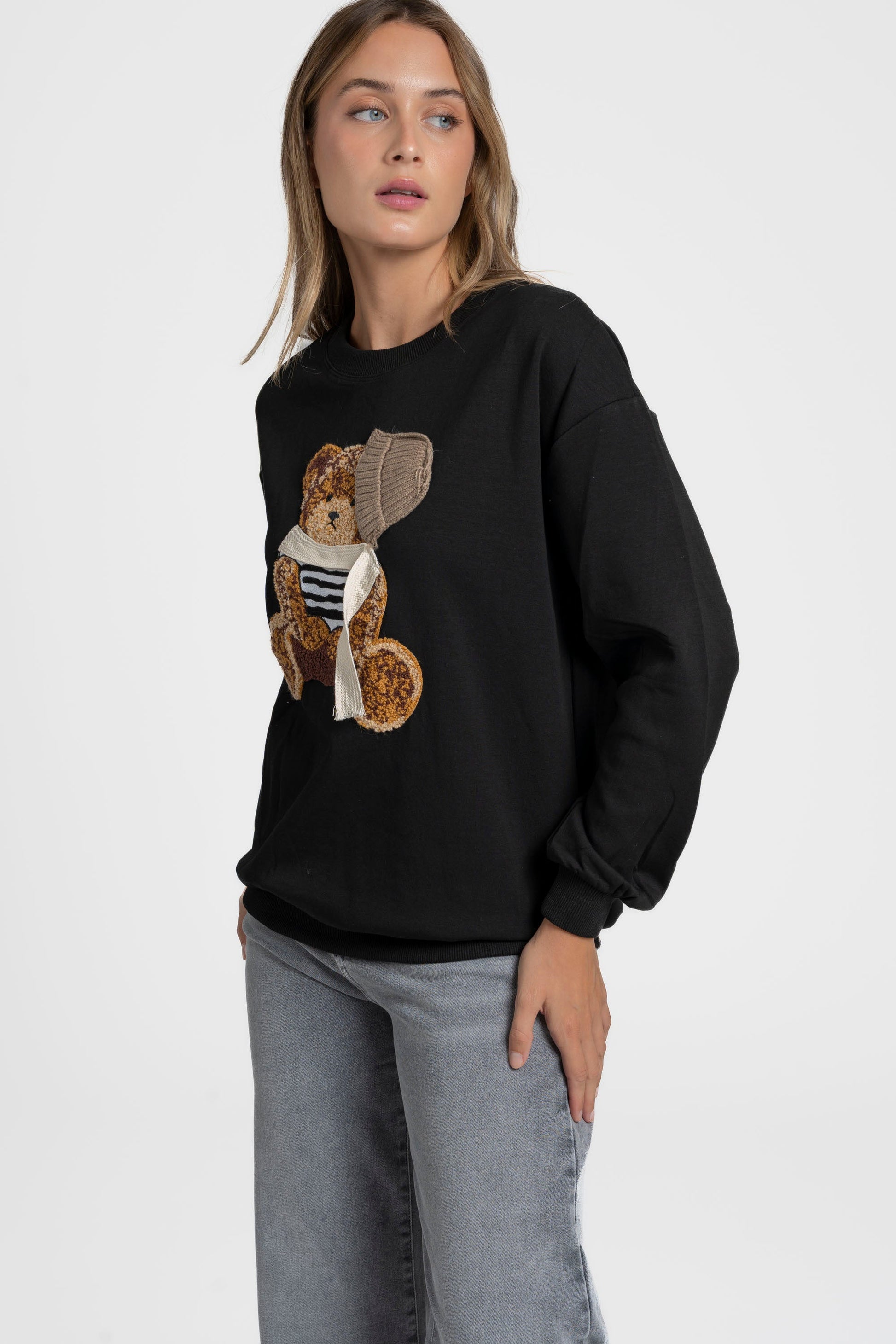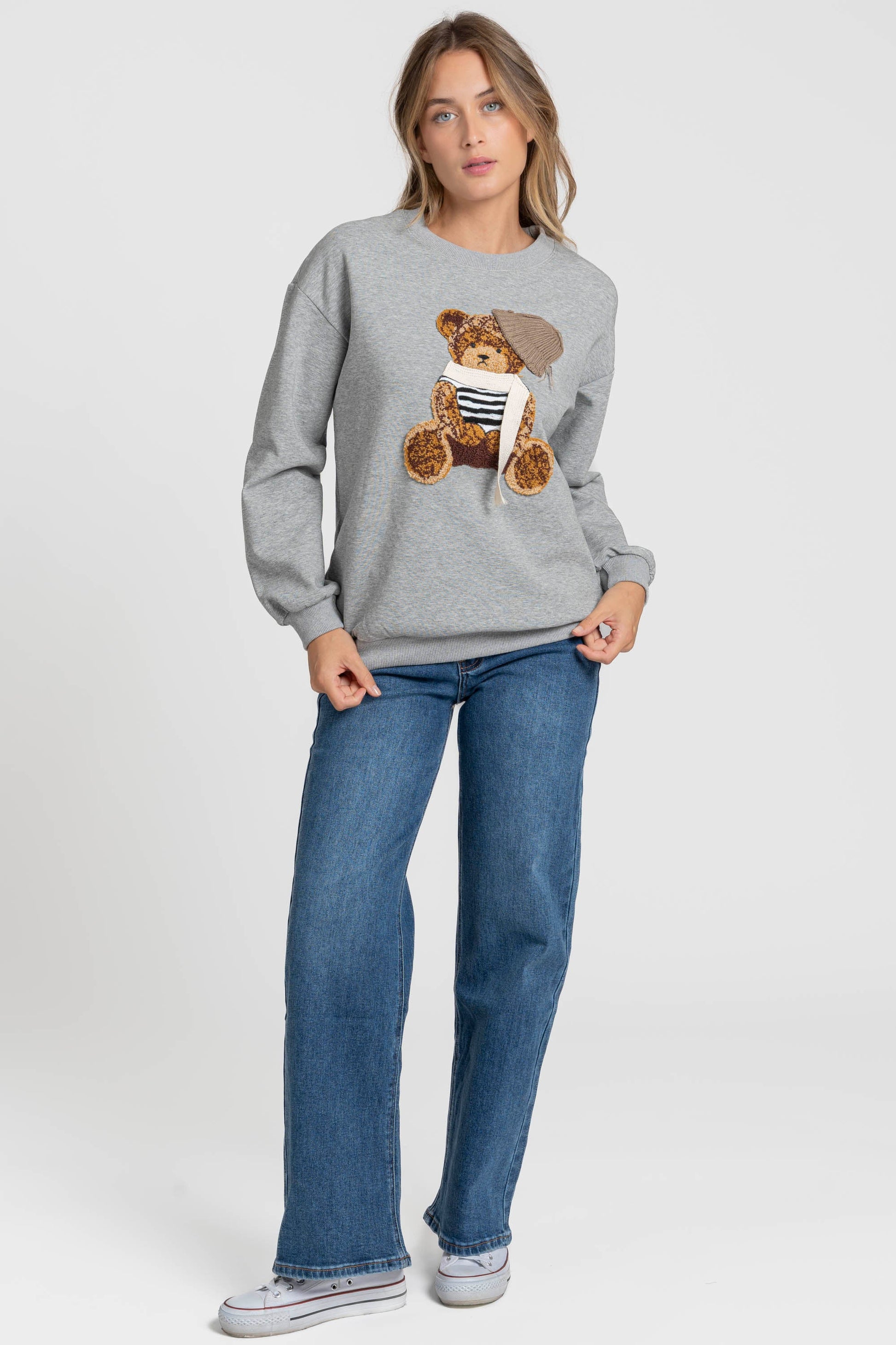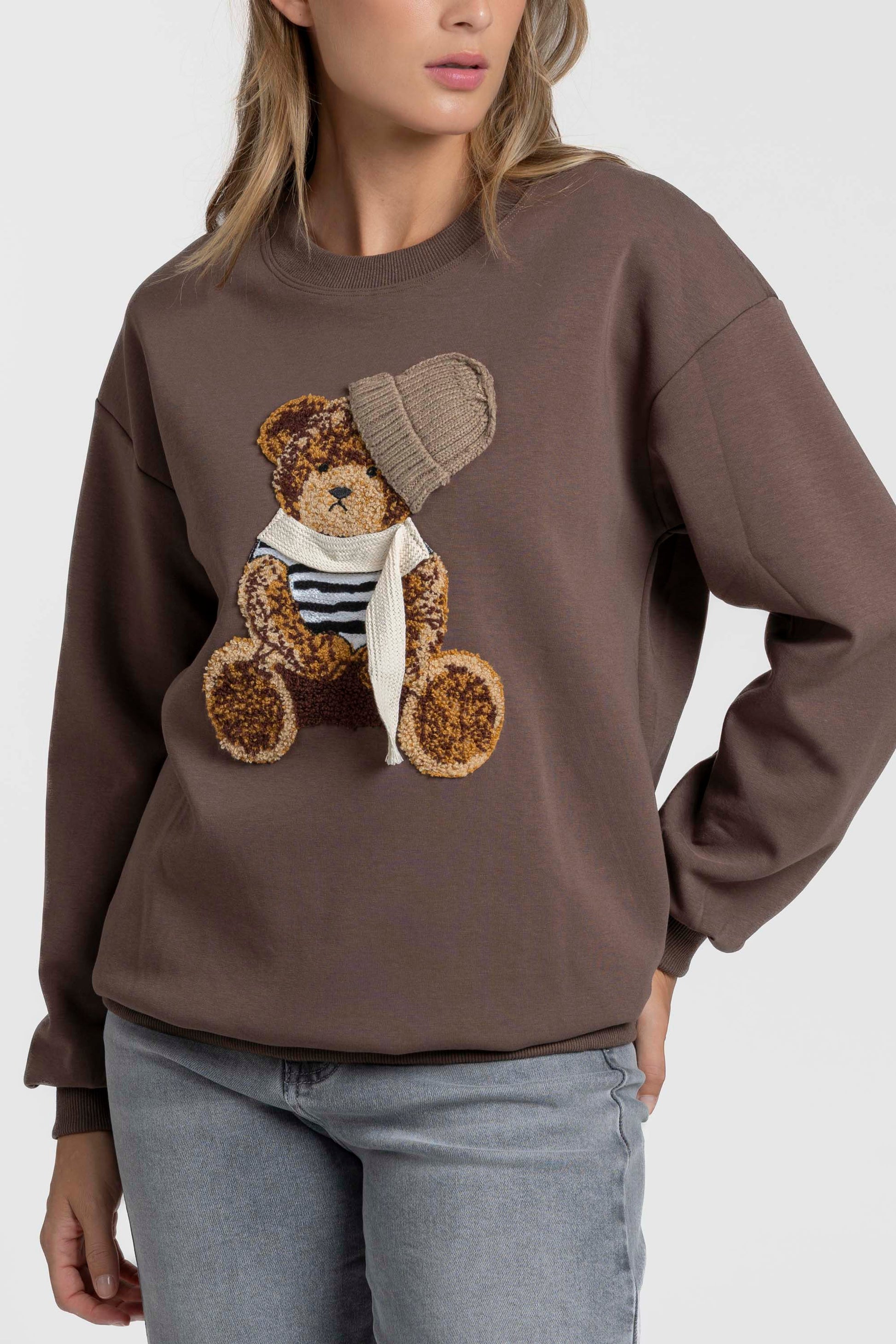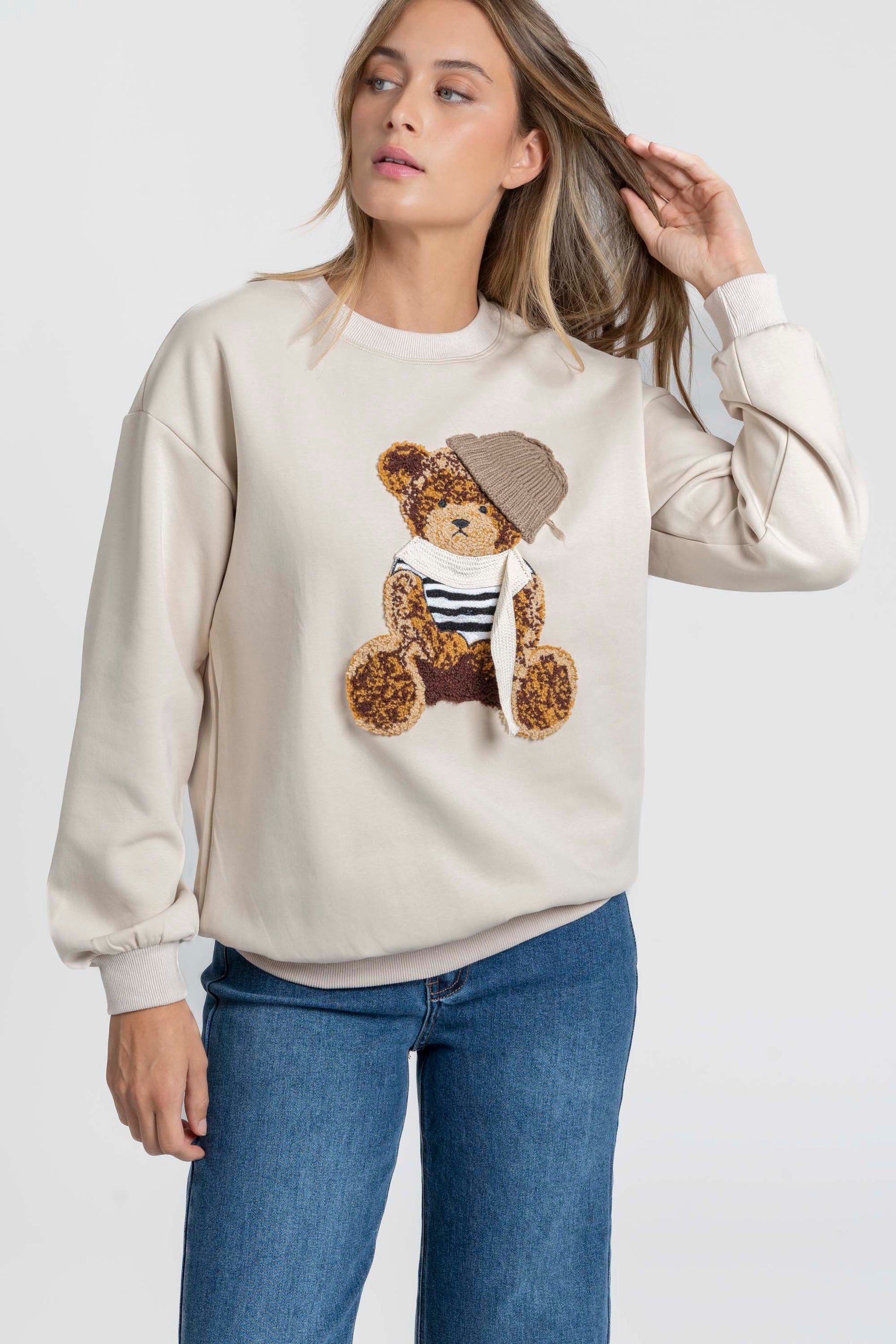 Tejido mezcla algodón. Cuello redondo. Manga larga. Diseño oversize.