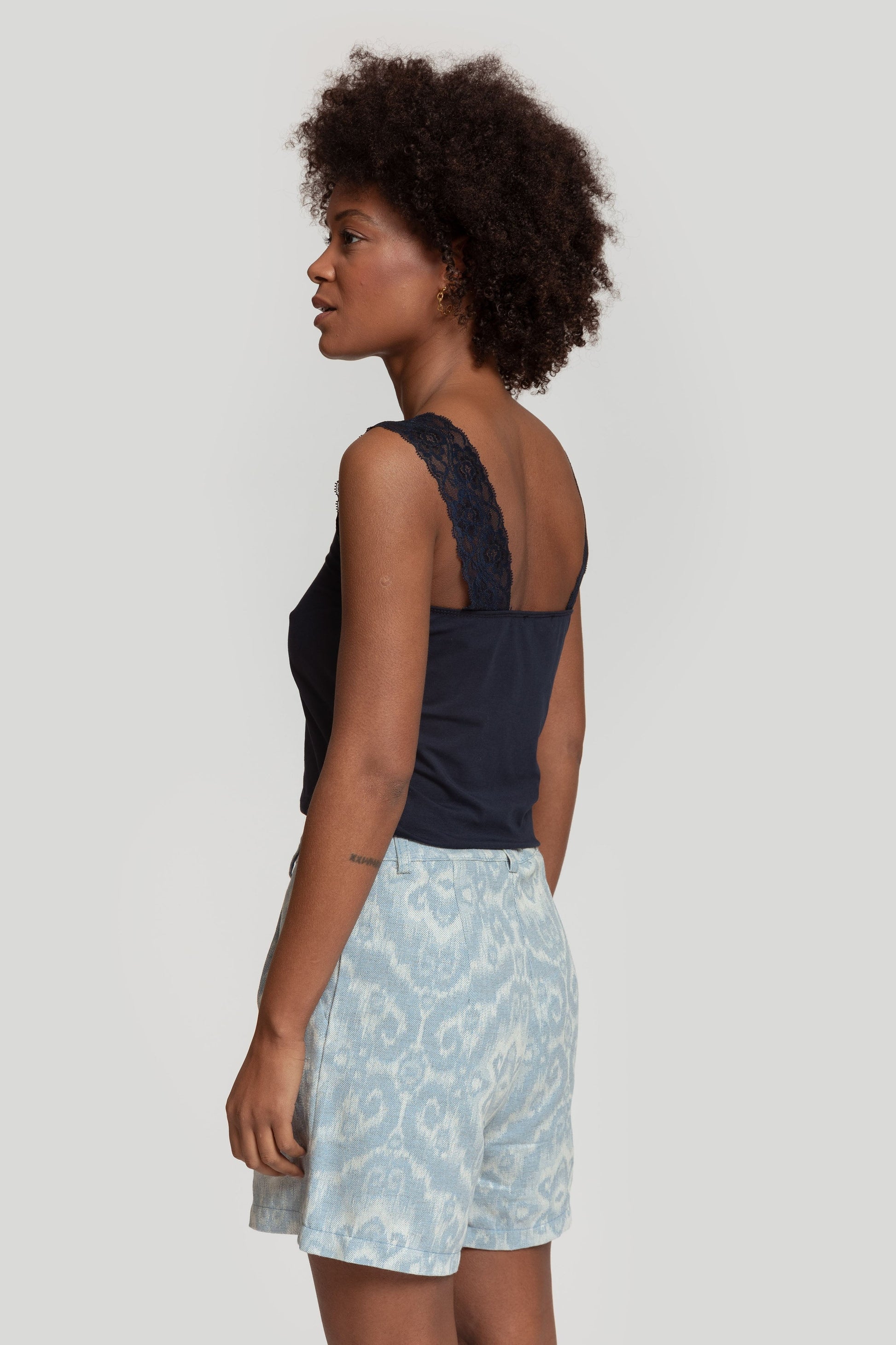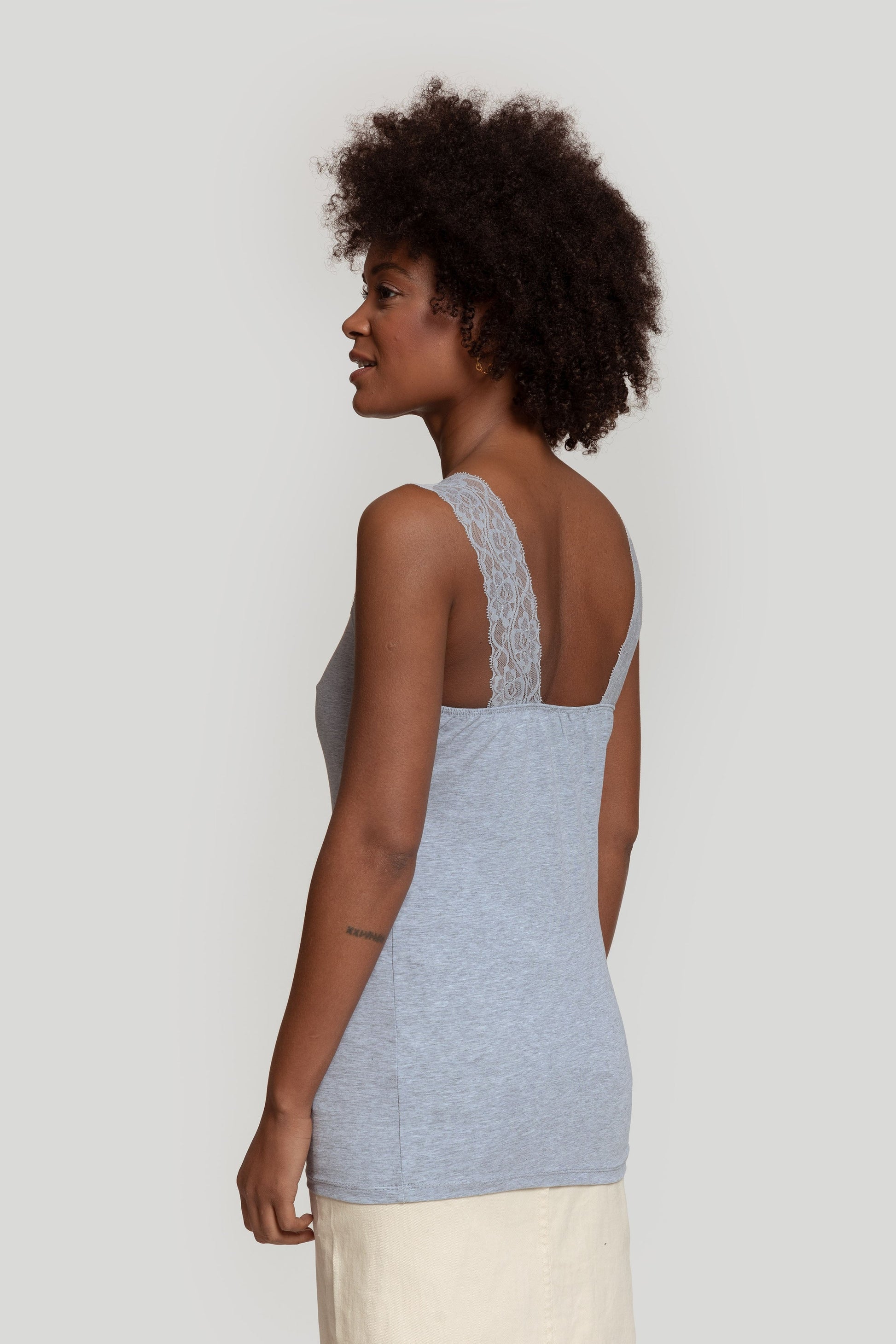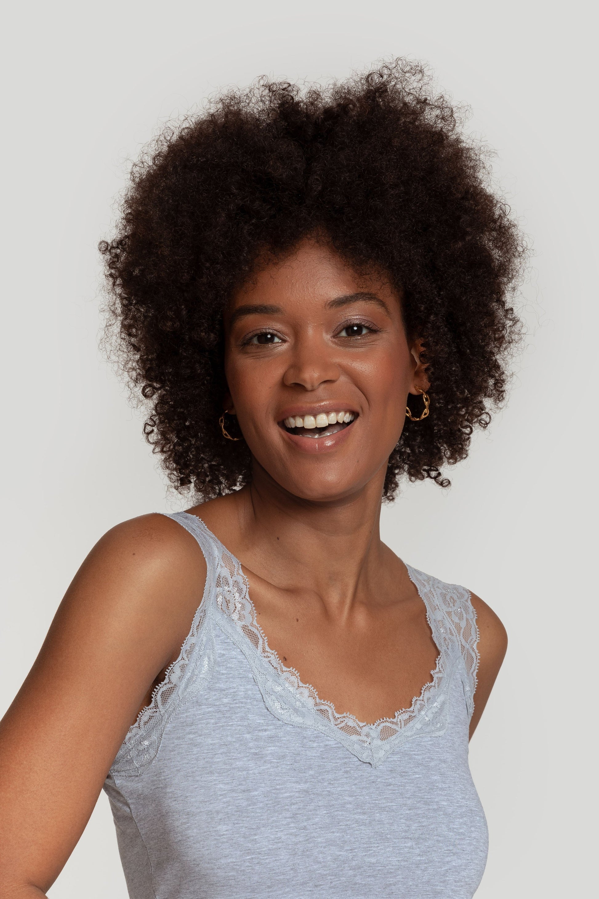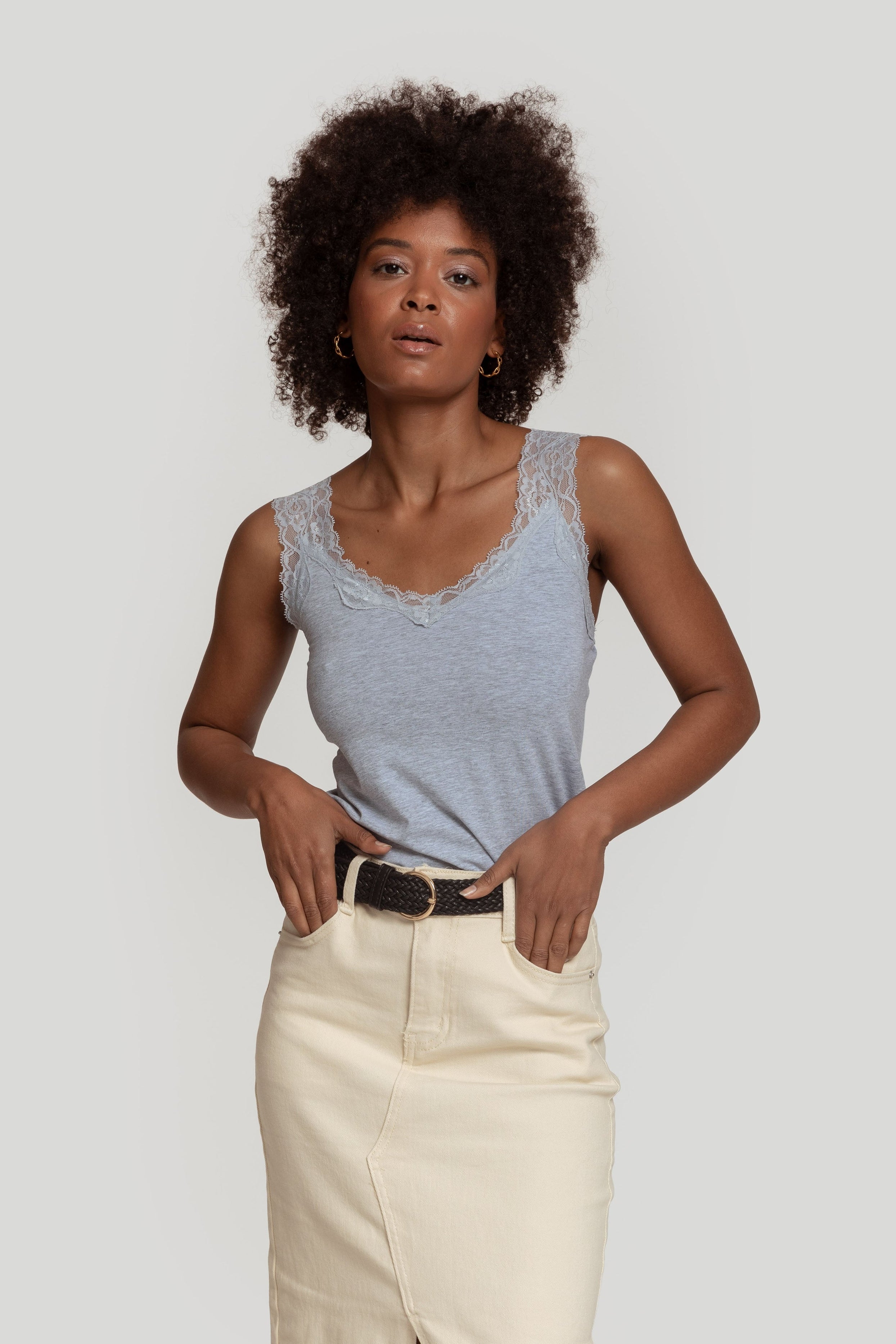 Tejido mezcla de algodón. Diseño recto. Diseño básico. Diseño ajustado. Tirantes anchos. Detalles con encaje. Talla modelo: S. Altura modelo 1,65 m.