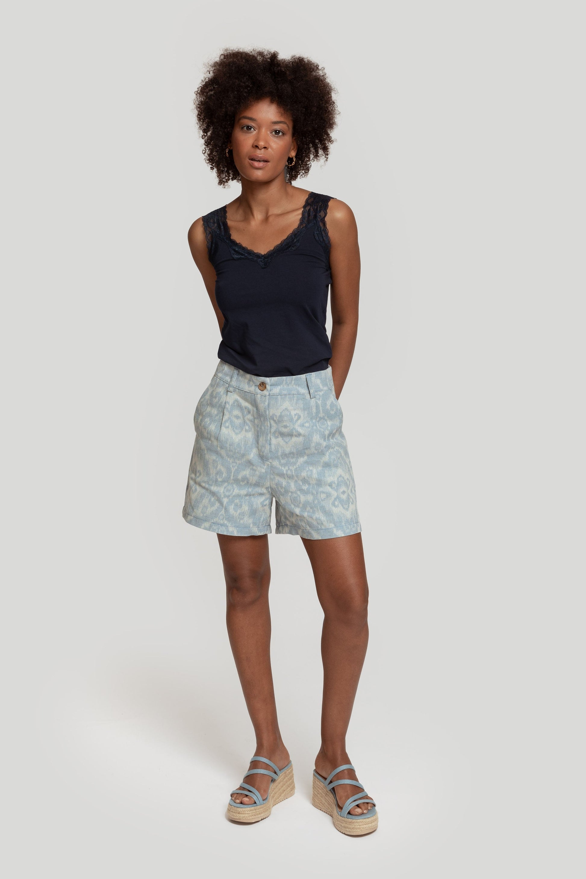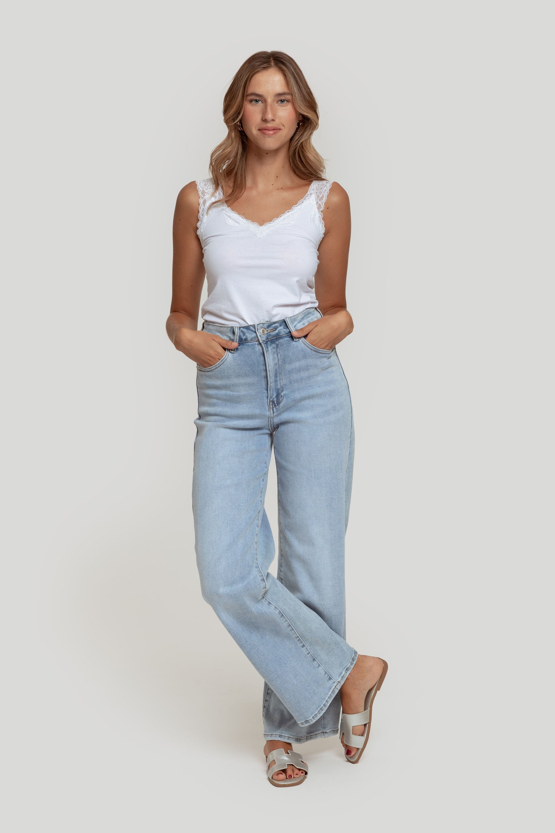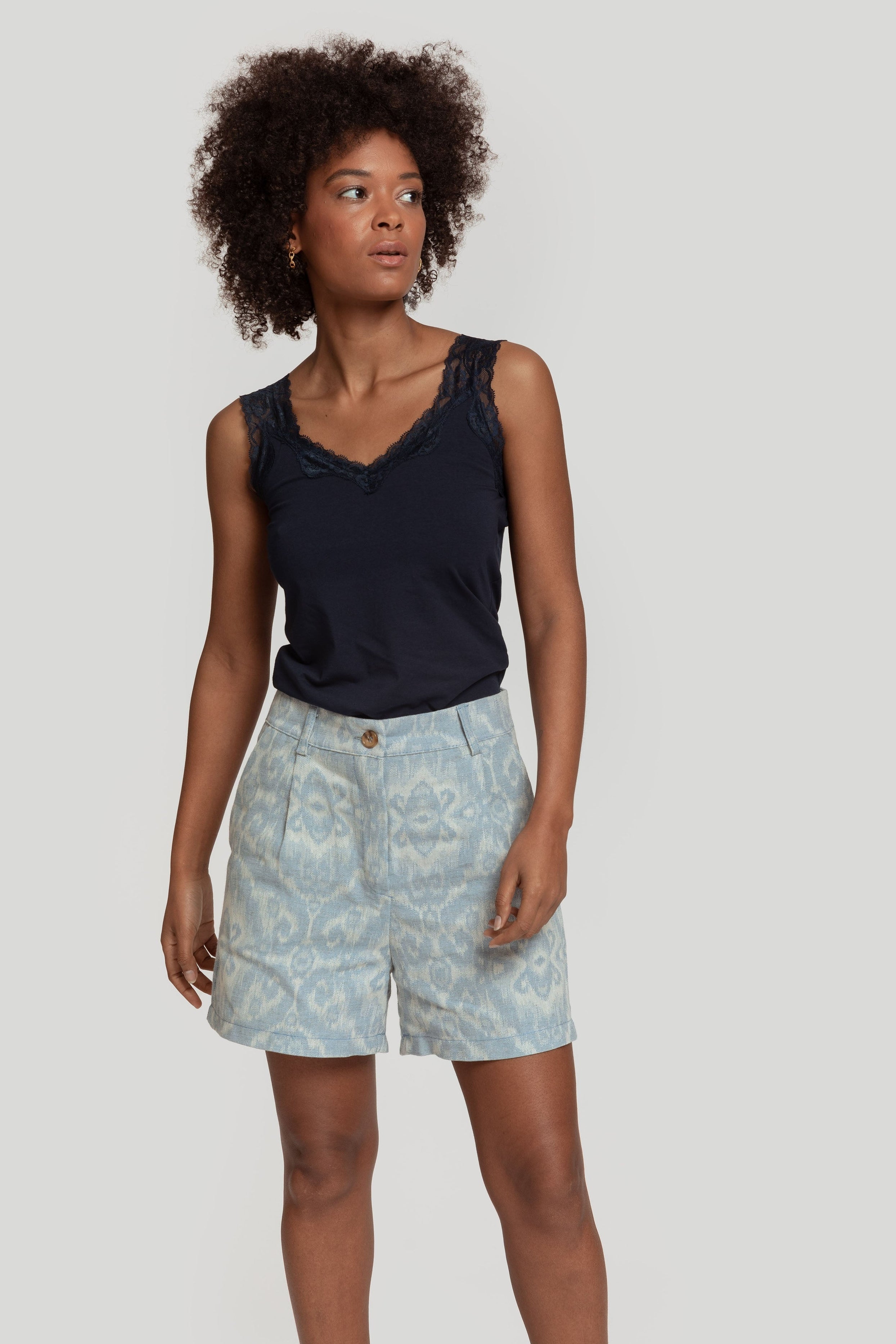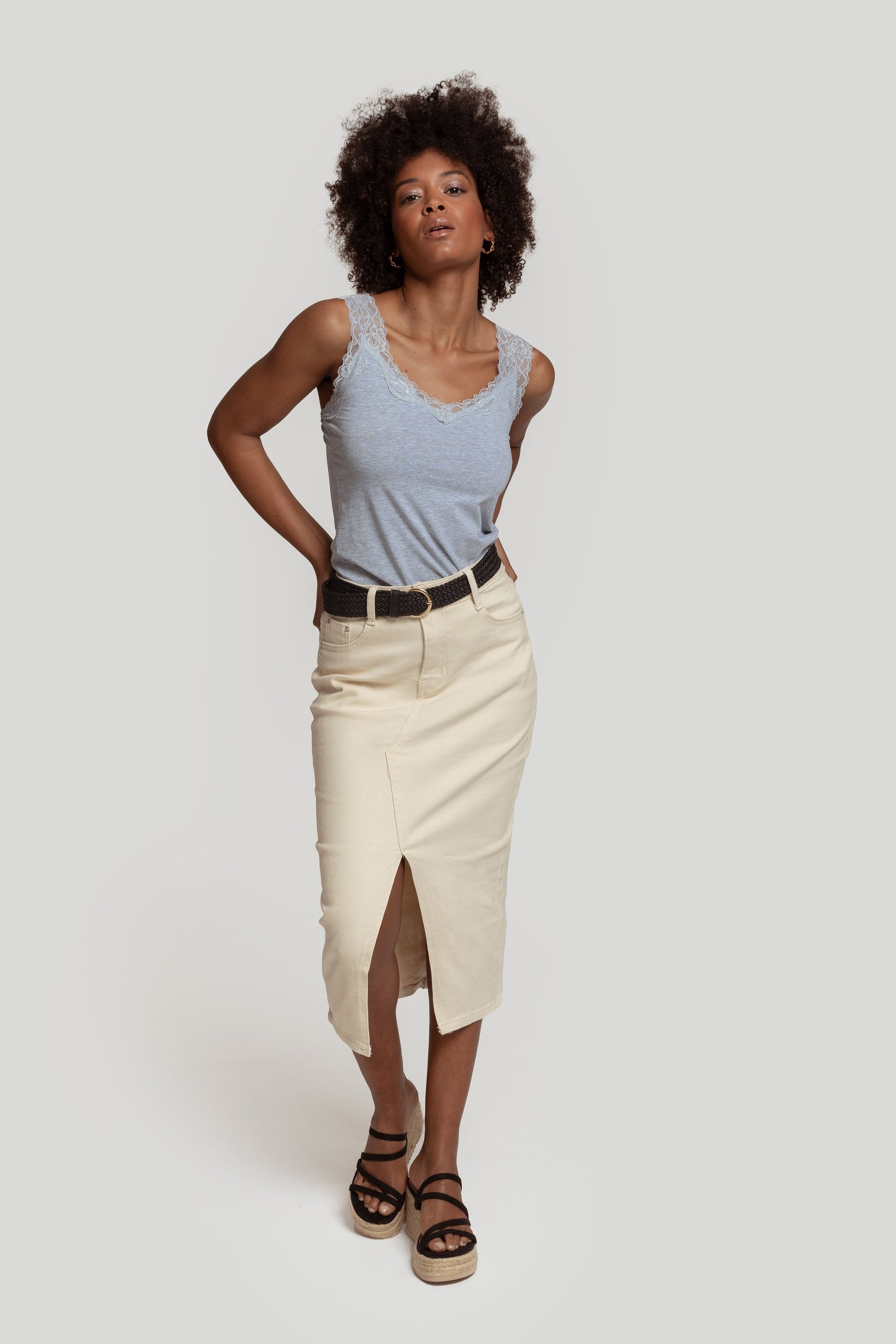 Tejido mezcla de algodón. Diseño recto. Diseño básico. Diseño ajustado. Tirantes anchos. Detalles con encaje. Talla modelo: S. Altura modelo 1,65 m.