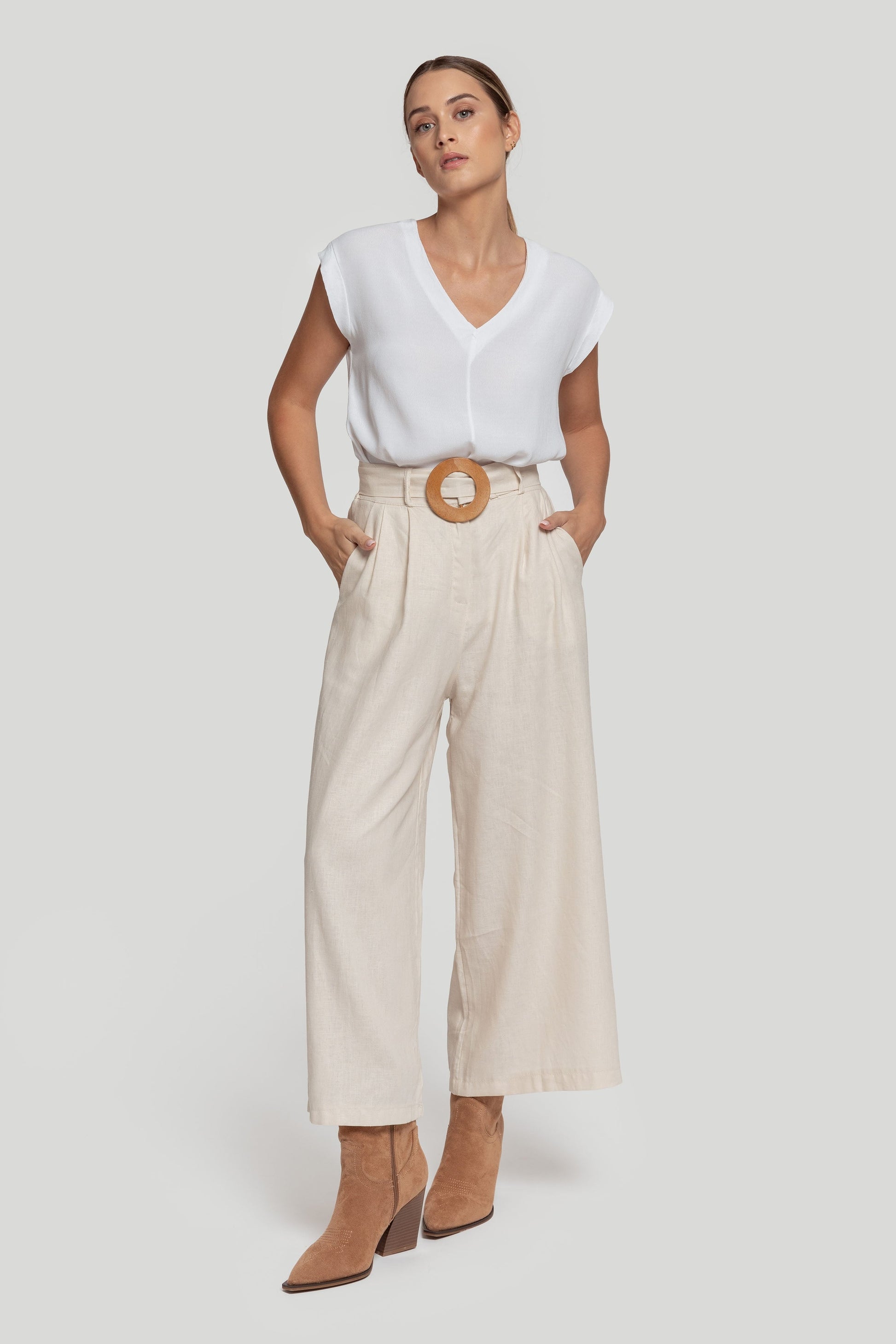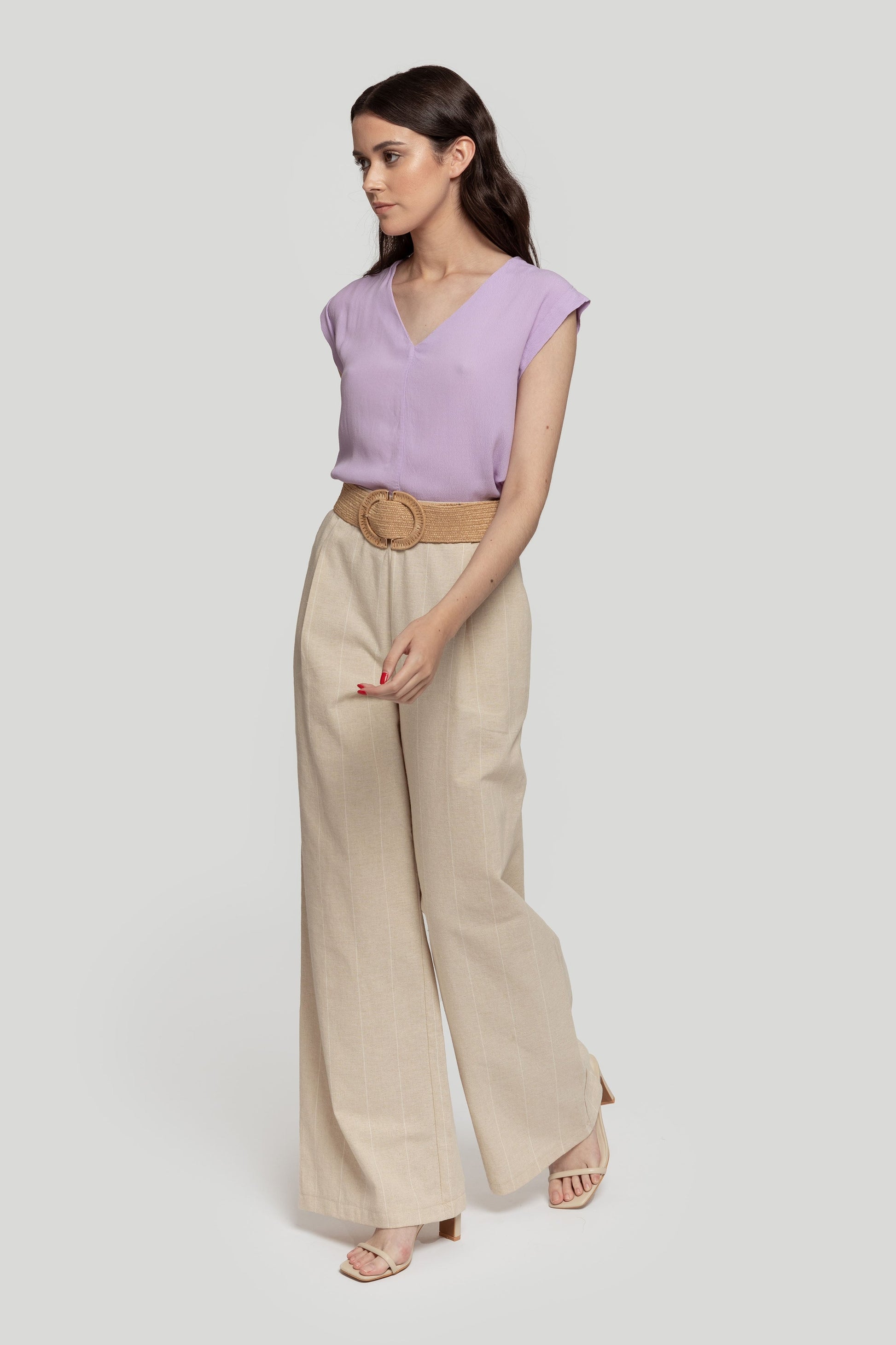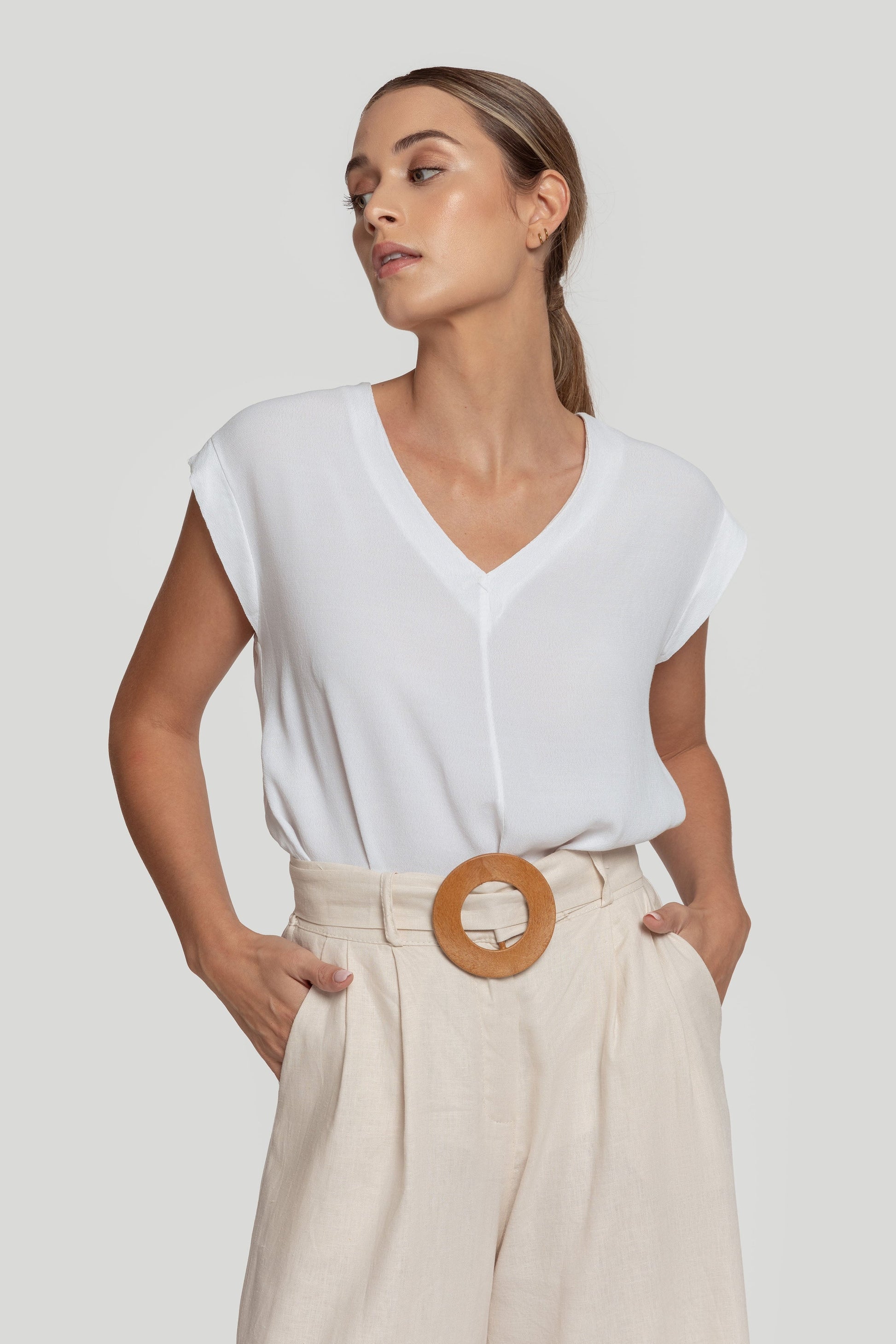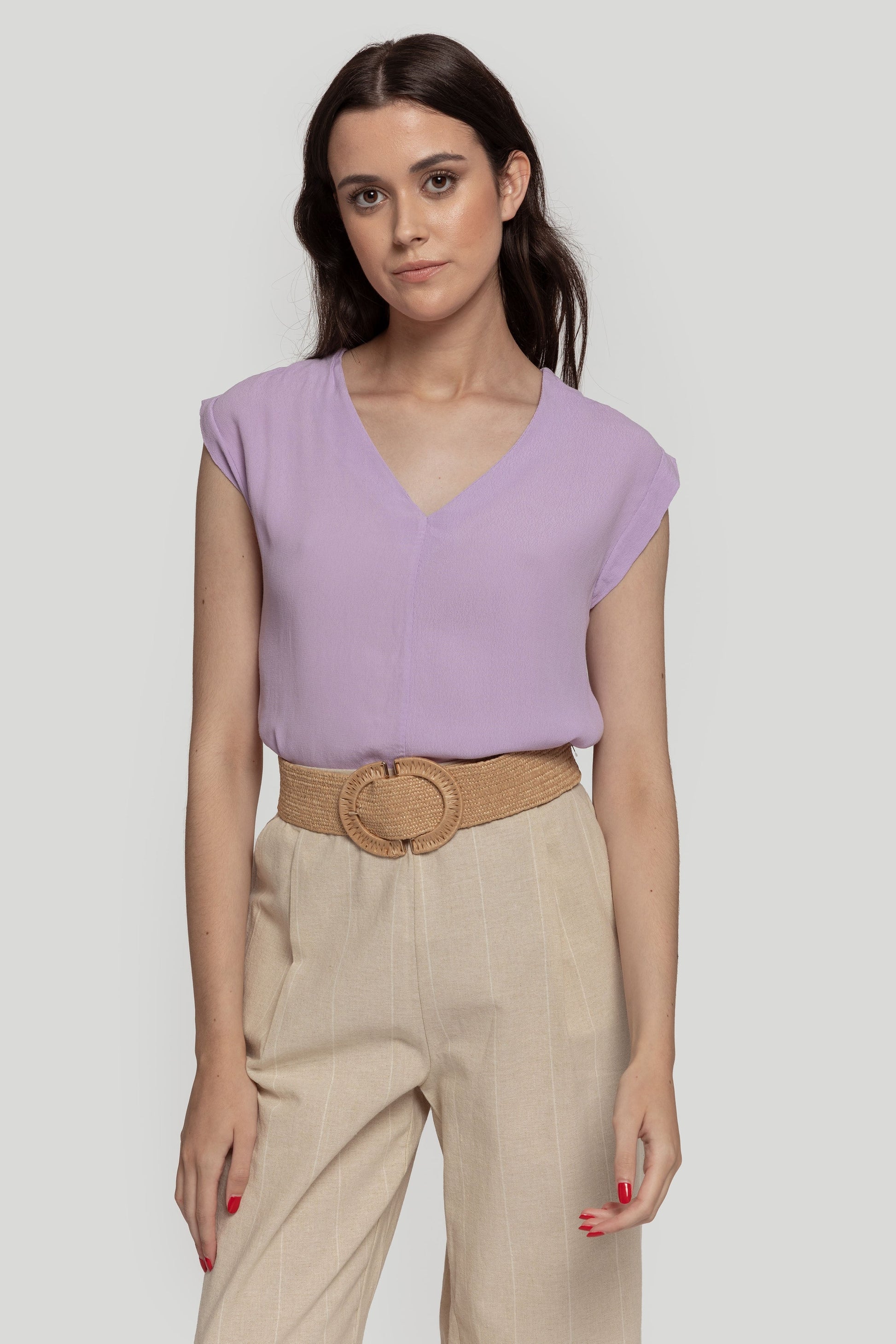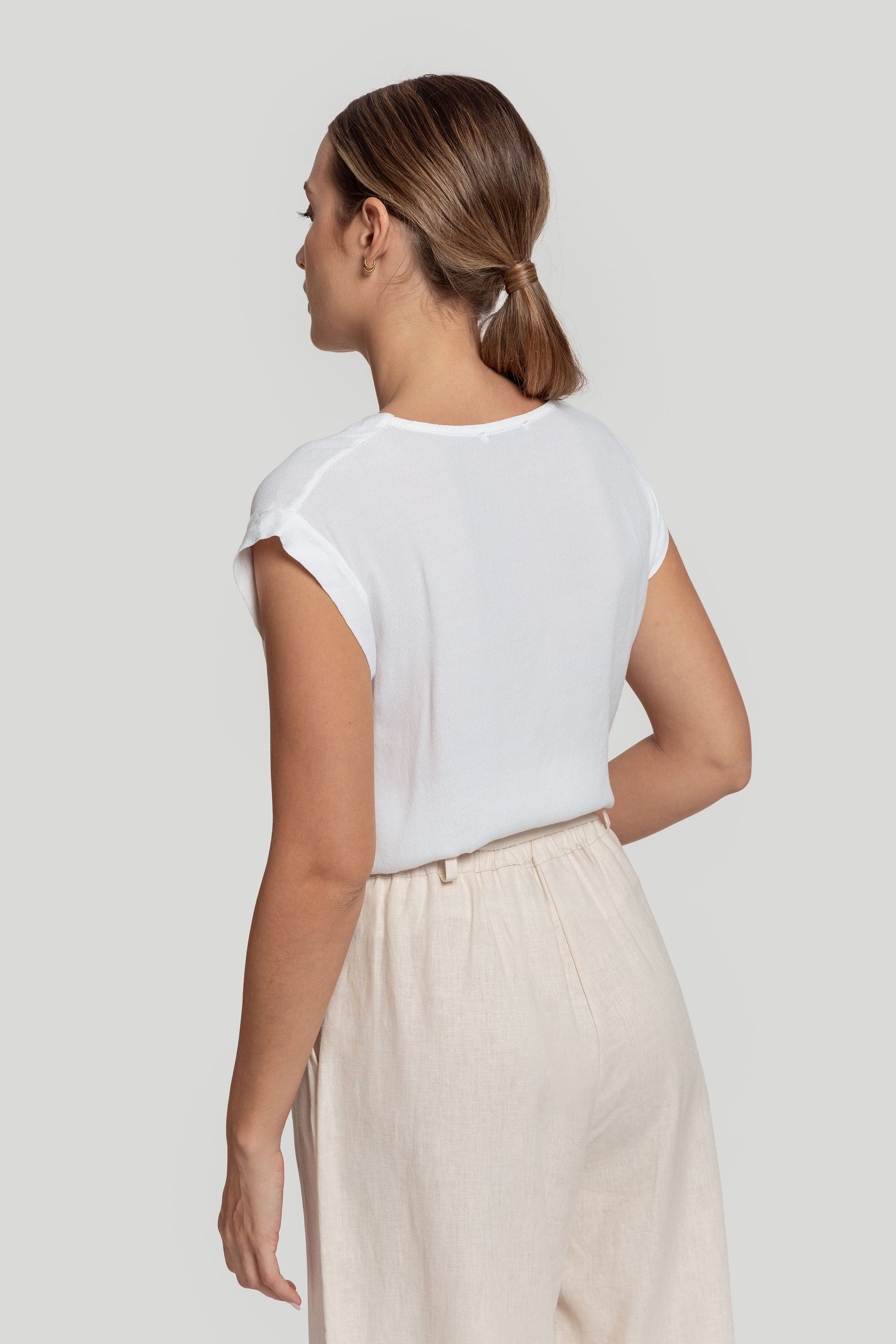 Tejido de gasa. Diseño recto. Diseño amplio. Cuello pico. Sin mangas. Costura frontal. Talla modelo: S. Altura modelo 1,66 m.