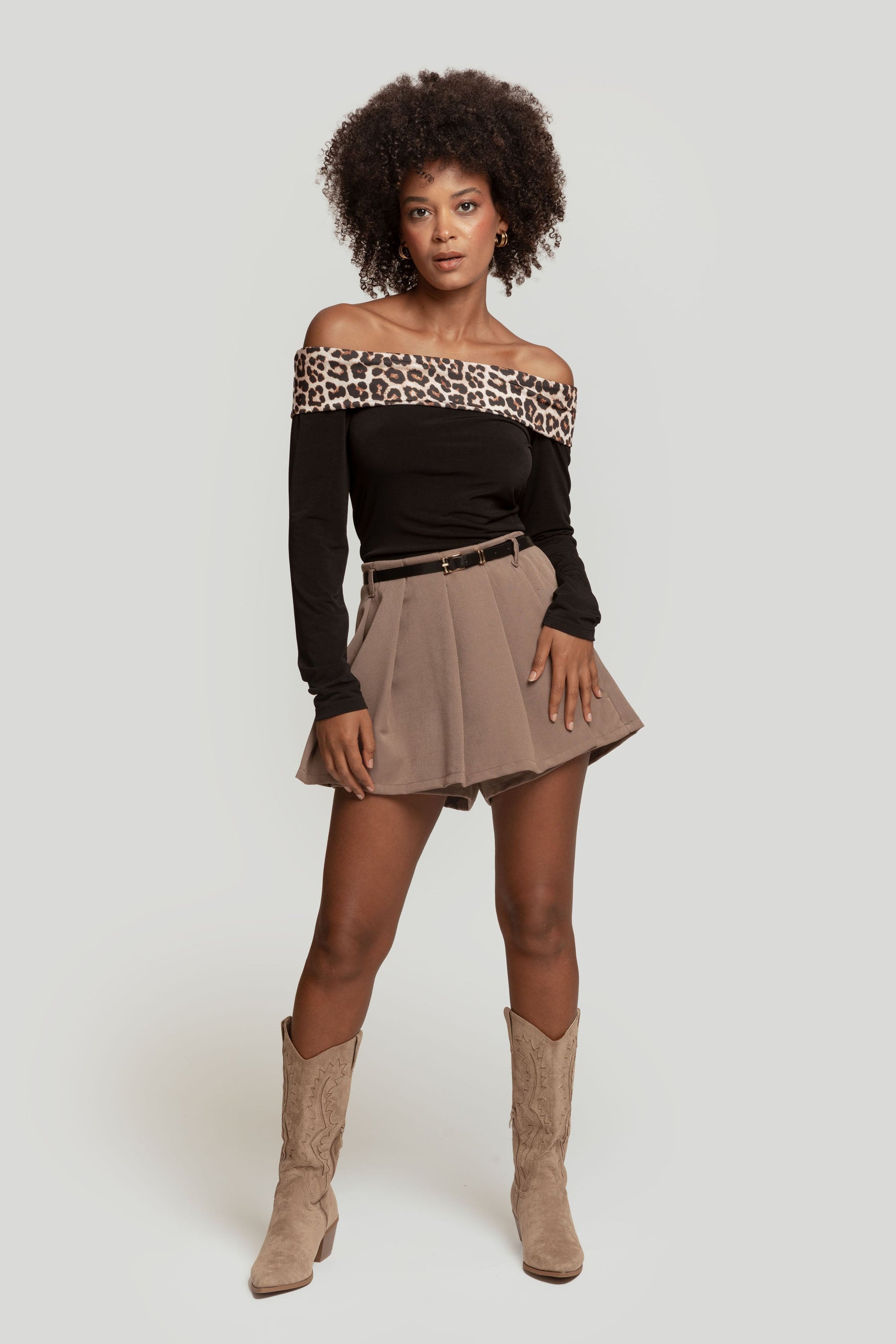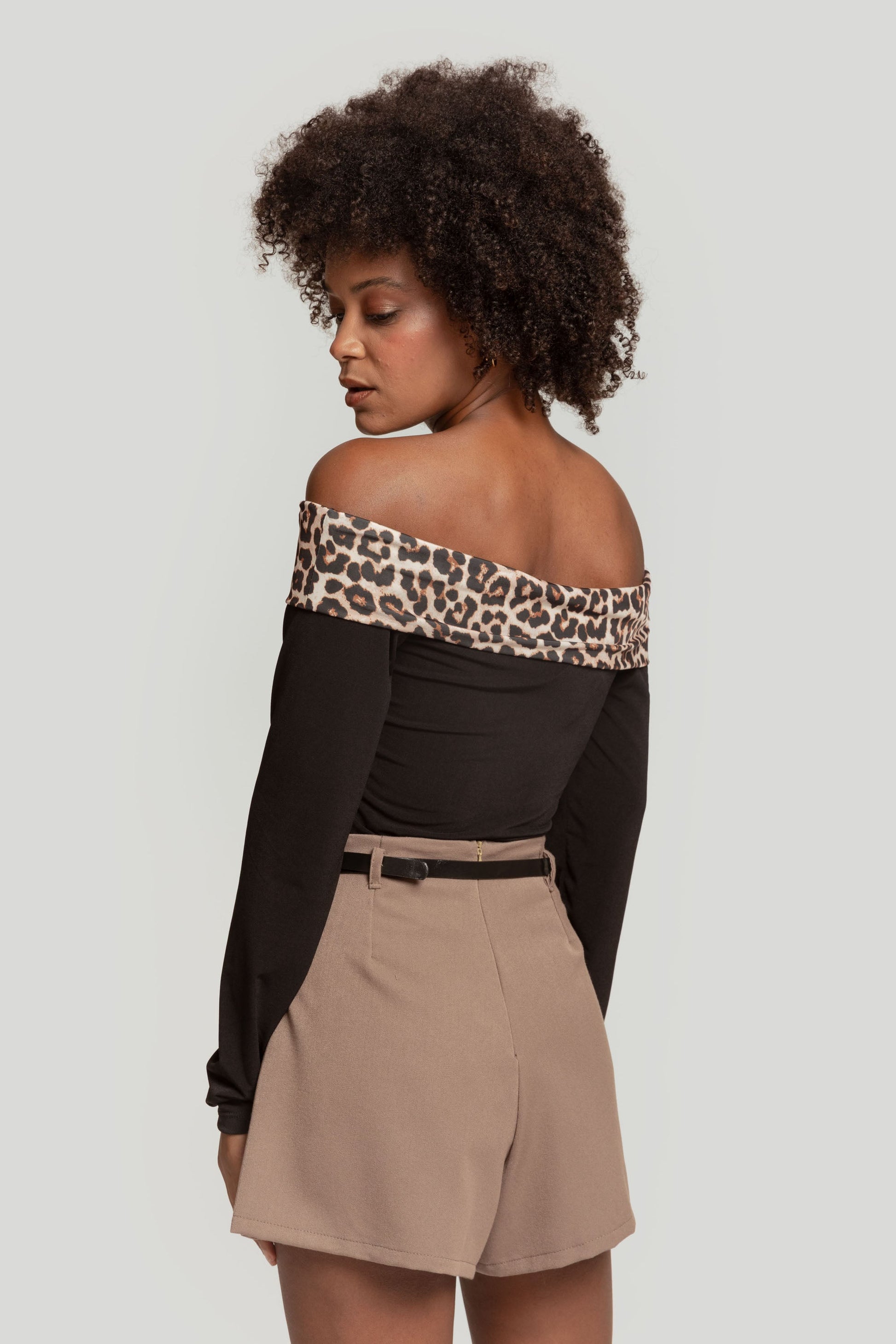 Tejido de licra. Diseño ajustado. Diseño crop. Hombro descubierto. Manga larga. Talla modelo: S. Altura modelo: 1,66 m.