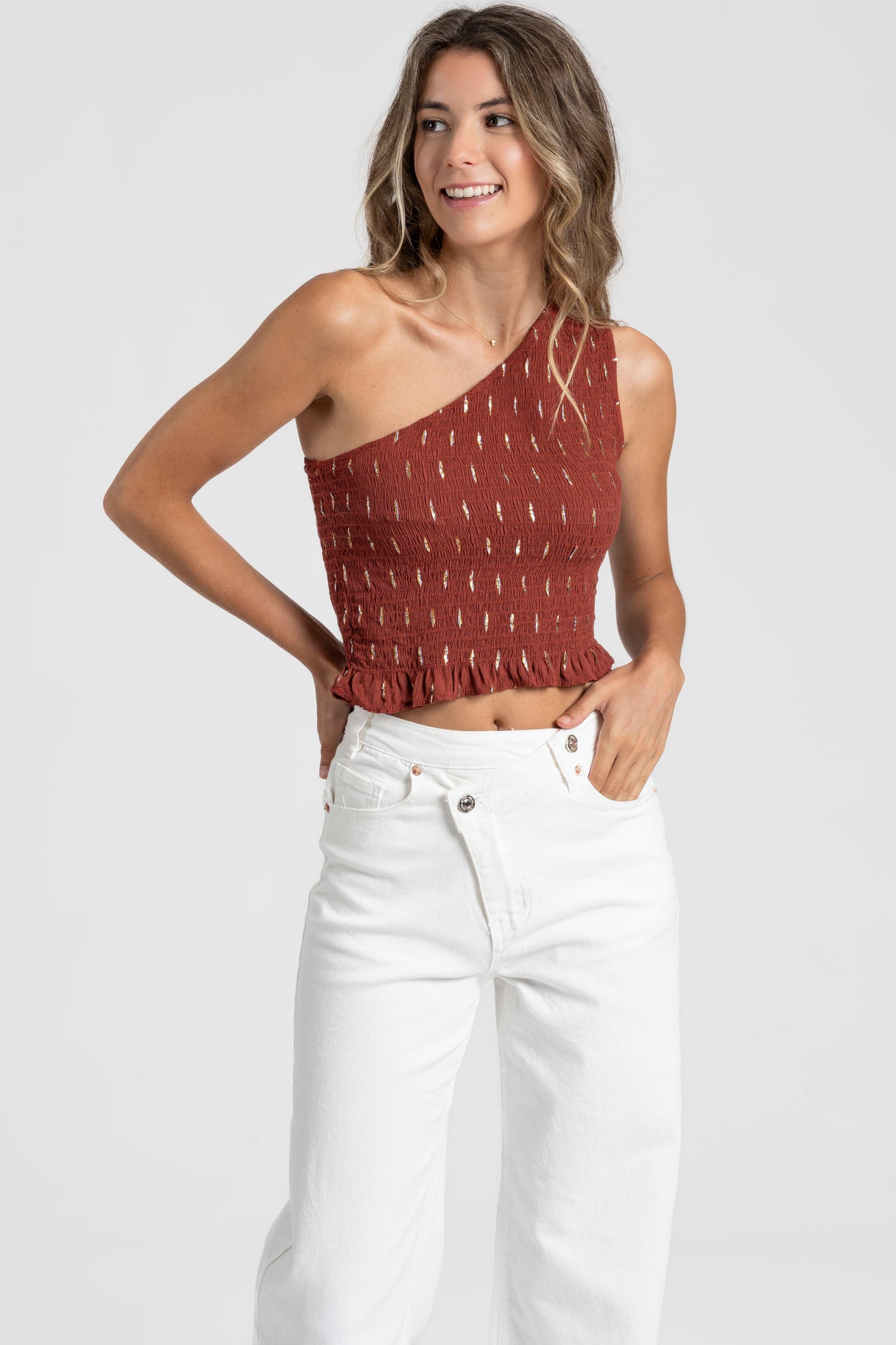 Tejido fluido. Diseño nido de abeja. Diseño asimétrico. Estampado brillo.