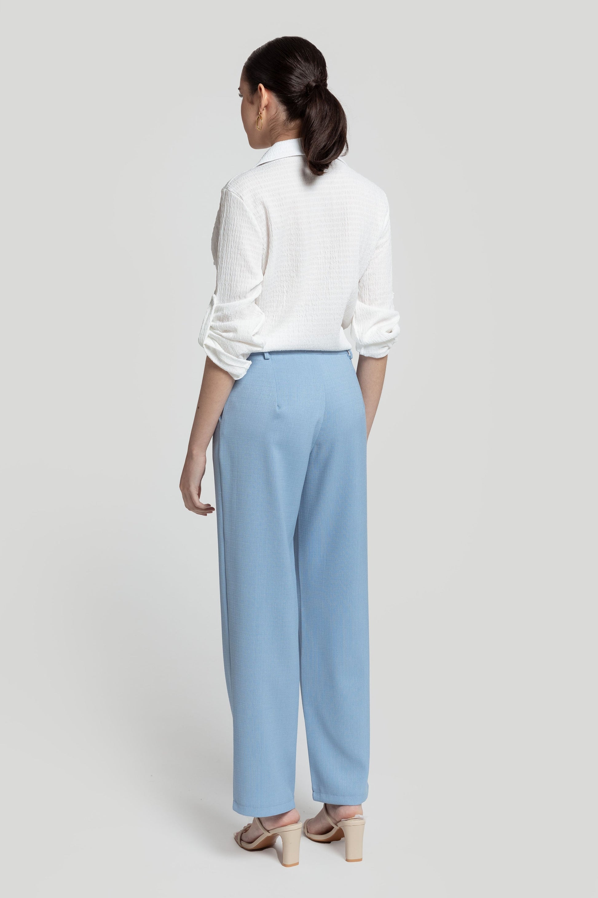 Top en tejido de gasa. Tejido efecto arrugado. Cuello camisero. Manga tres cuarto abotonada. Diseño anudado. Cierre de botones. Solapas decorativas. Talla modelo: S. Altura modelo 1.67 m.