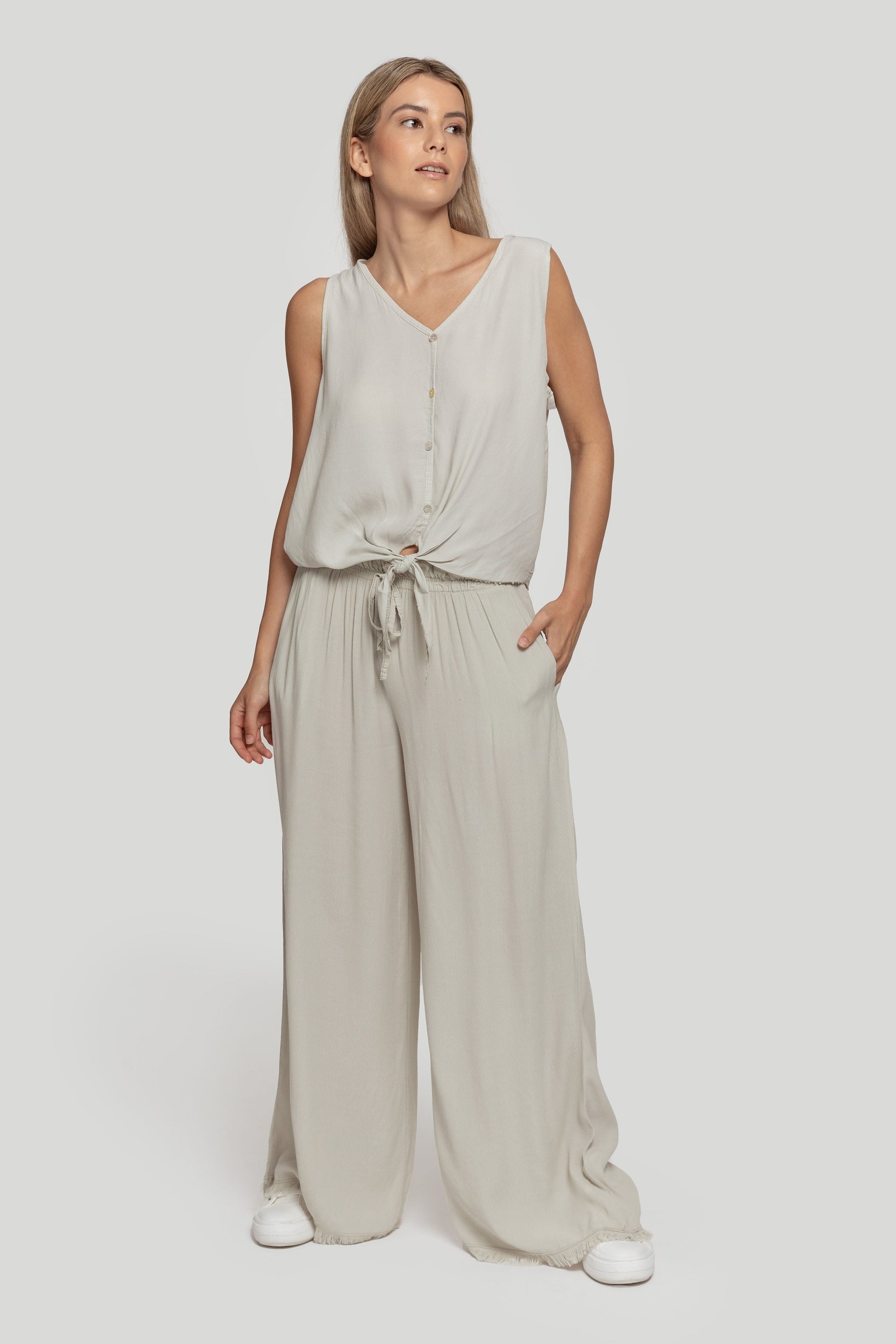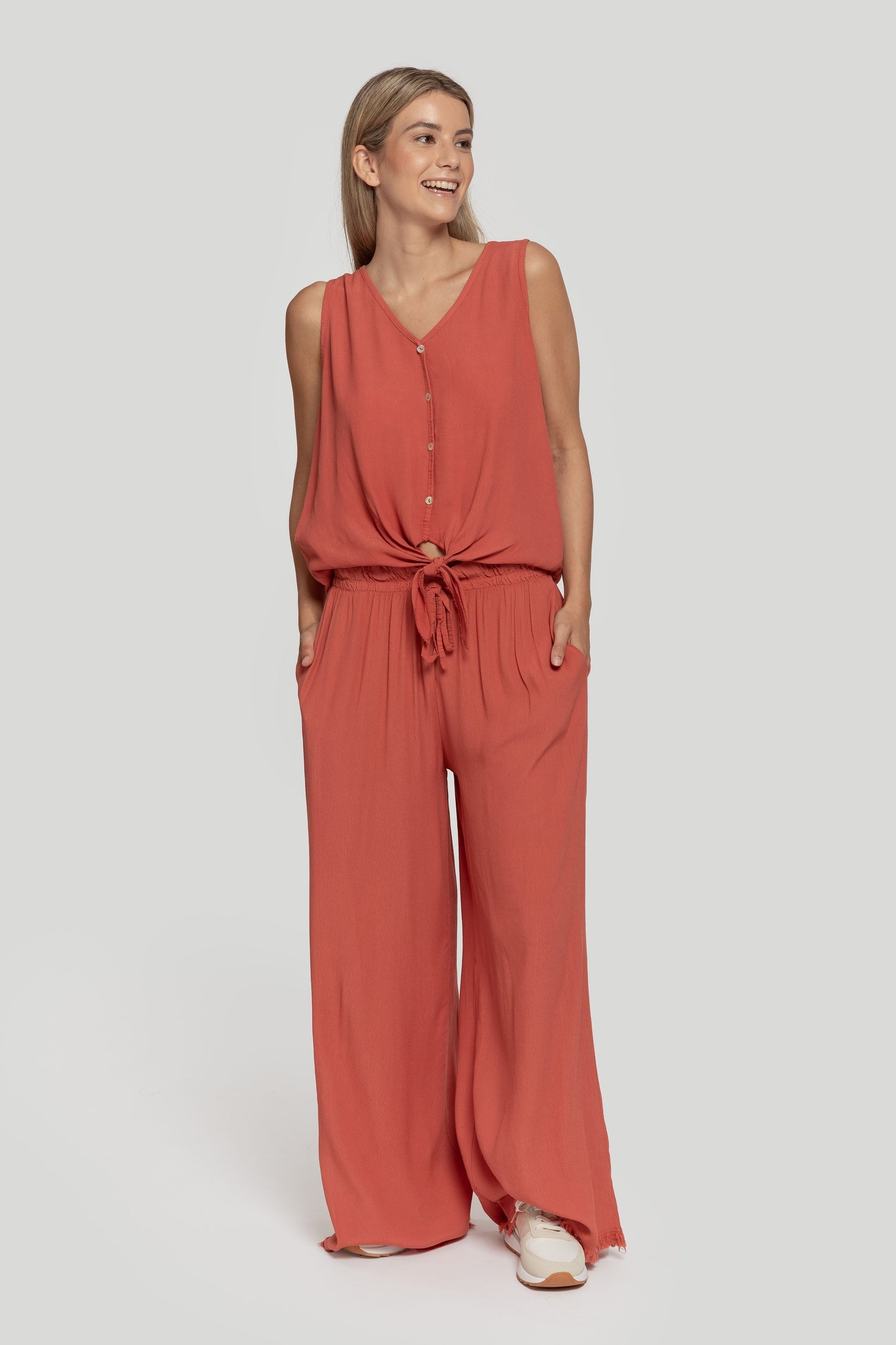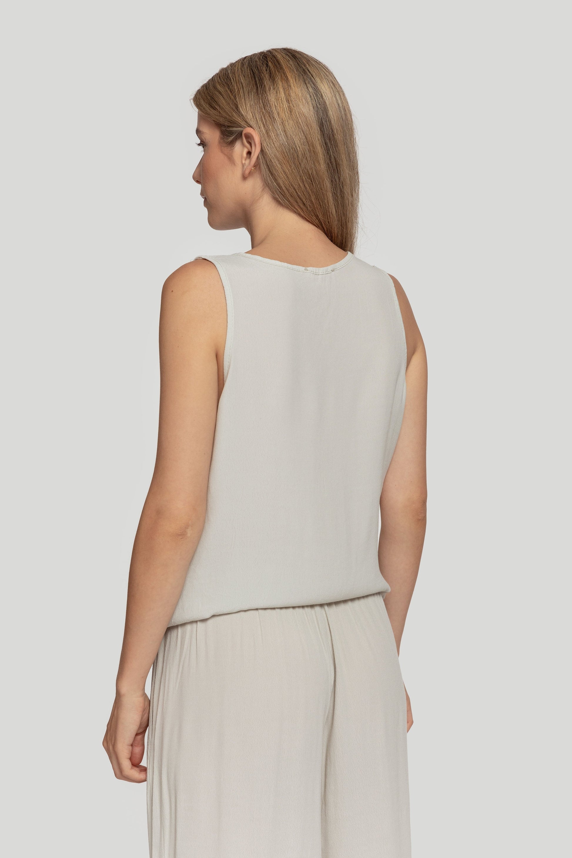 Tejido ligero. Diseño recto. Cuello pico. Sin mangas. Cierre de botones. bajo nudo. Talla modelo: S. Altura modelo: 1,70 m.