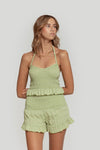 Tejido fluido. Diseño estampado cuadros vichy. Diseño cropped. Cuello pico. Anudado en el cuello. Elástico en la espalda. Talla modelo: S. Altura modelo: 1,70 m.