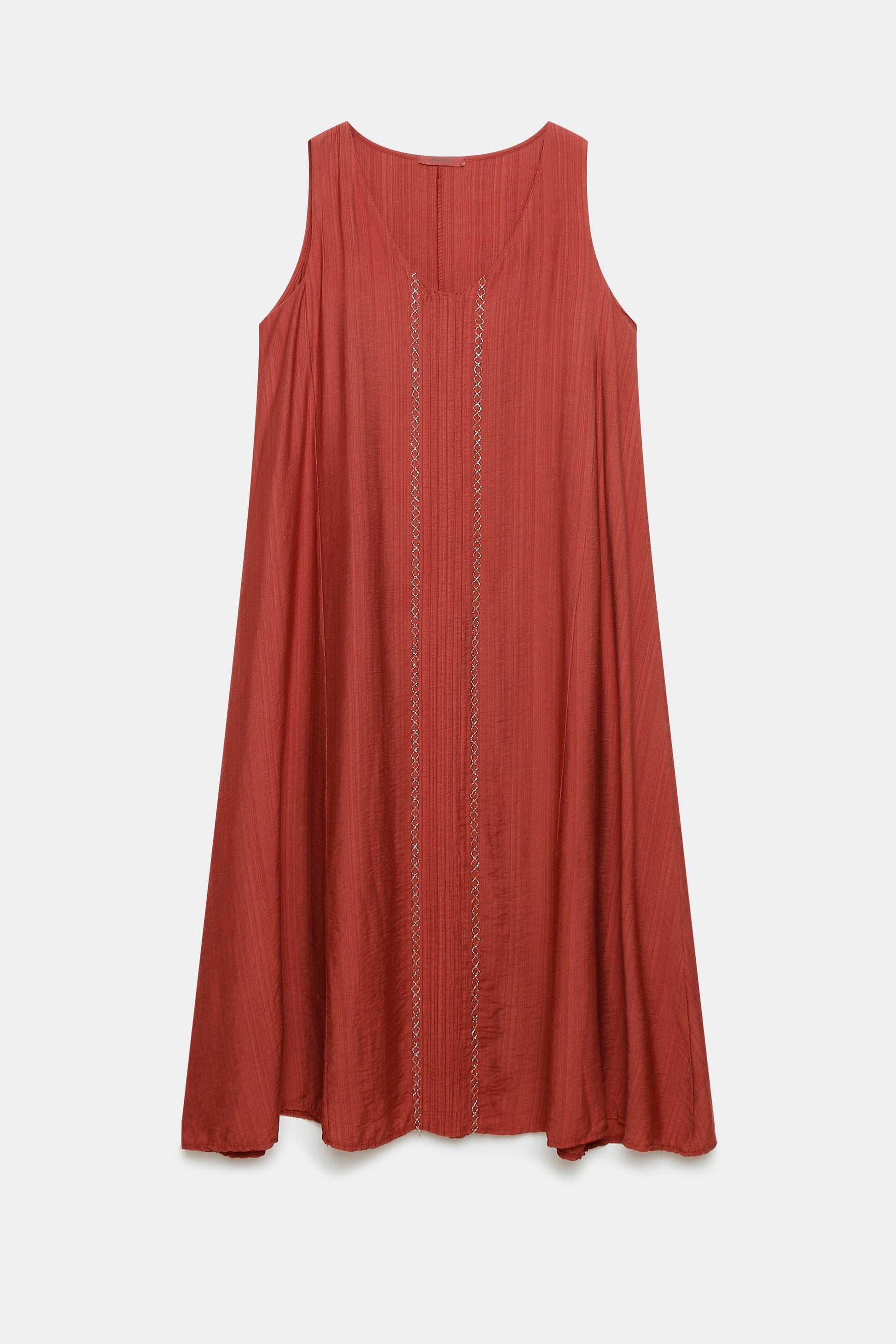 Tejido fino y fluido. Escote pico. Manga sisa. Talla única. Sisa a sisa 55cm. Largo 125cm.