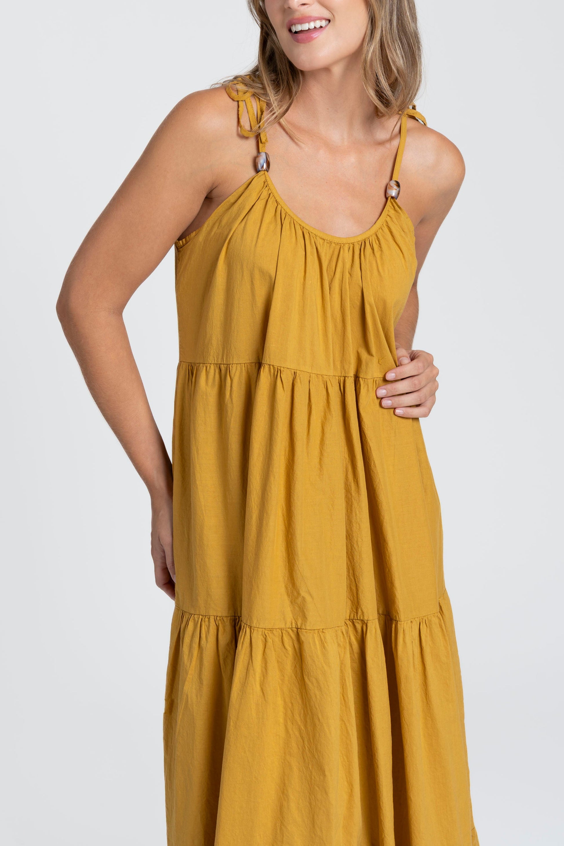 Tejido algodón. Tirantes finos. Cuello redondo. Diseño amplio. Diseño largo.