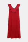 Tejido de algodón. Diseño midi. Manga sisa. Escote pico. Detalle volantes bordados.