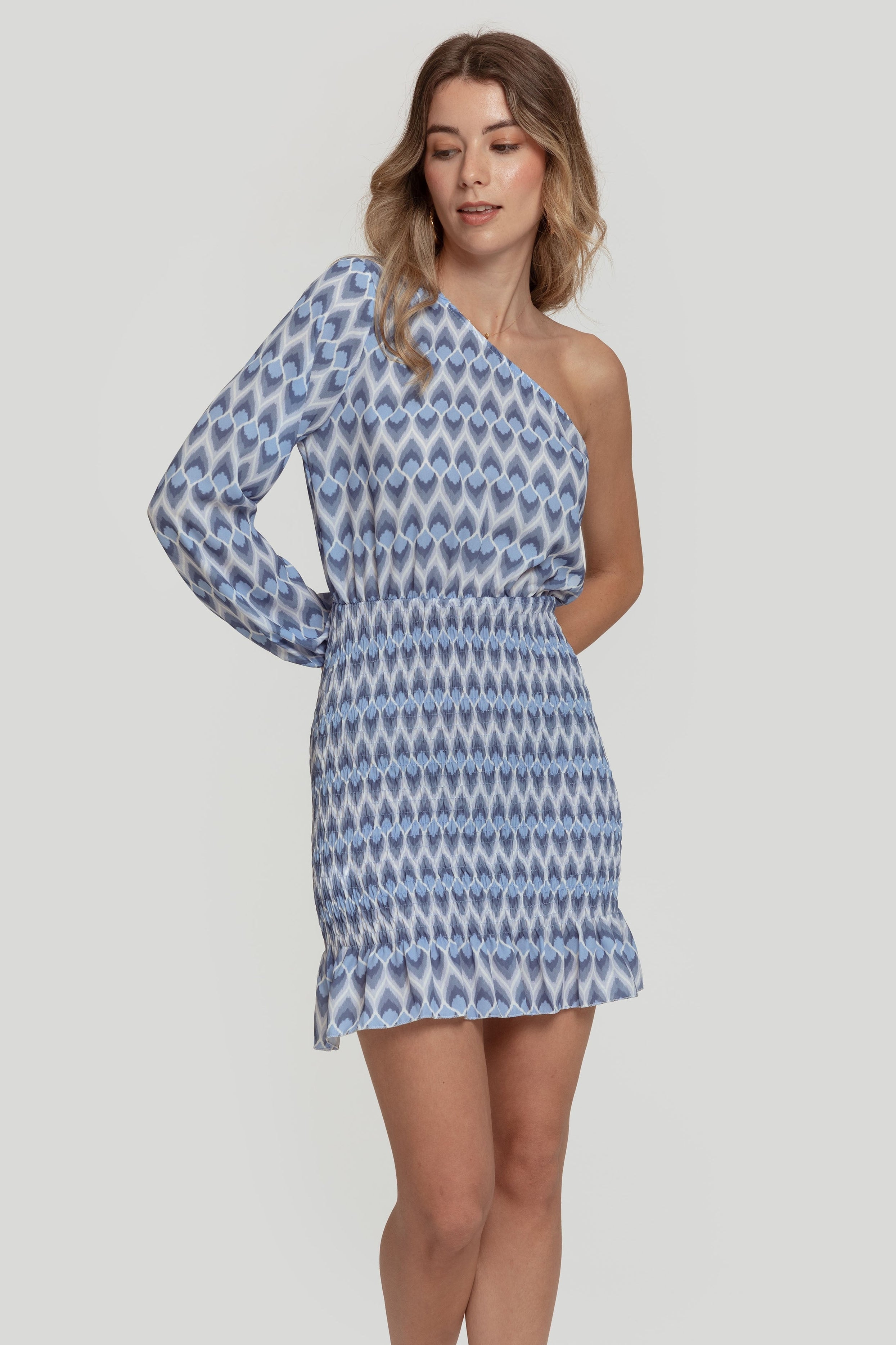Tejido gasa. Diseño estampado. Diseño recto. Diseño ajustado. Escote asimétrico. Manga larga. Panel elástico. Talla modelo: S. Altura modelo 1,70 m.