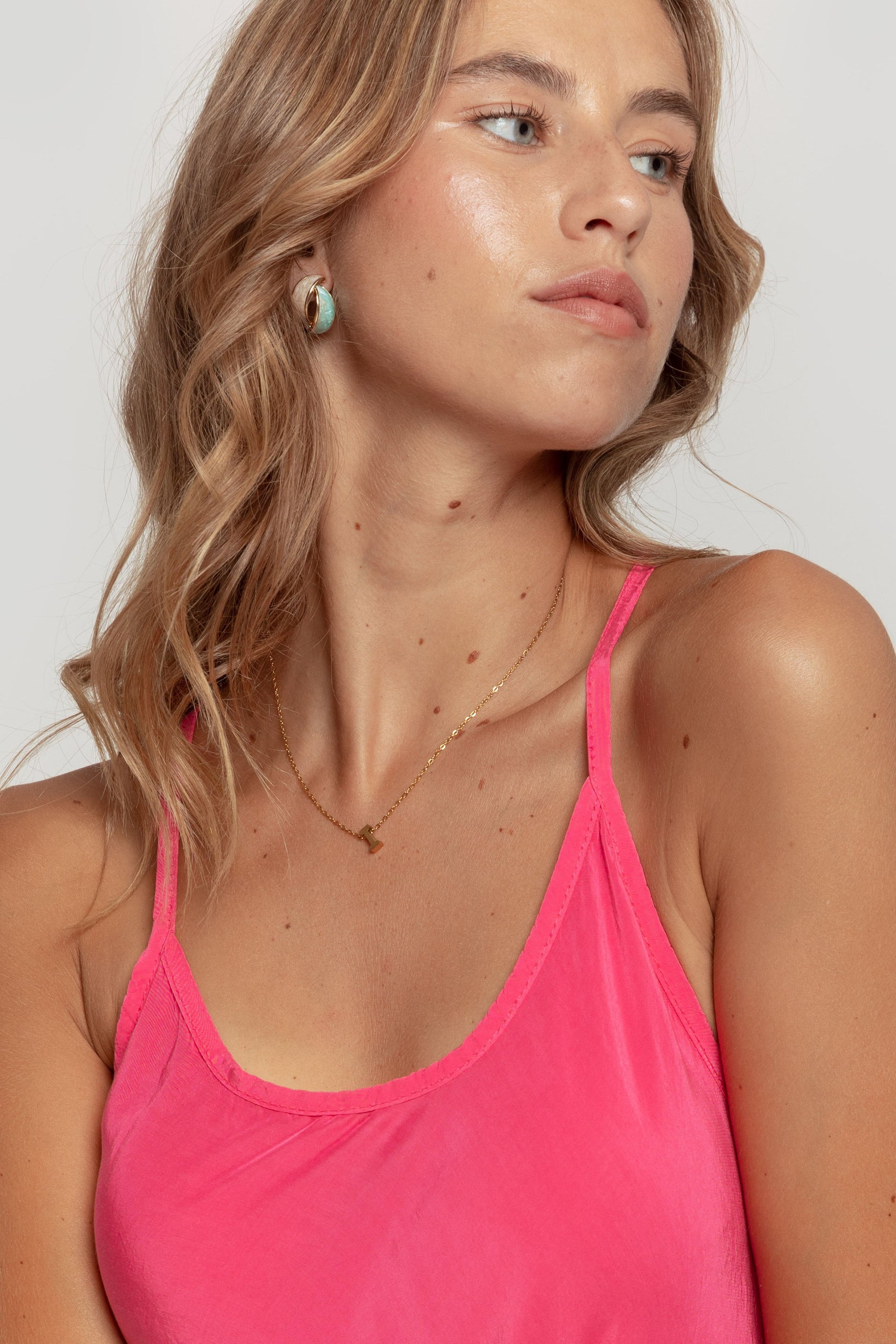 Tejido fluido. Diseño largo. Diseño recto. Escote en U. Tirantes finos. Talla modelo: S. Altura modelo 1,70 m.